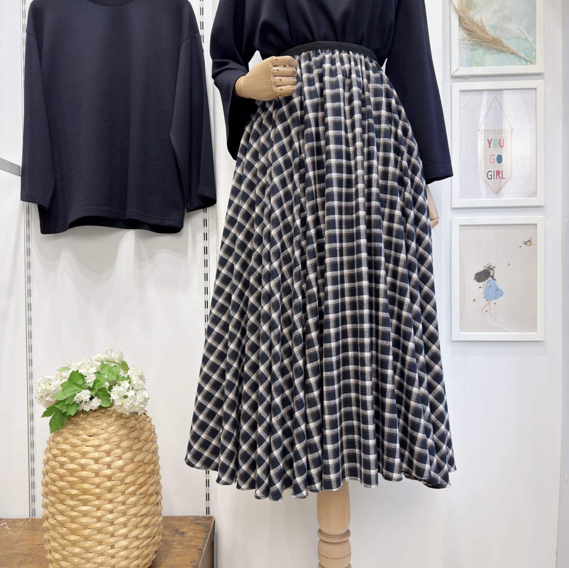 Lacivert Beli Lastikli Ekose Desenli Kloş Etek