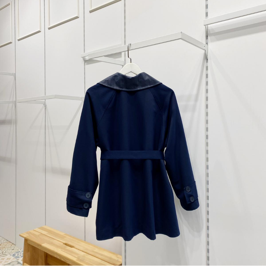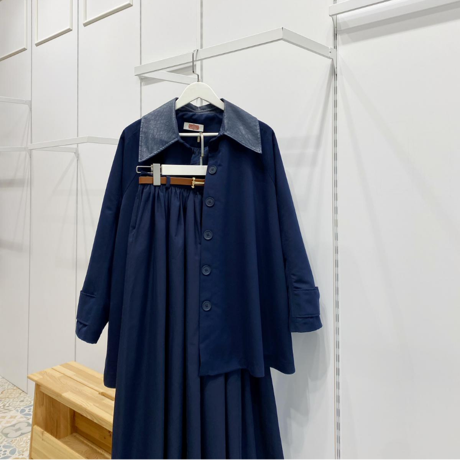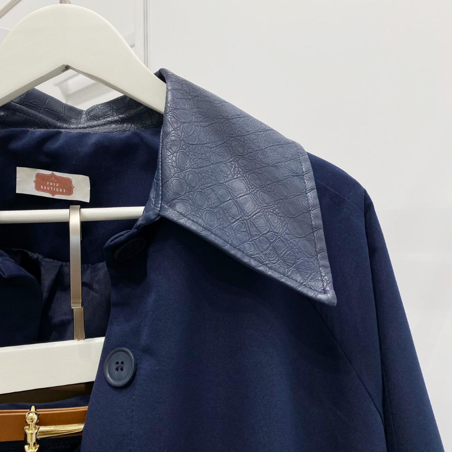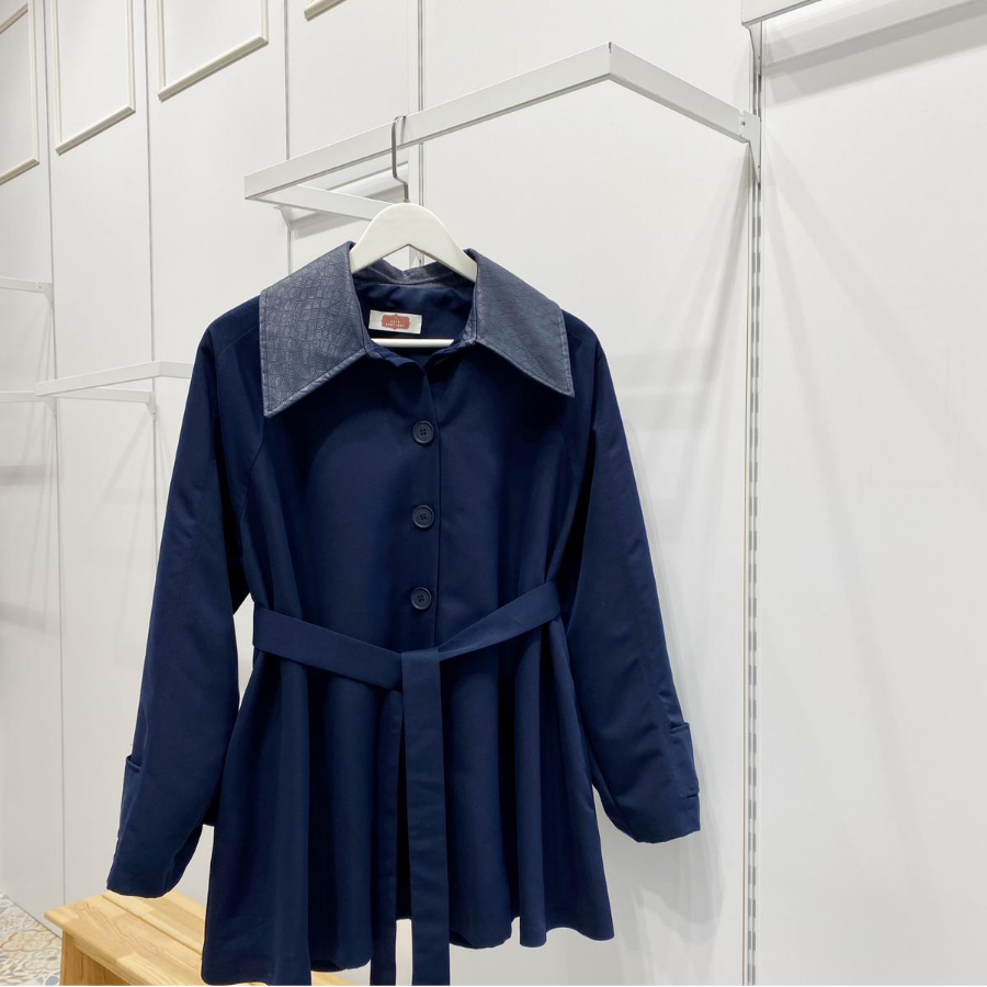 Lacivert Deri Yakalı Kuşaklı Ceket