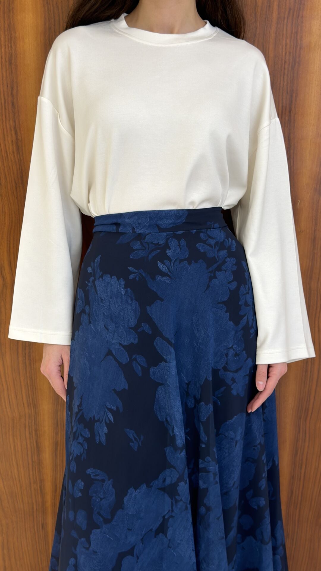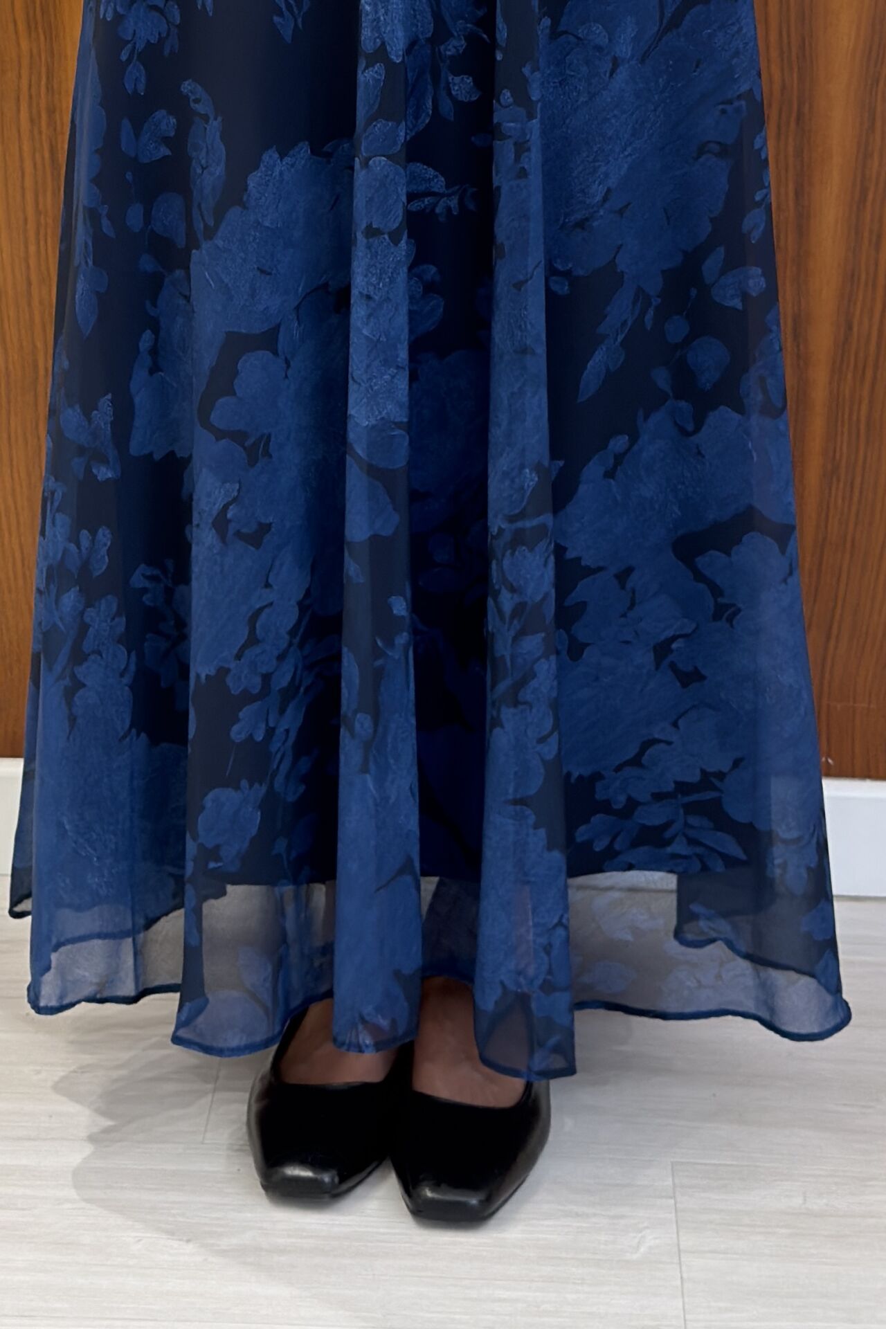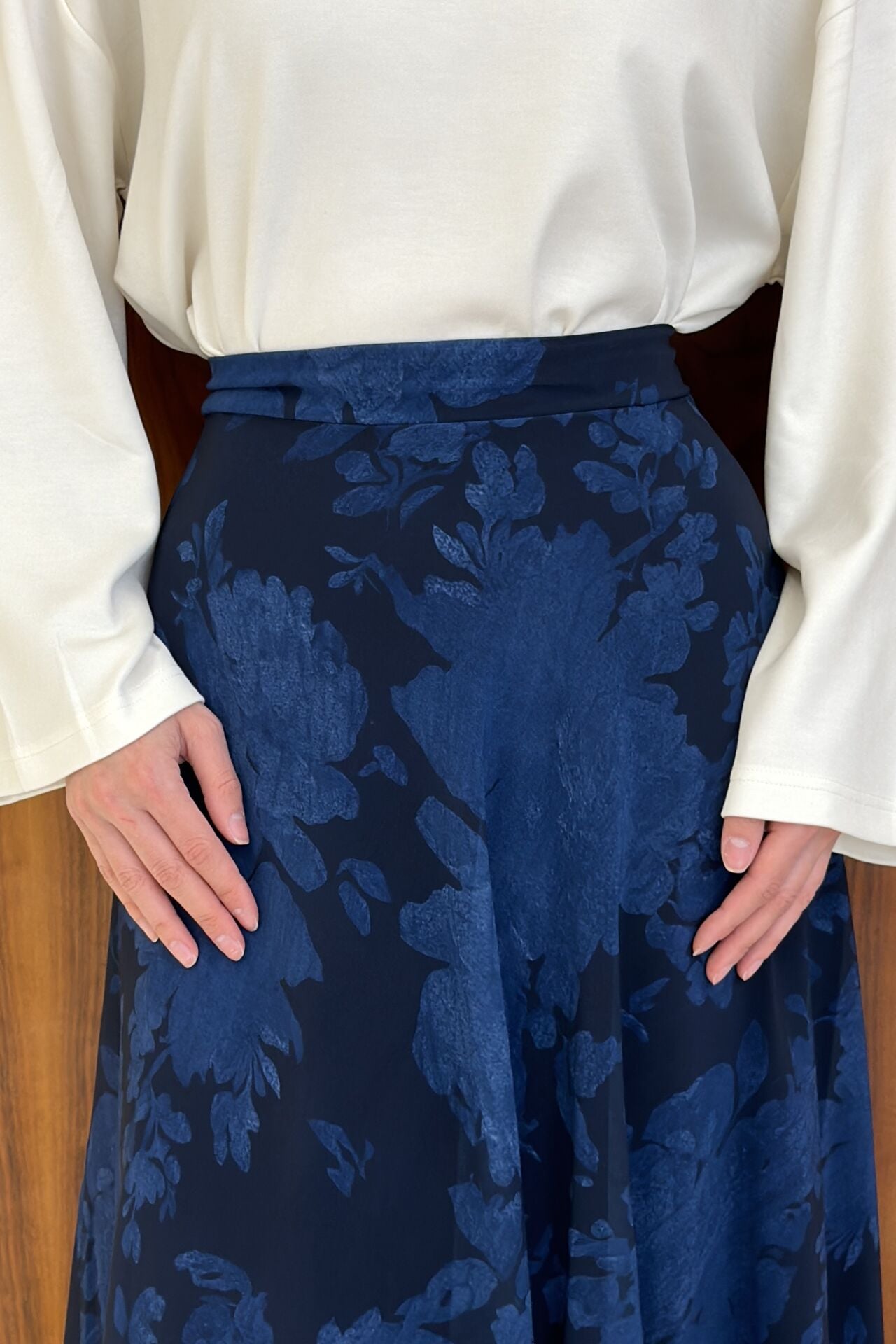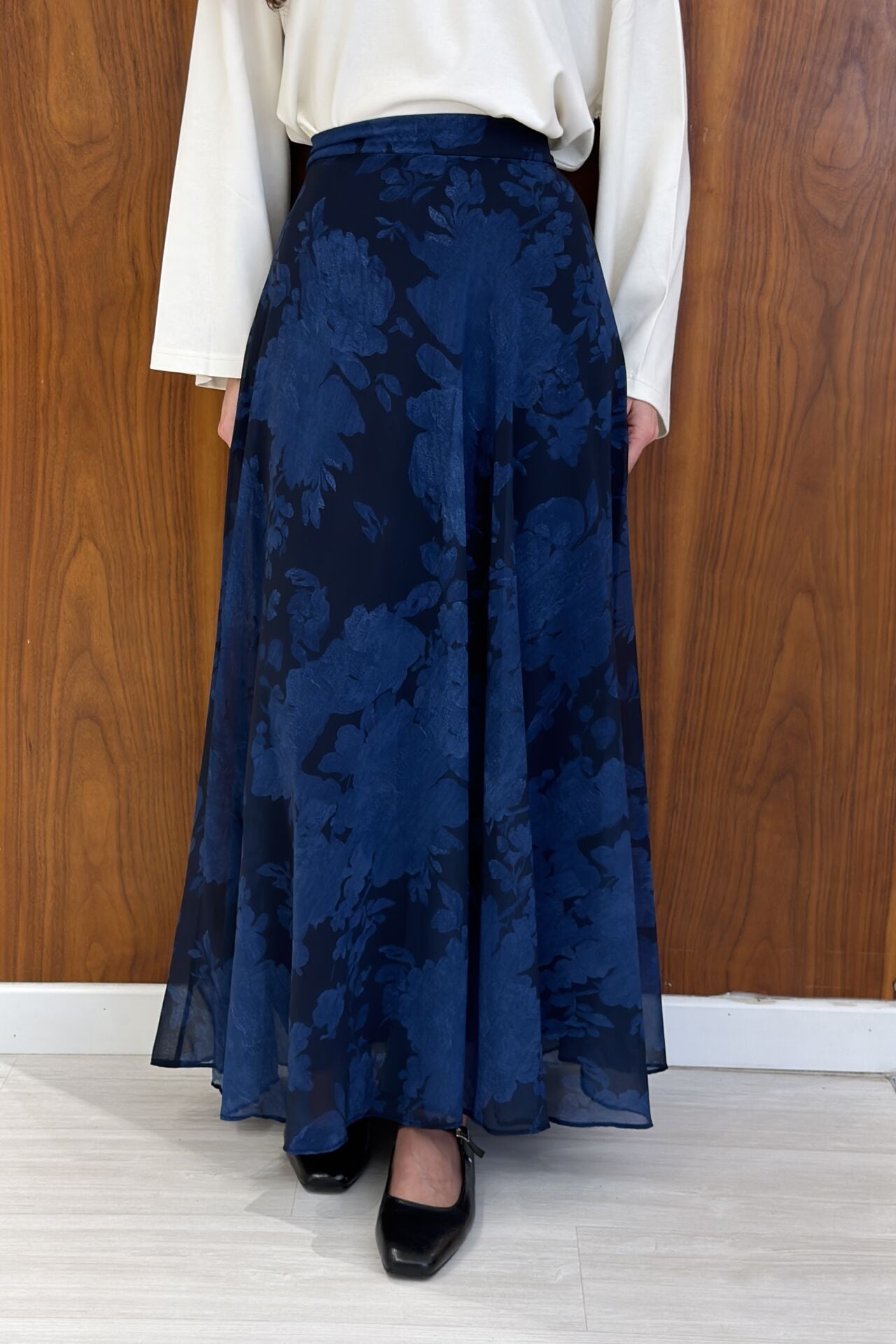 Lacivert Desenli Flowy Şifon Etek