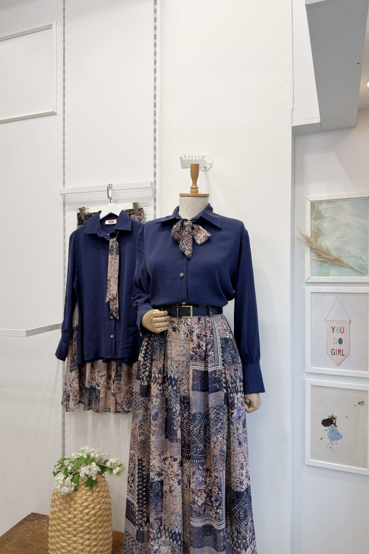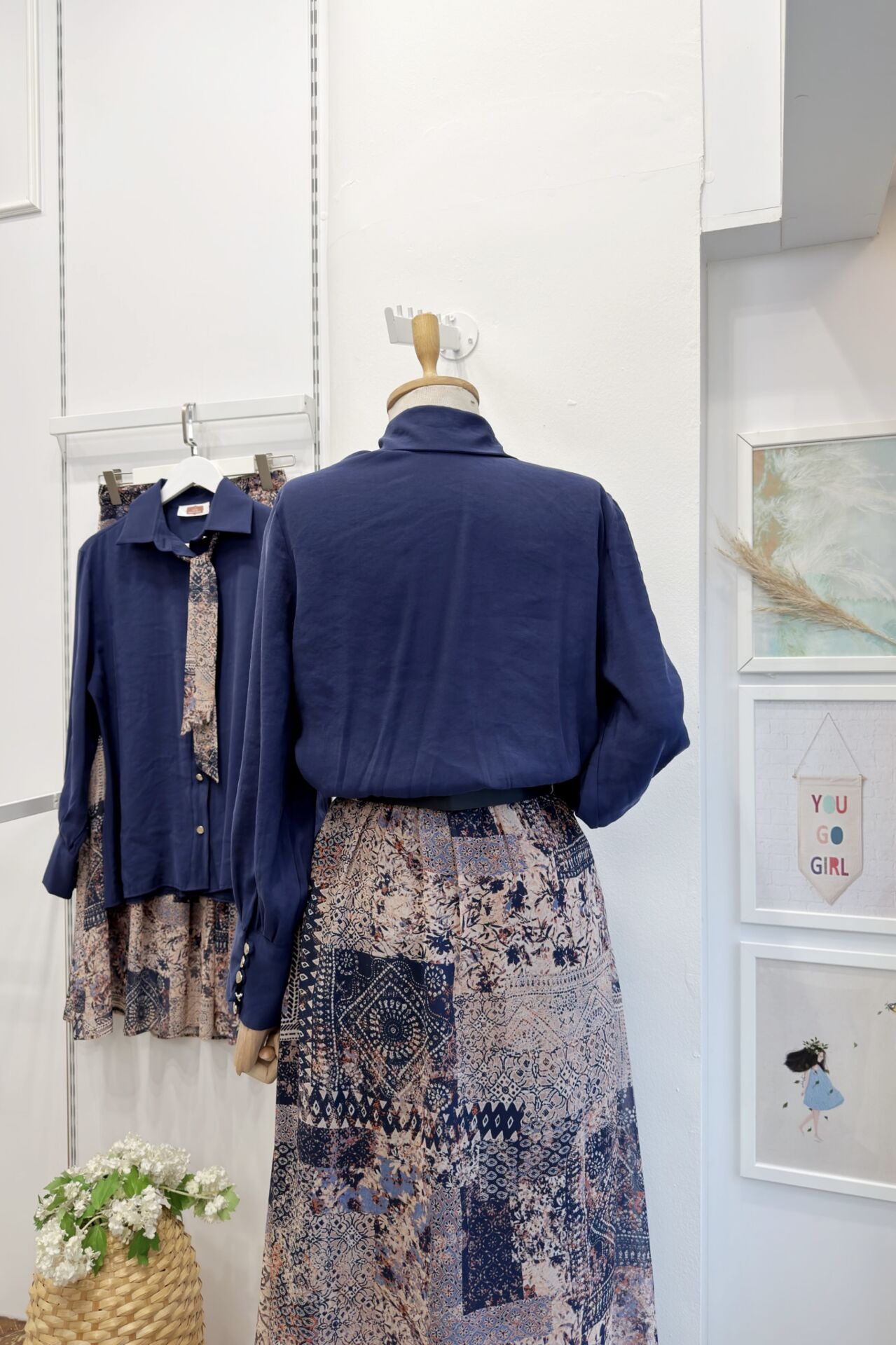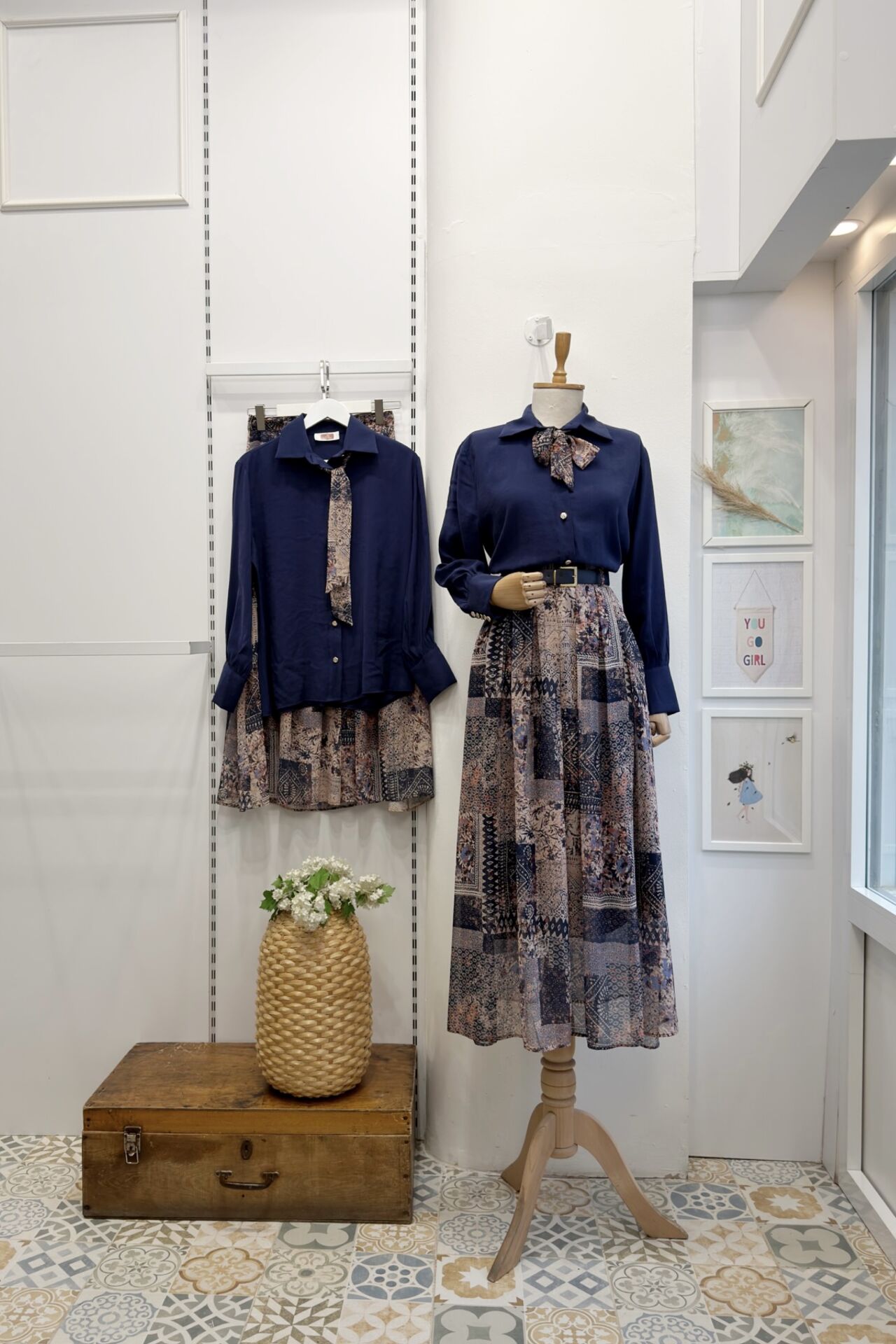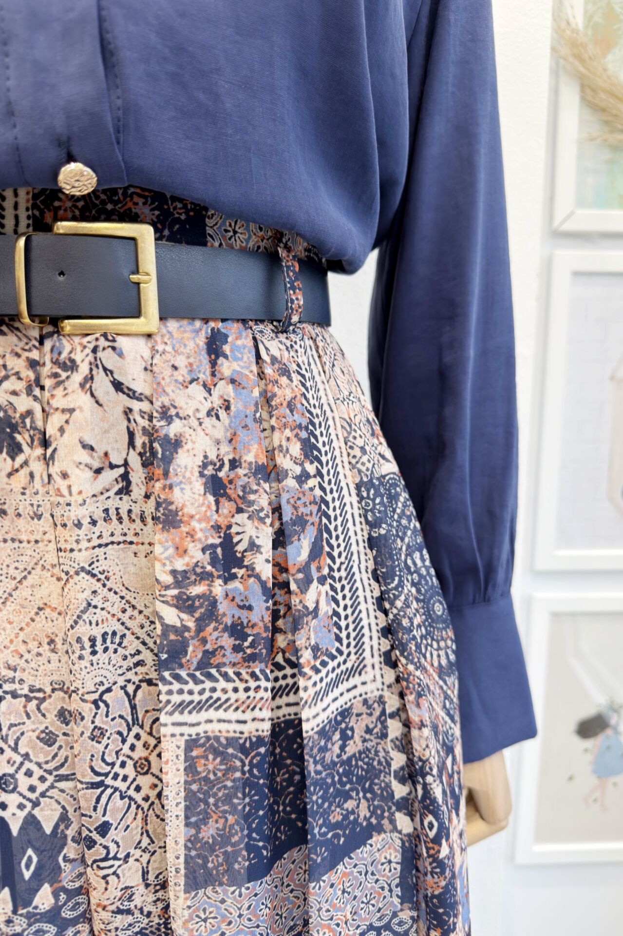 Lacivert Desenli Şifon Etekli Chermine Takım