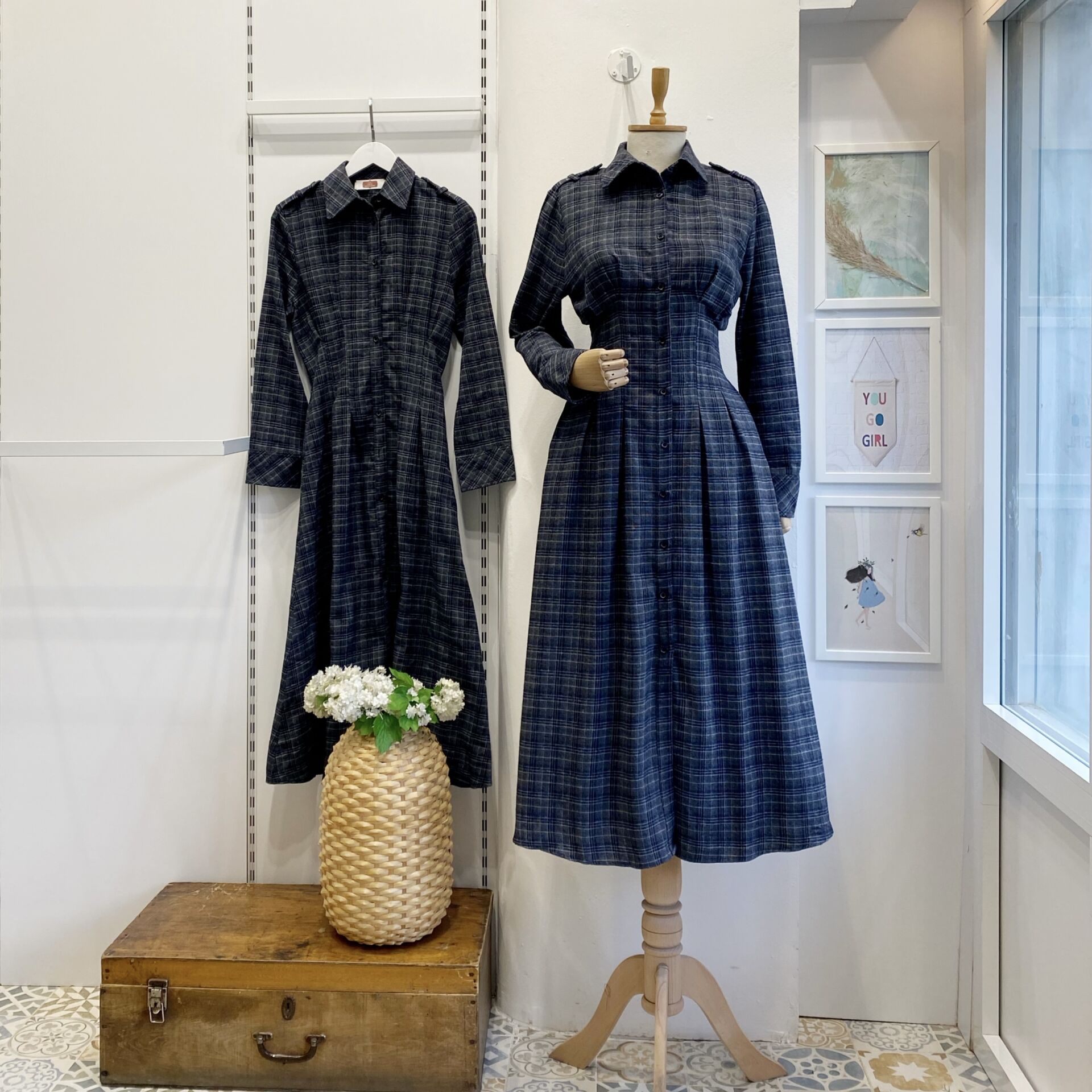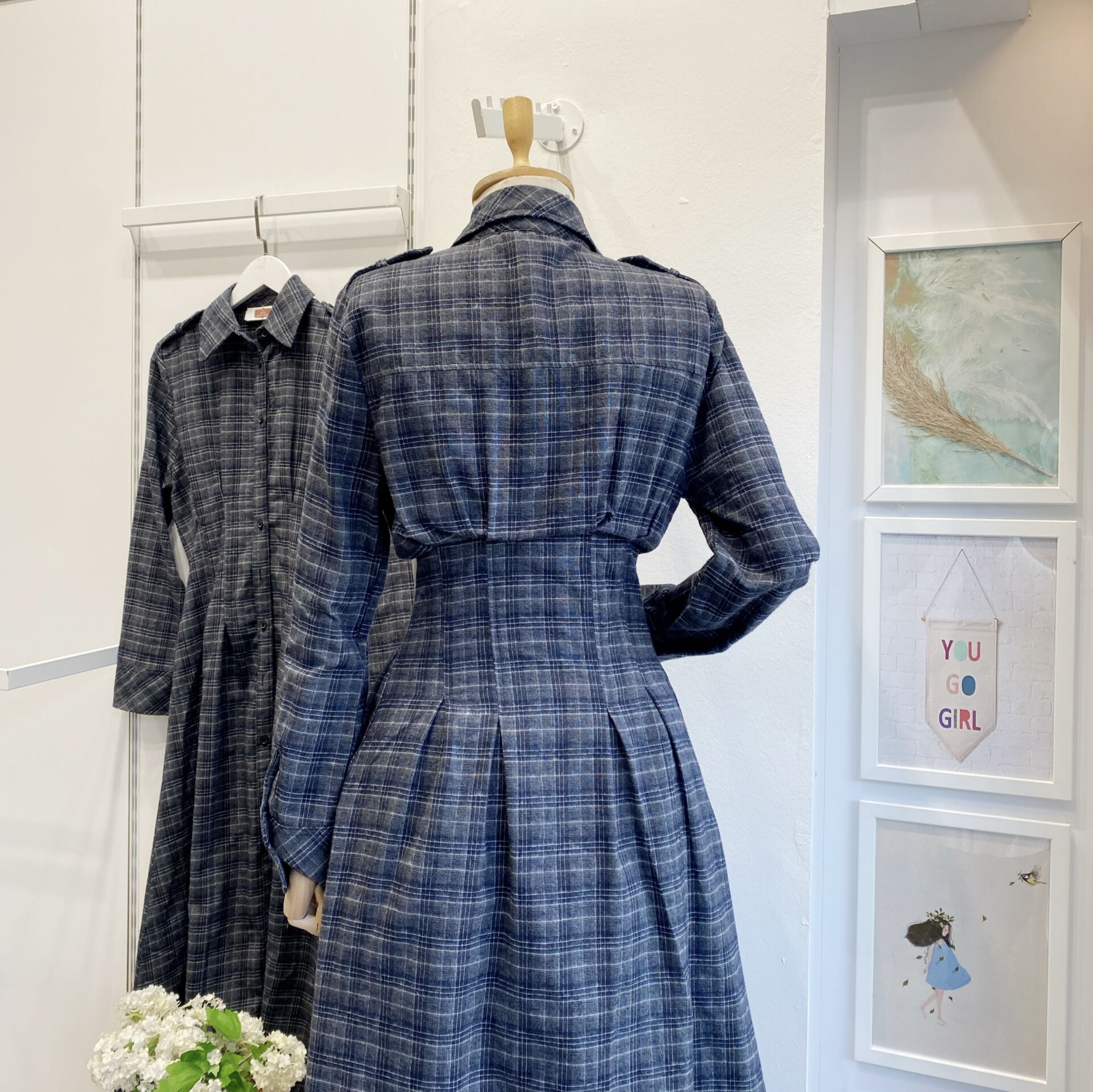Lacivert Ekose Desenli Elbise