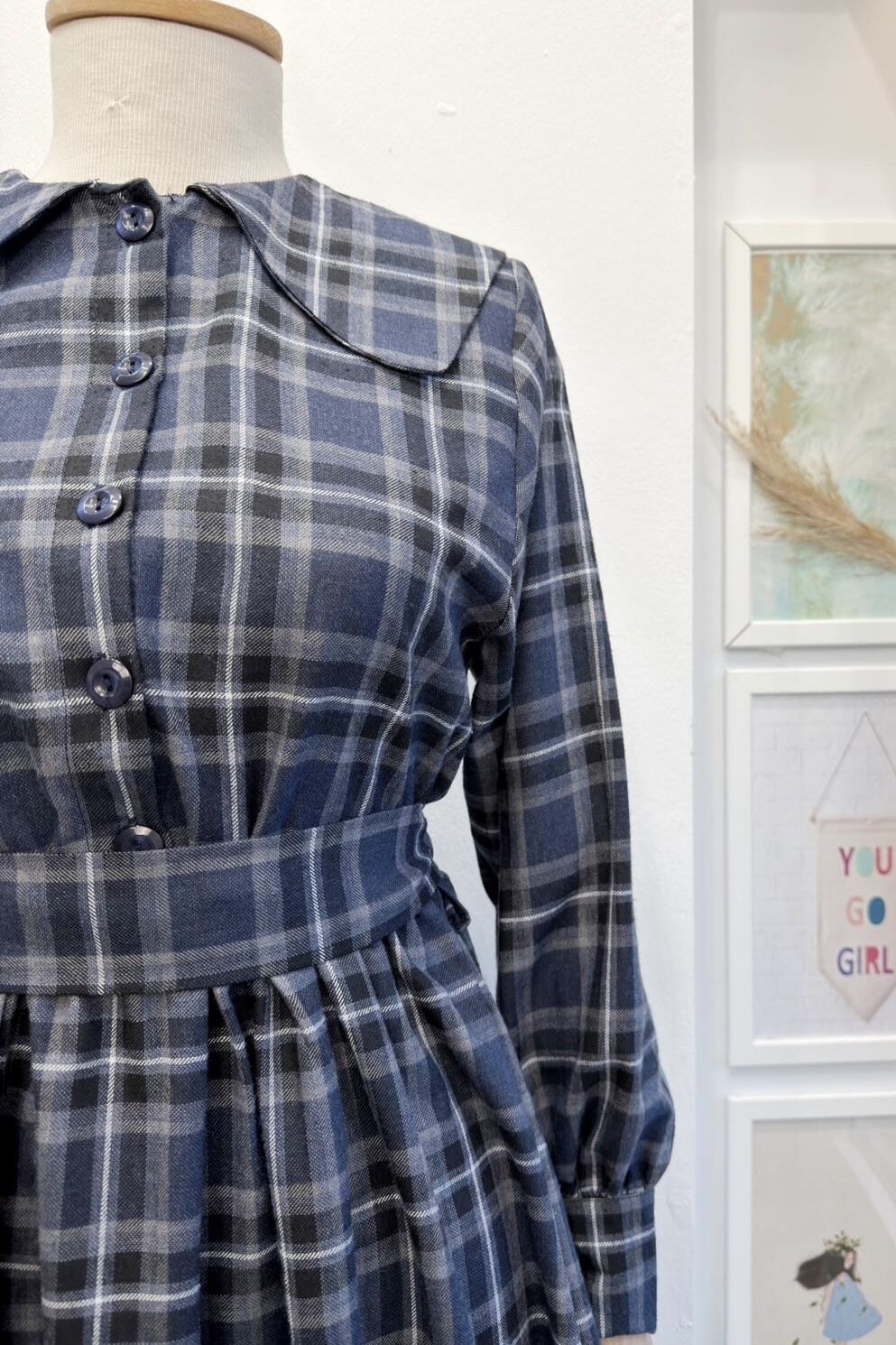 Lacivert Ekoseli Adeline Elbise