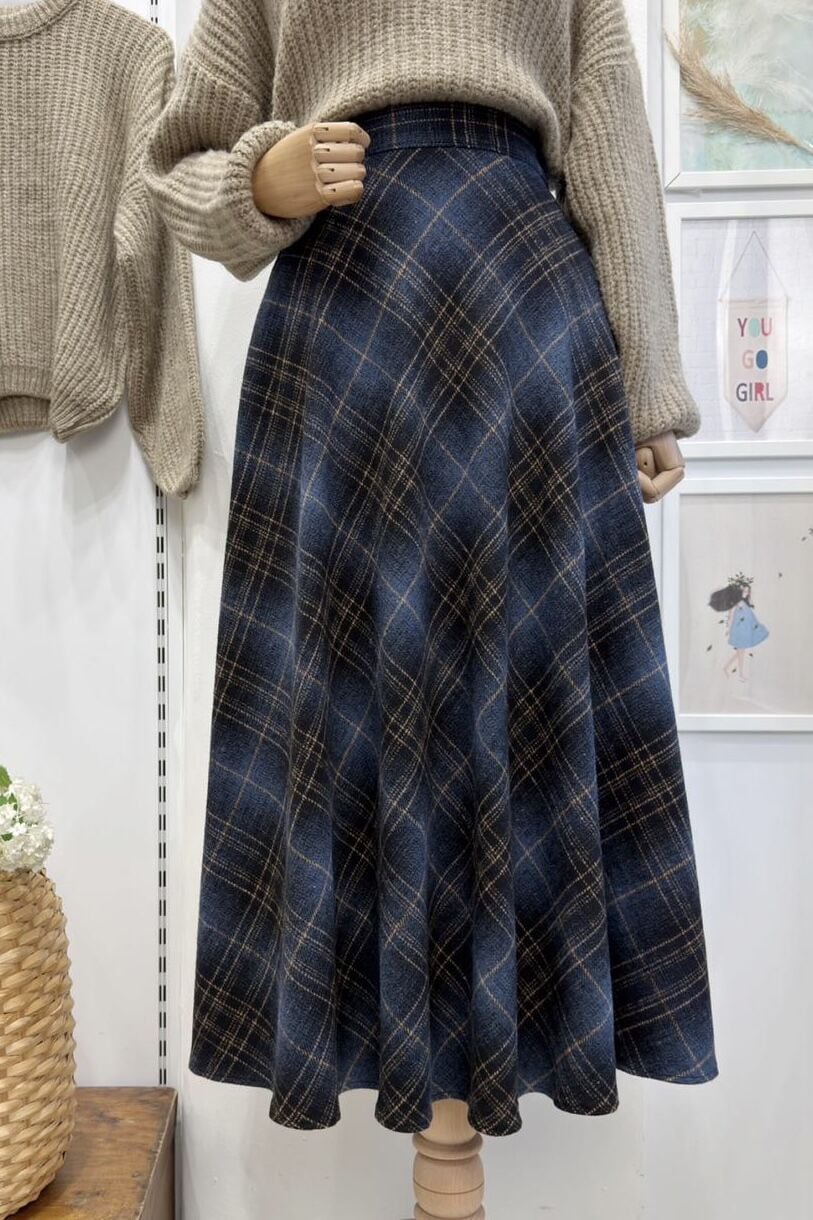 Lacivert Ekoseli Serena Etek