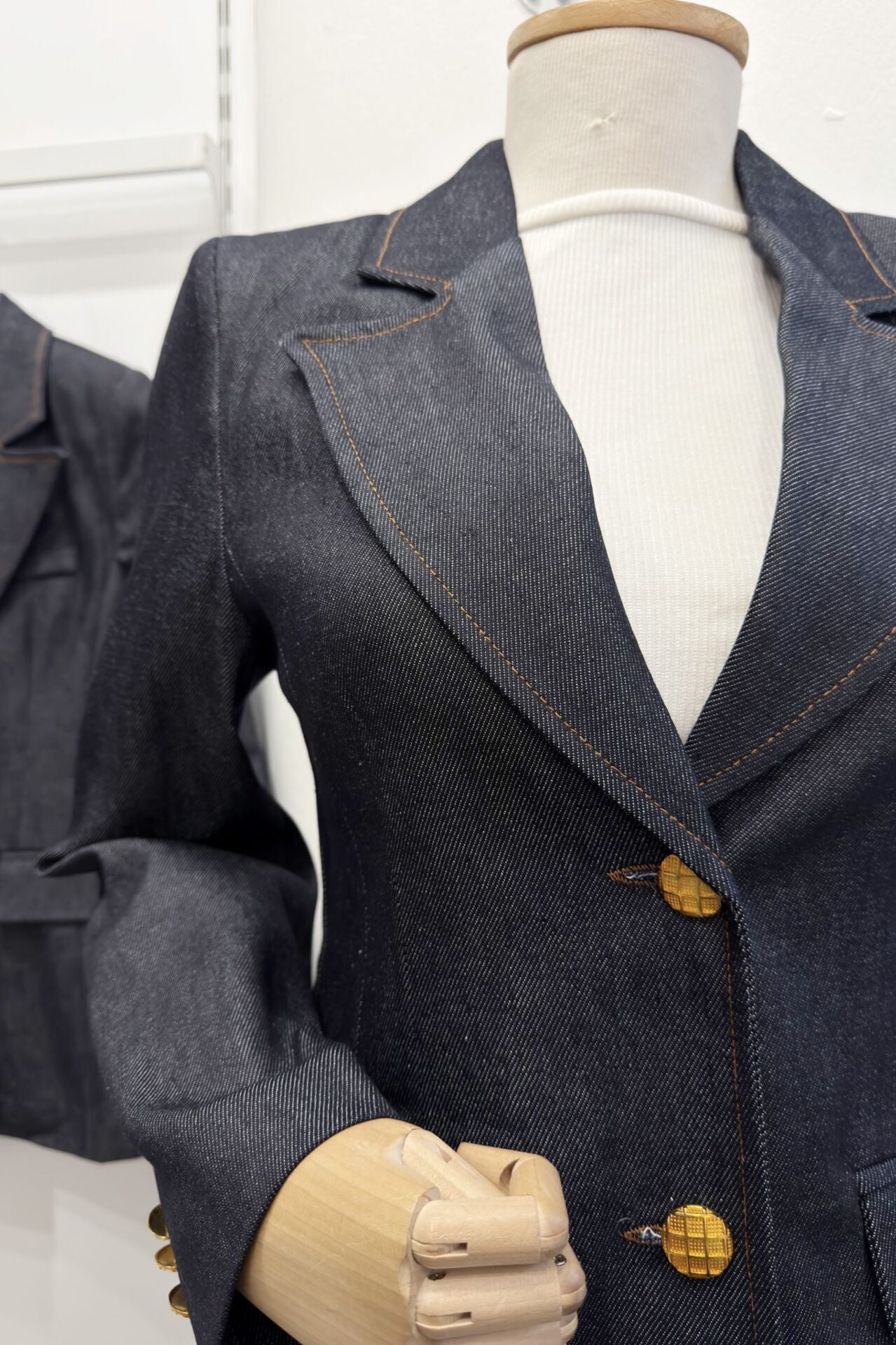 Lacivert Gold Düğme Detaylı Blazer Kot Ceket