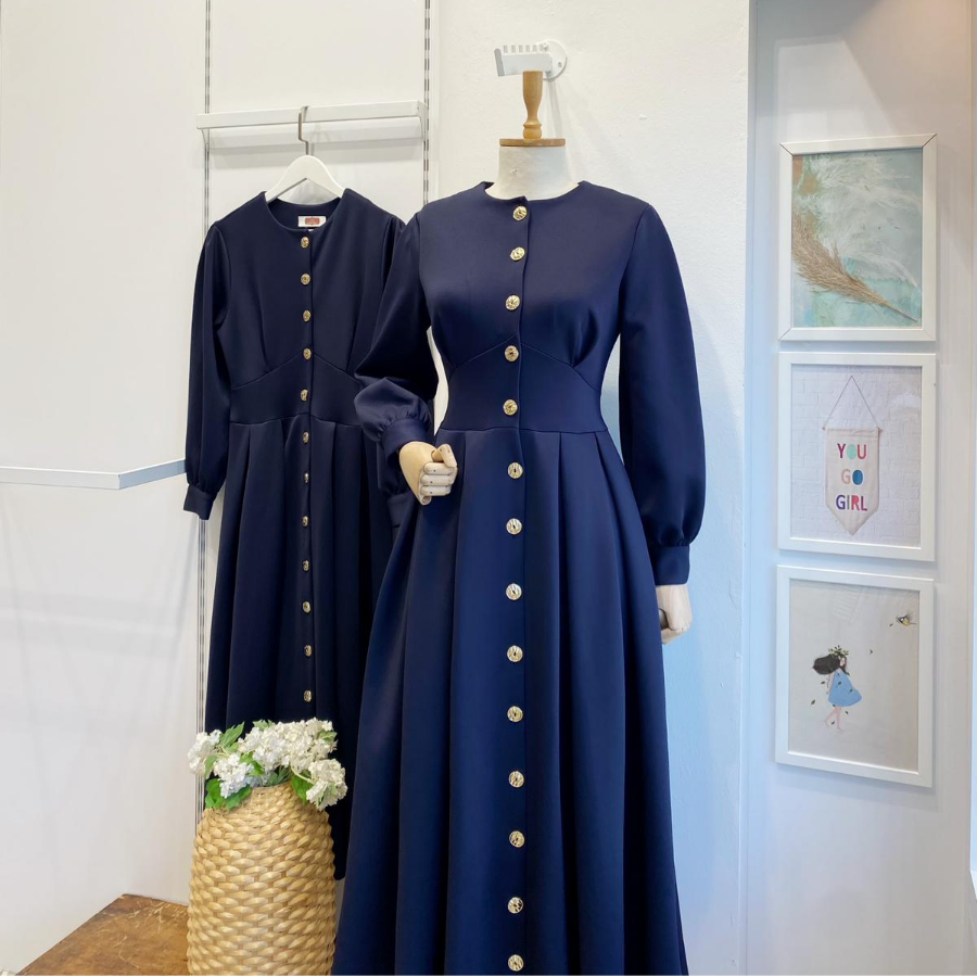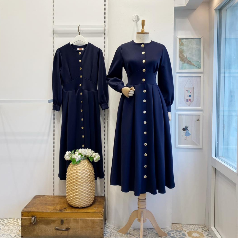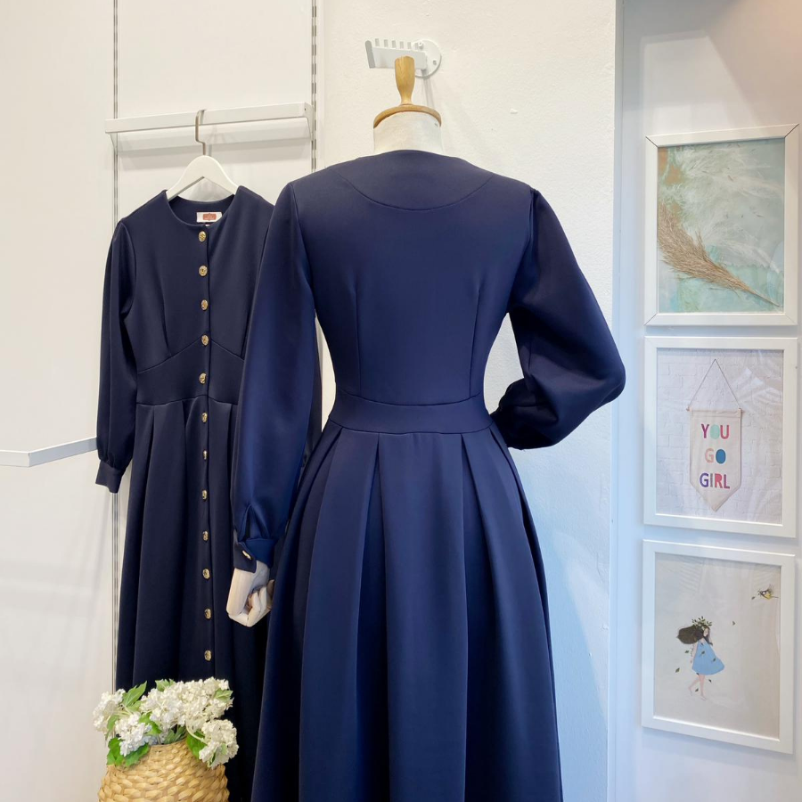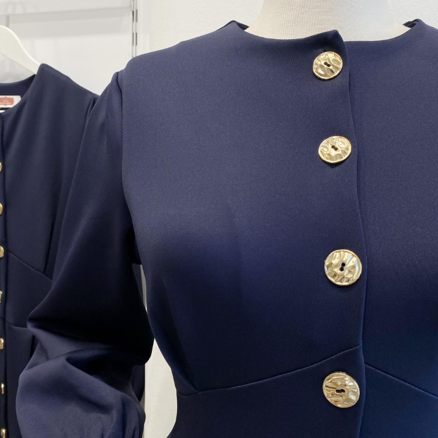 Lacivert Gold Düğmeli Scuba Elbise