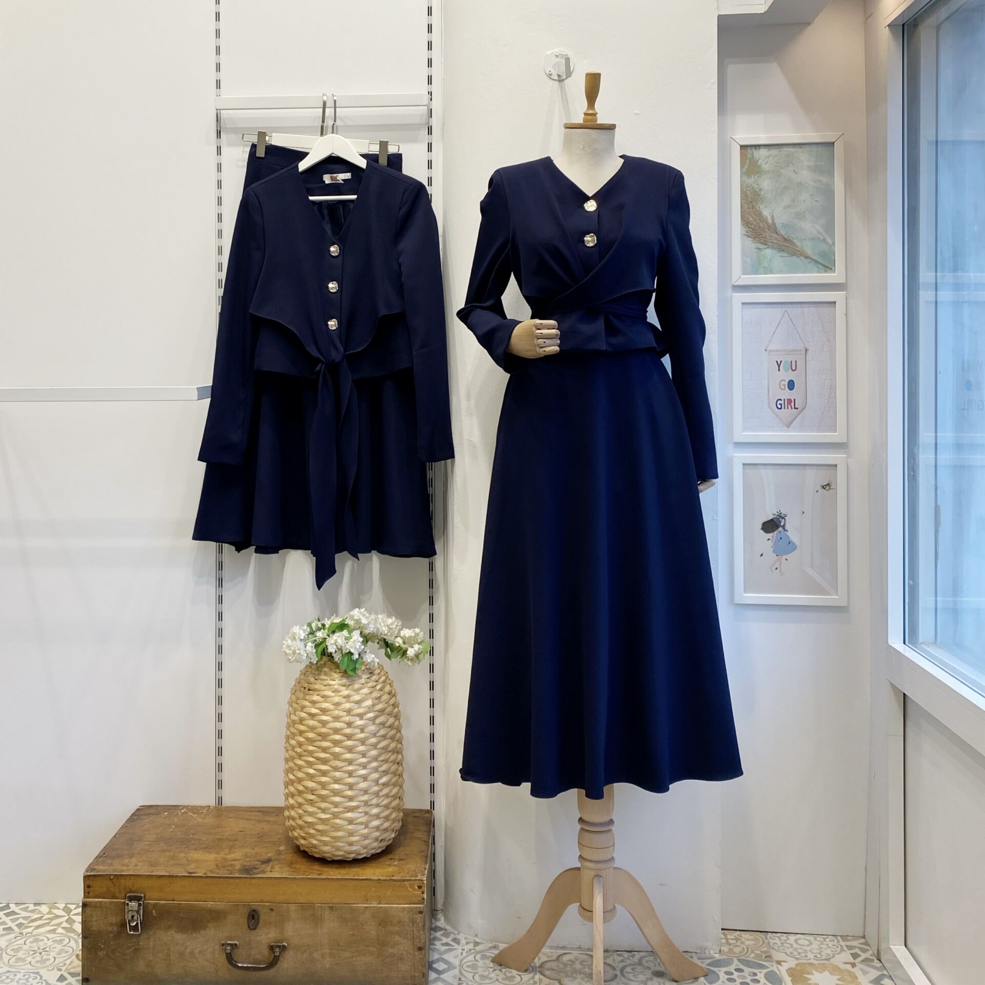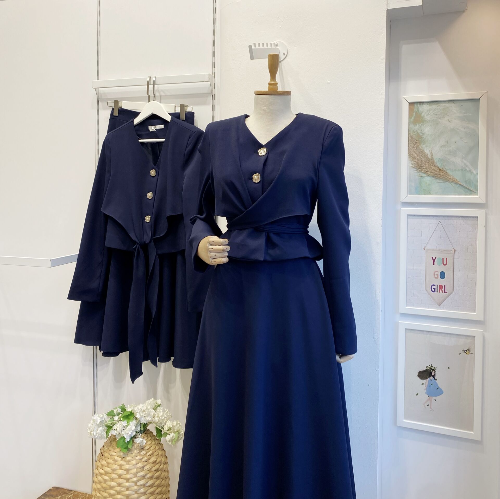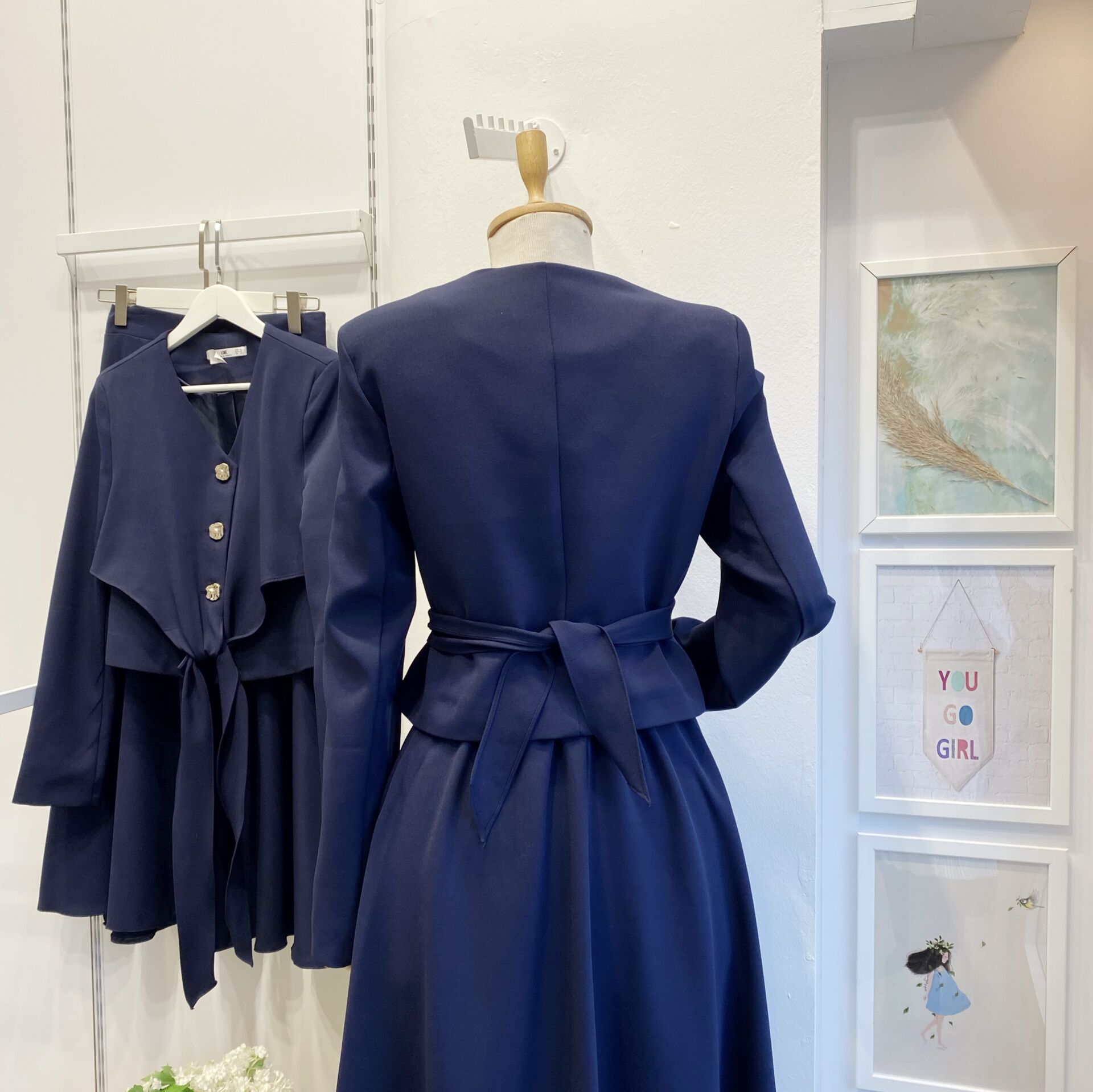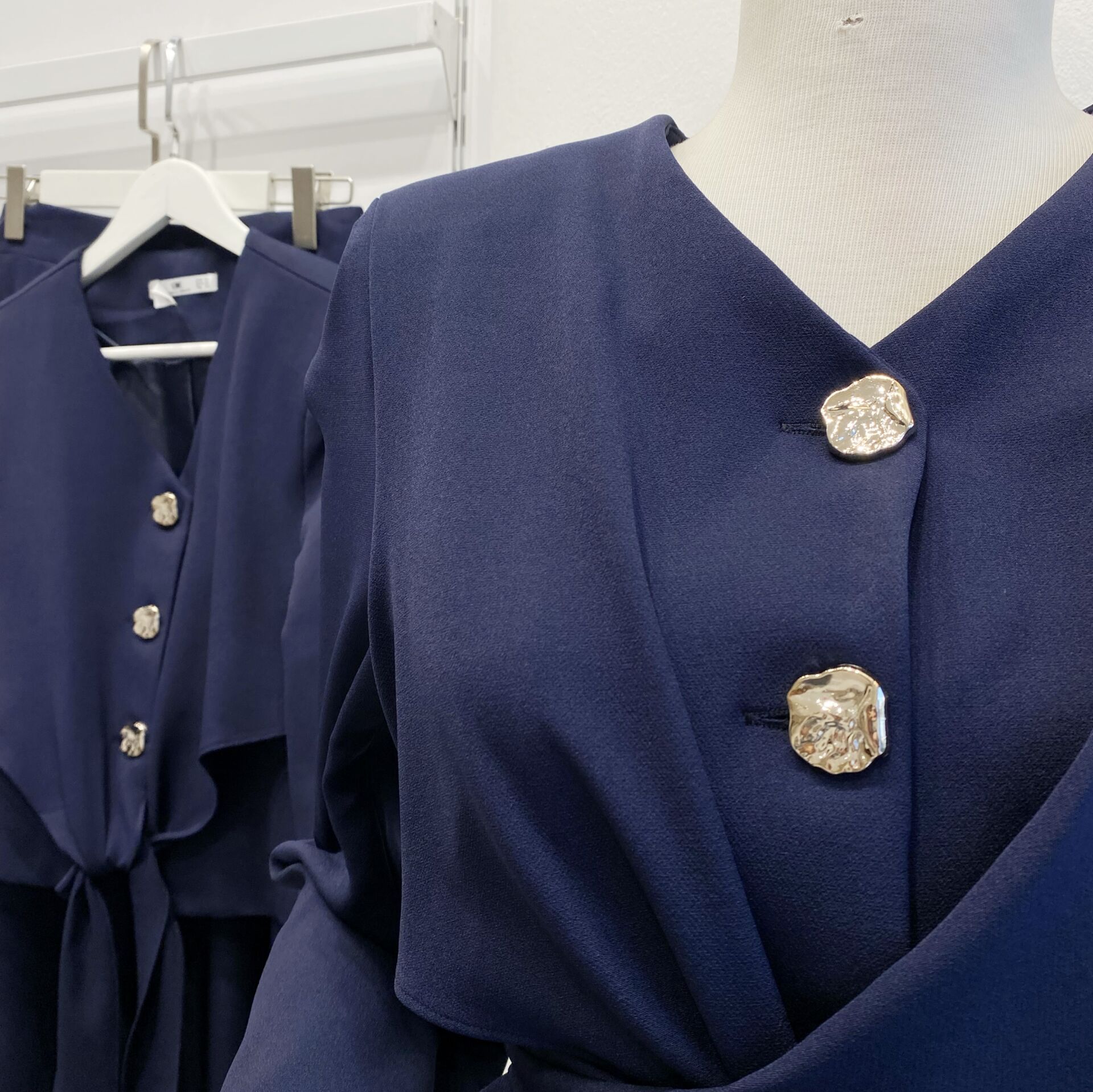 Lacivert Gold Düğmeli Vatka Detaylı Crep Takım