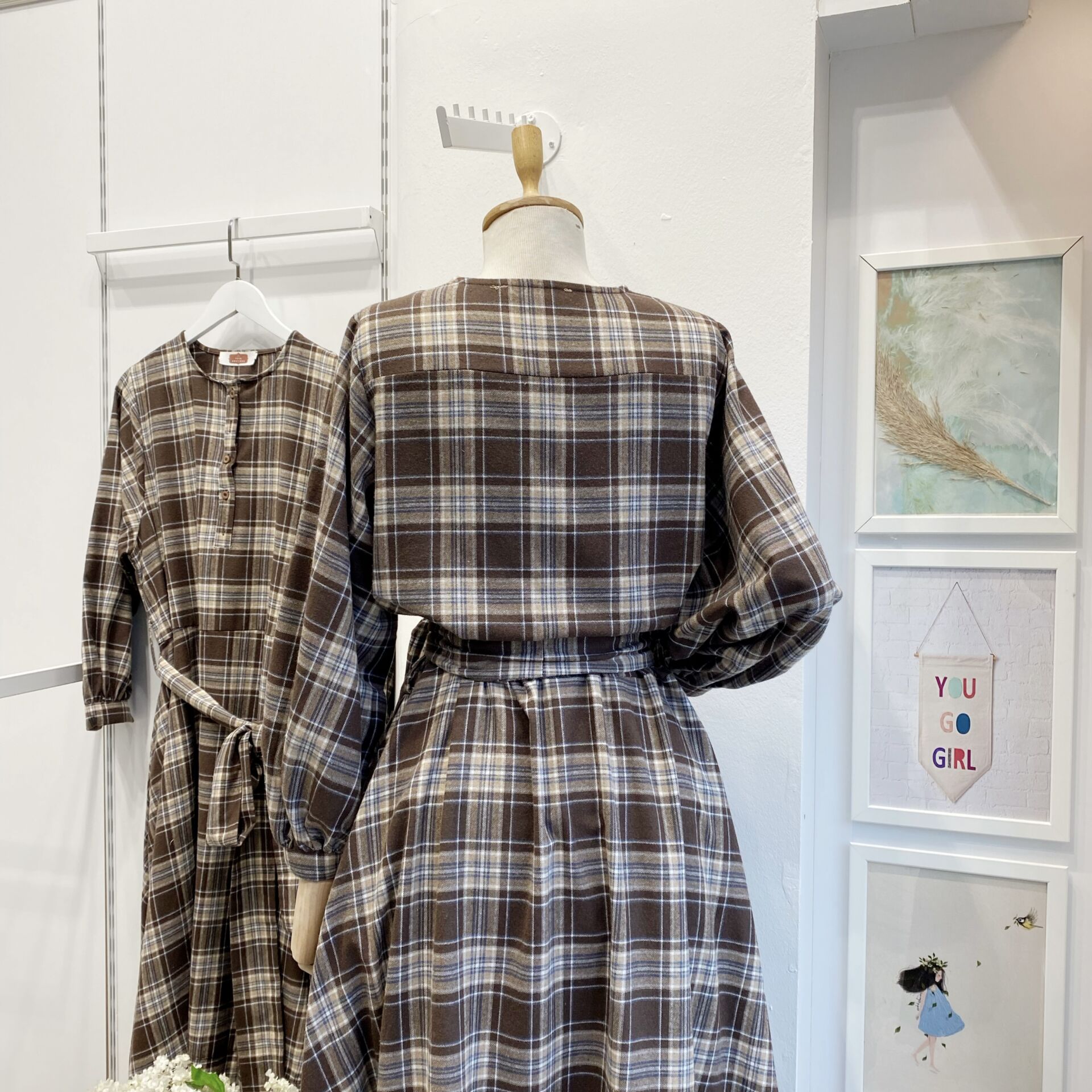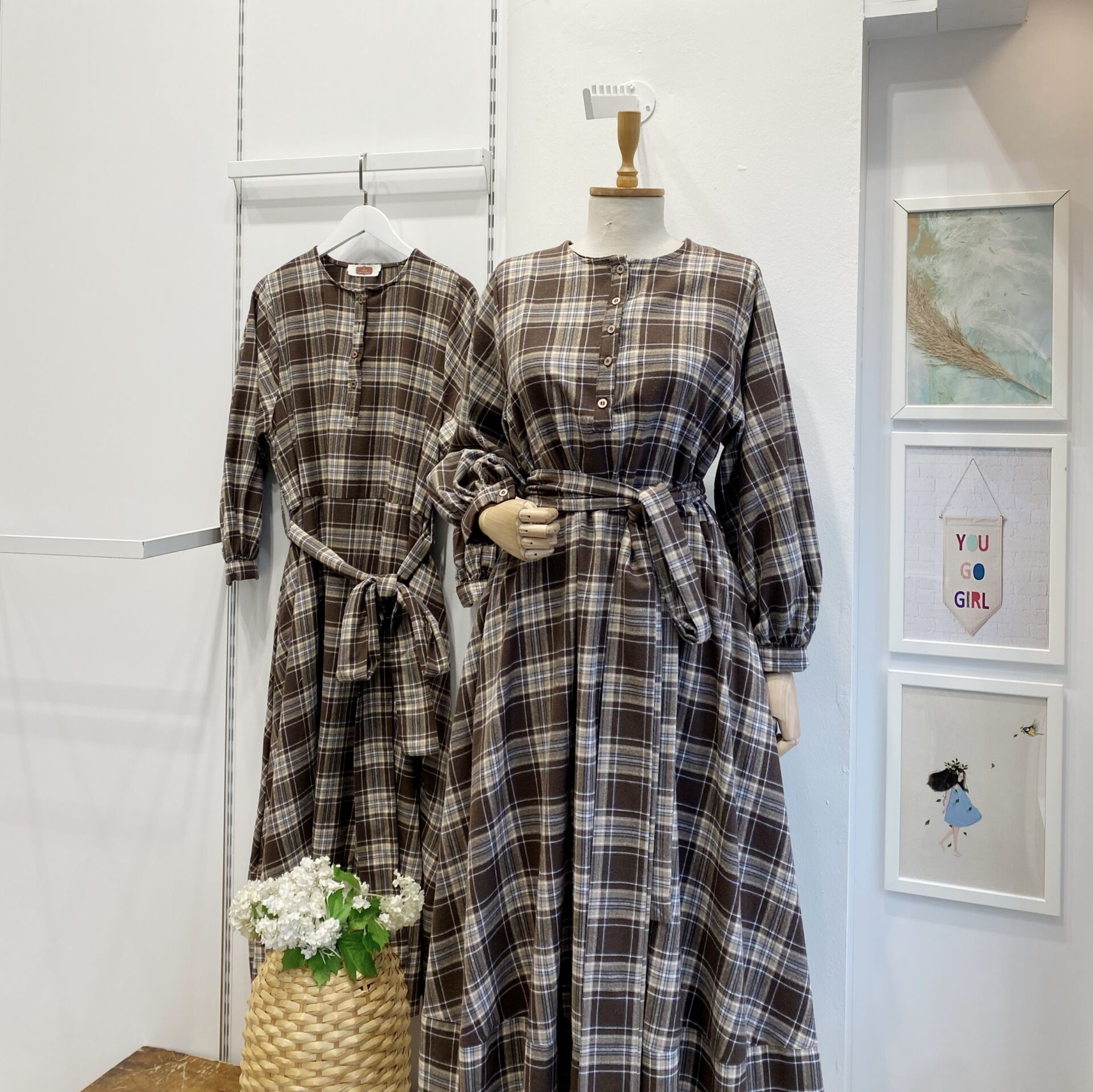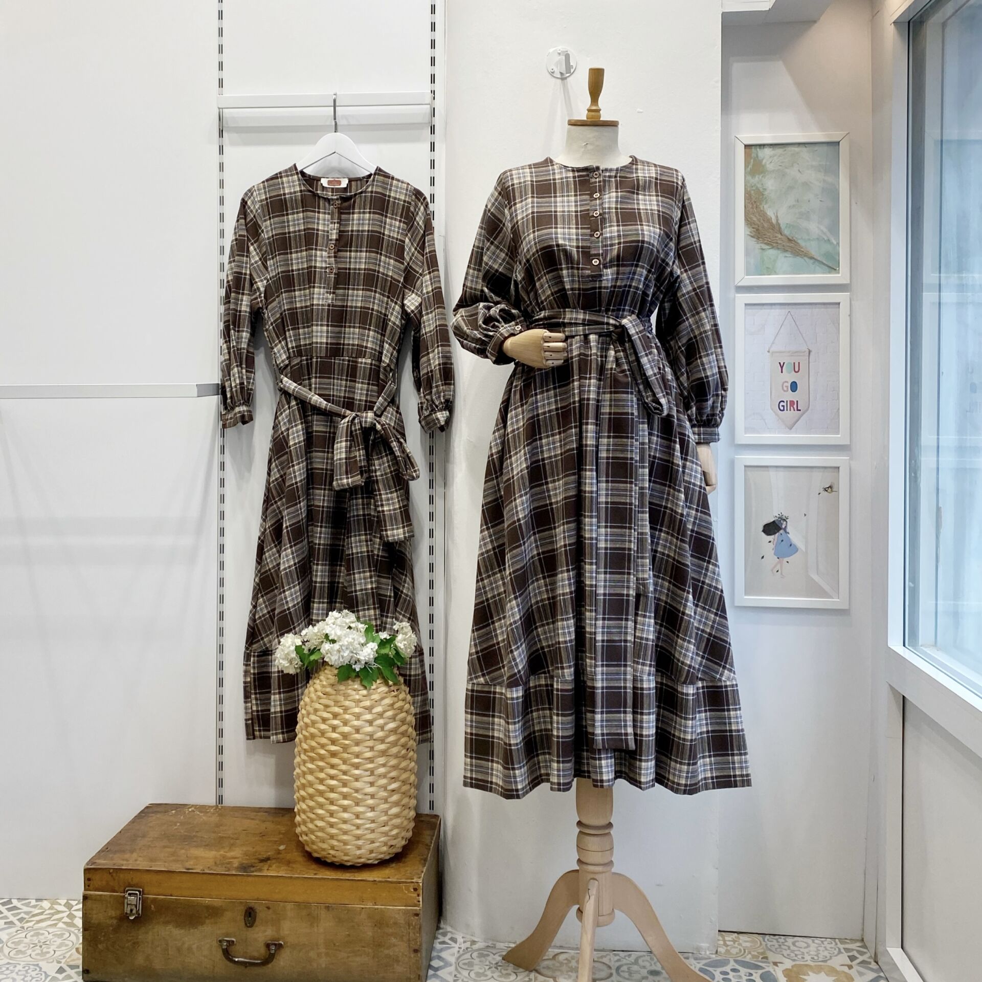 Lacivert İnce Çizgili Kahverengi Ekoseli Sweety Elbise