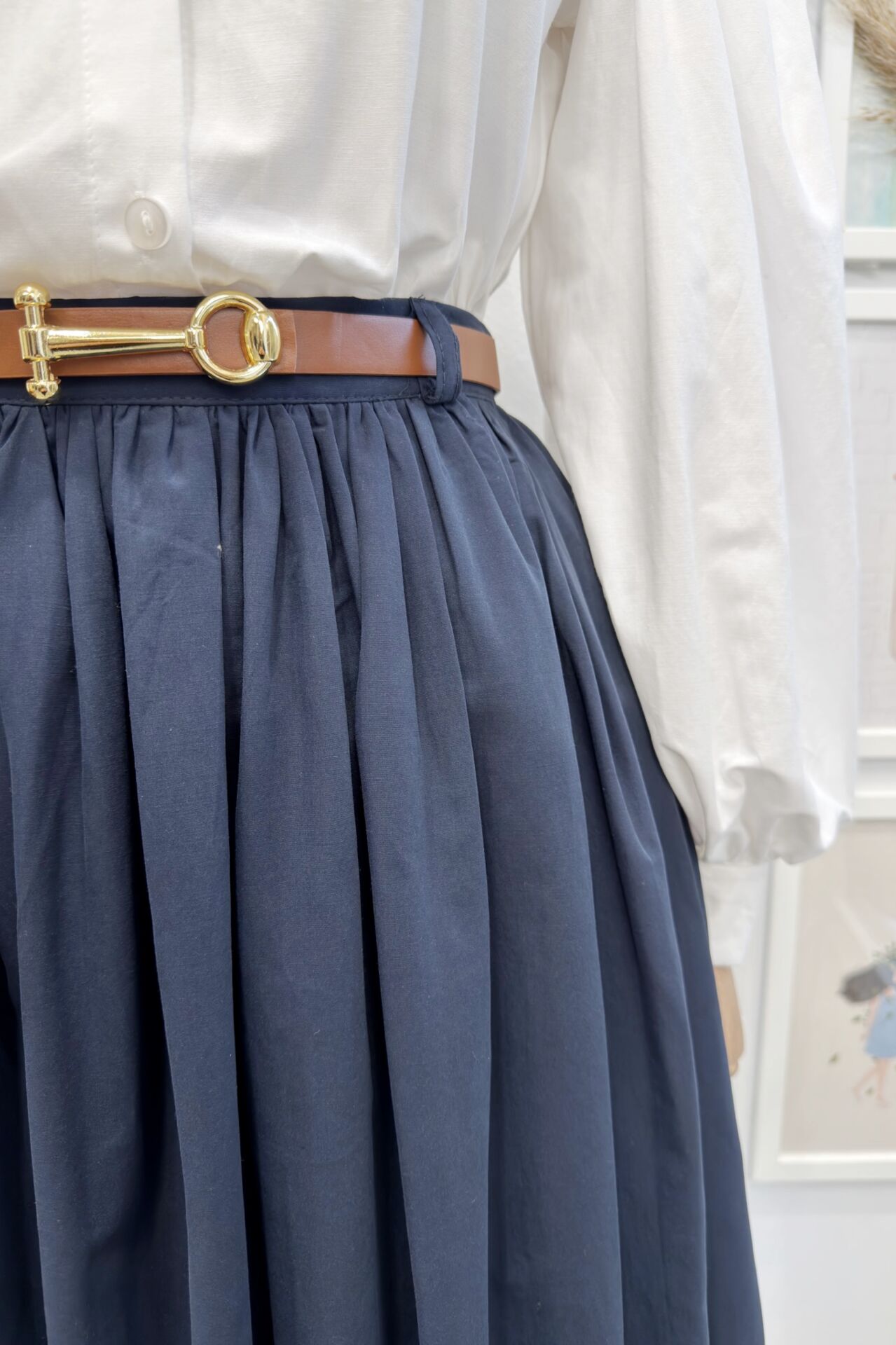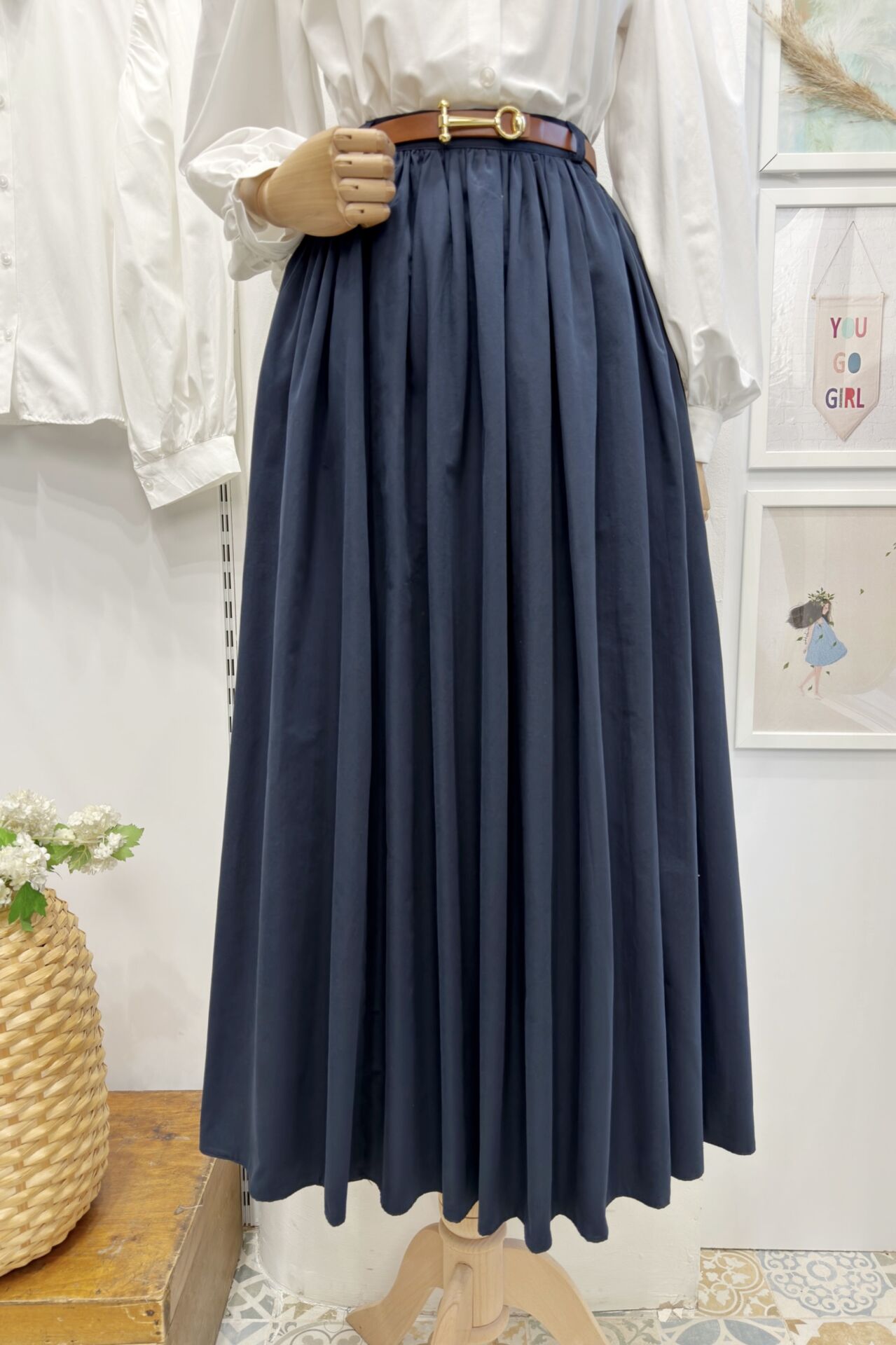 Lacivert Kemerli Sık Pileli Etek