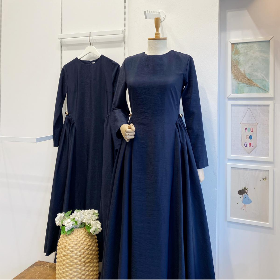 Lacivert Paper Touch Bel Detaylı Penelope Elbise