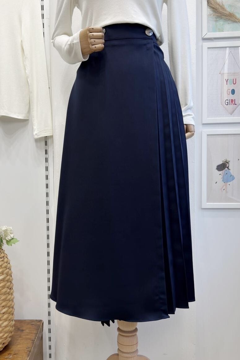 Lacivert Pilise Detaylı Düğmeli Anvelop Etek
