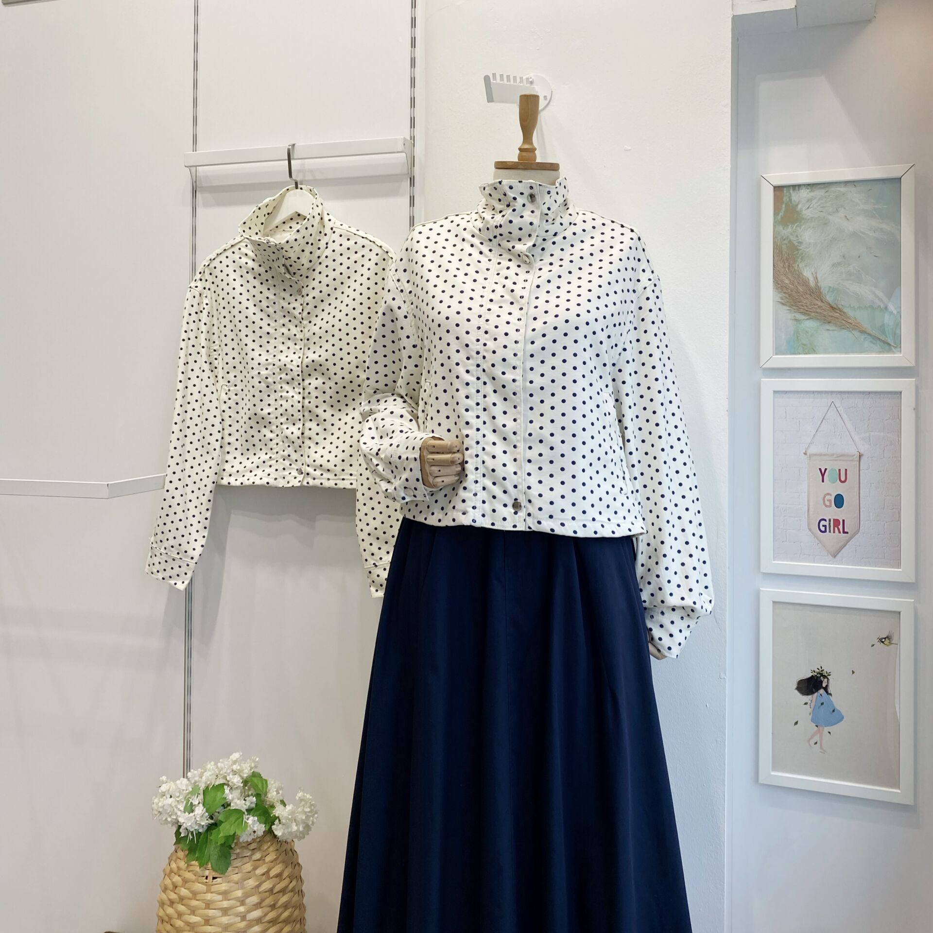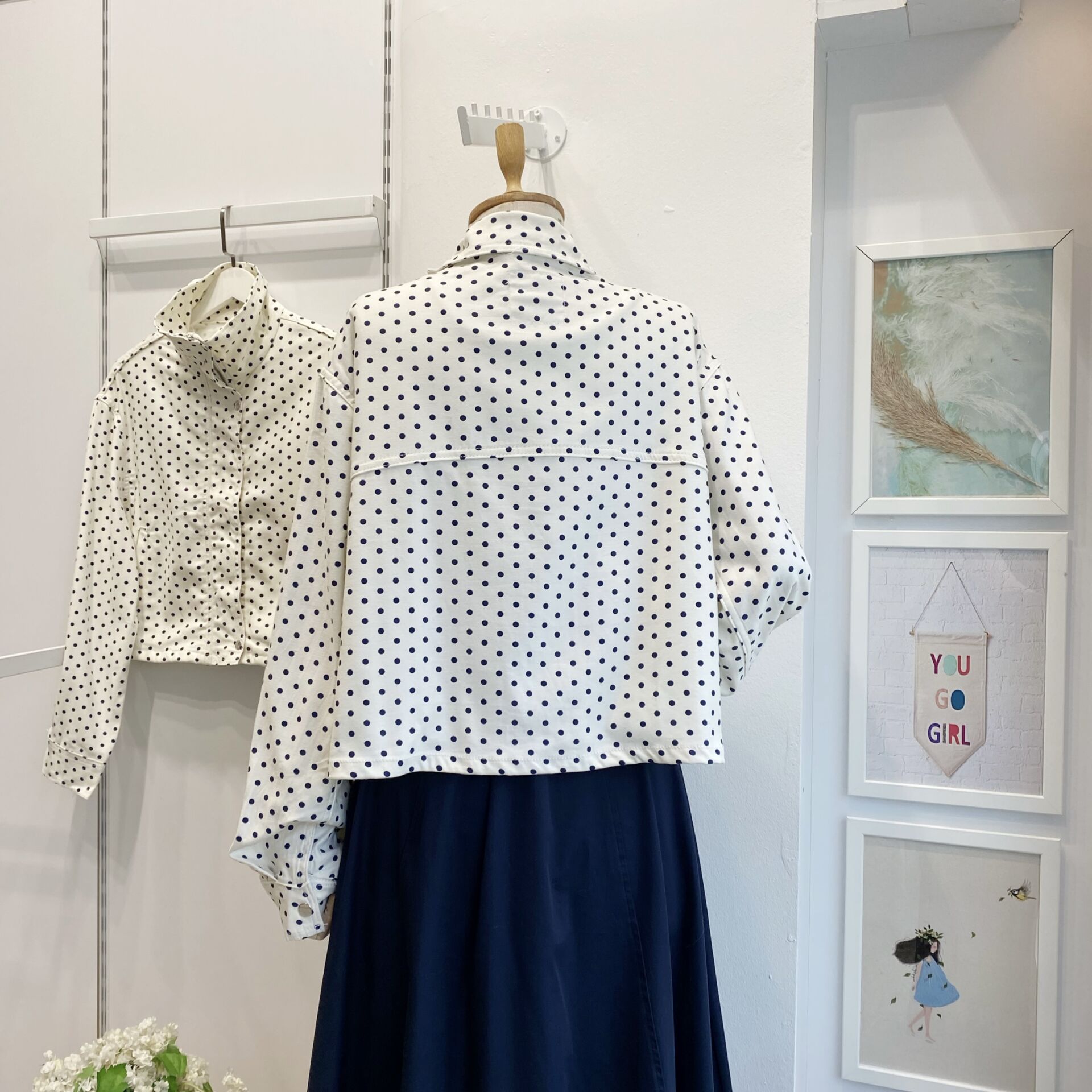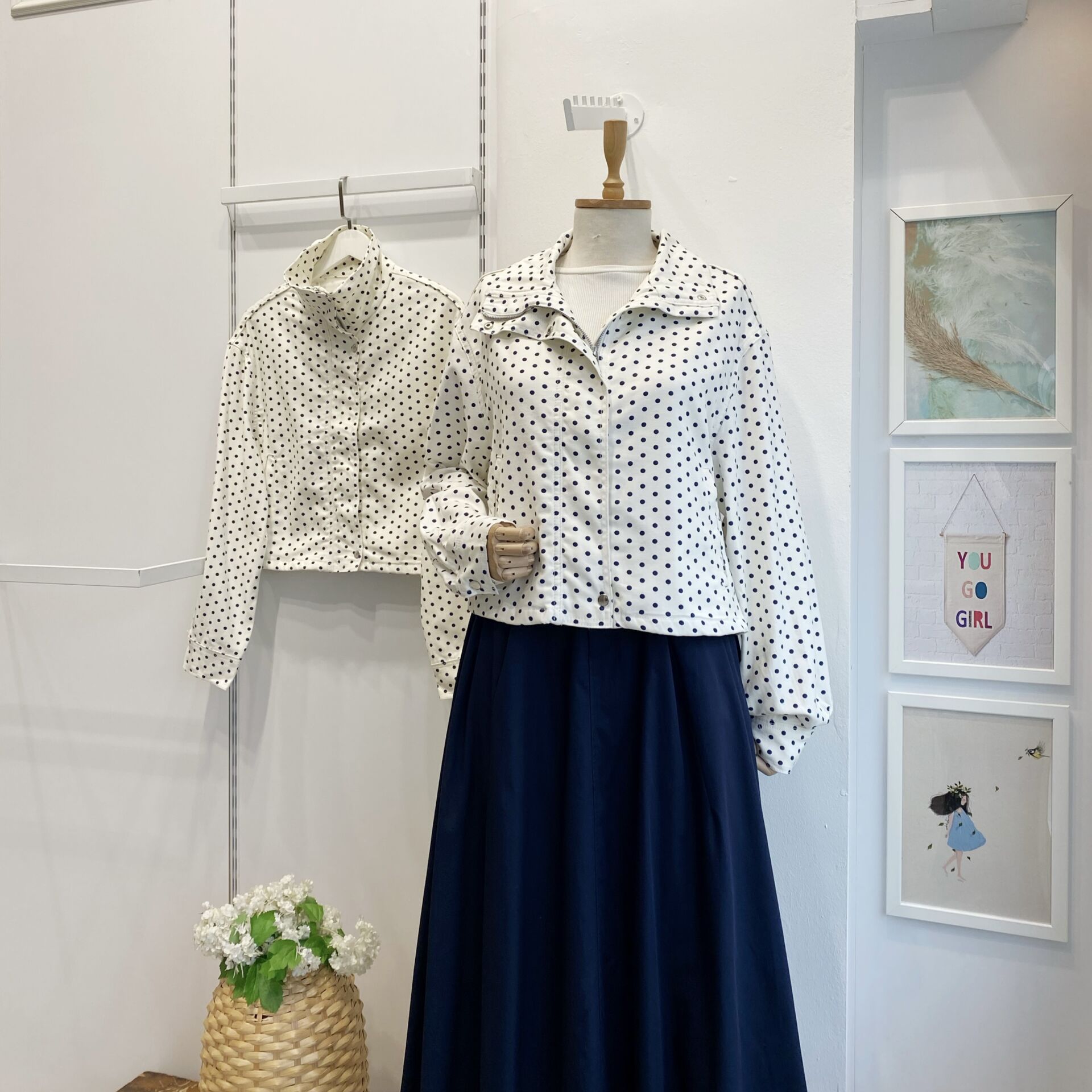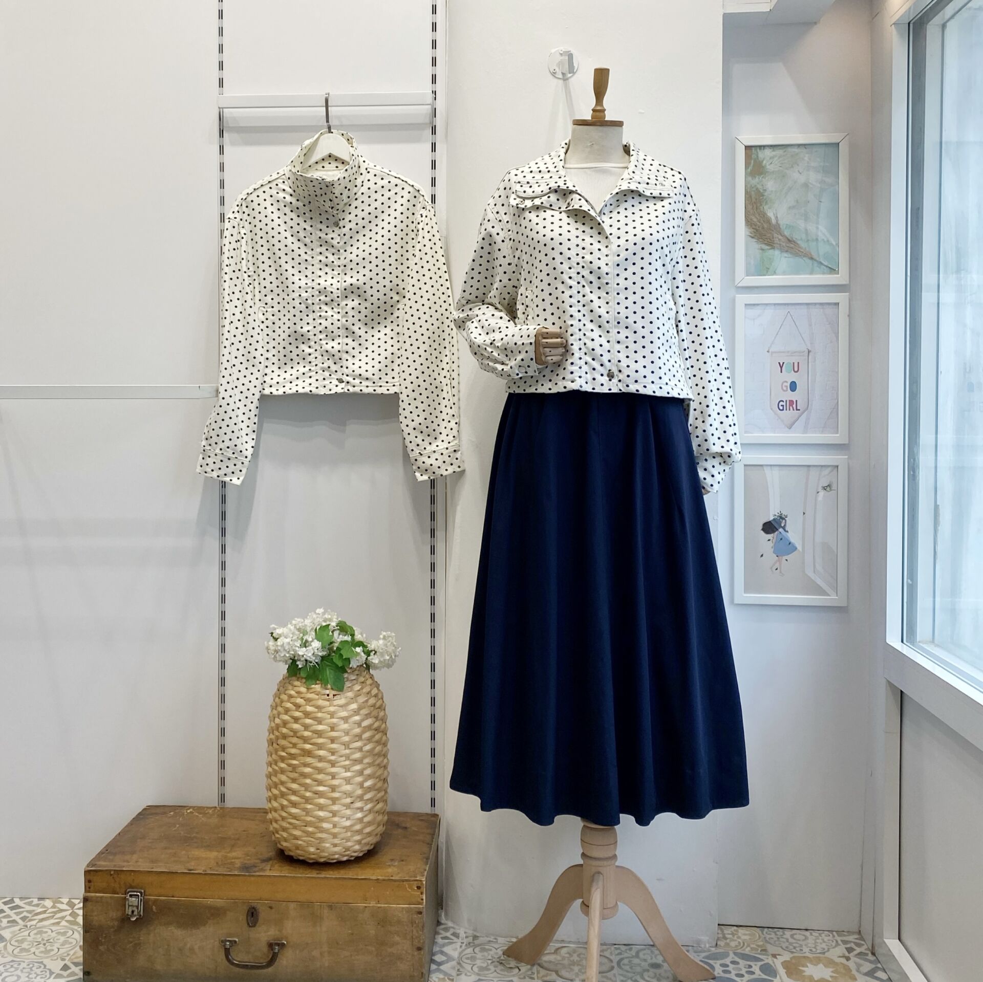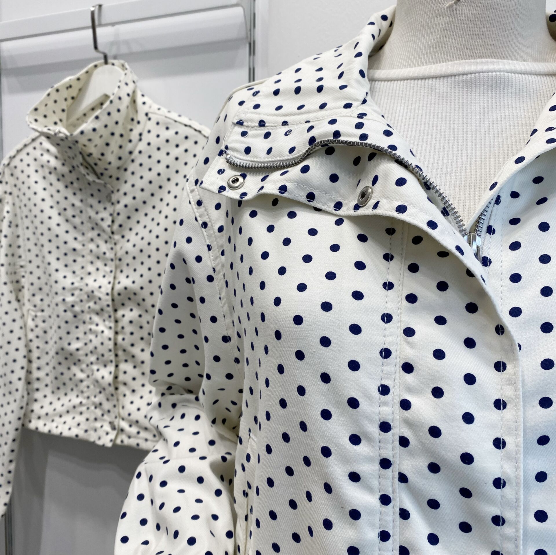Lacivert Puantiyeli Beyaz Ceket