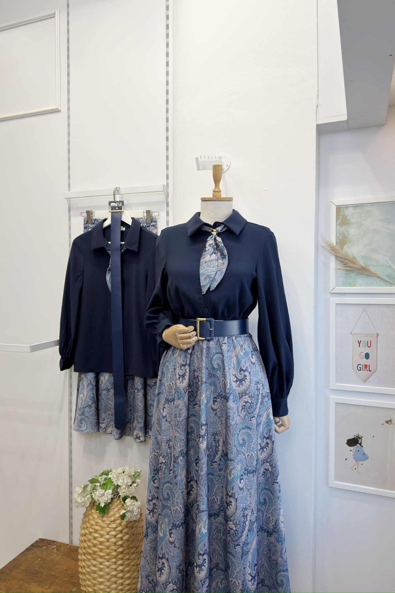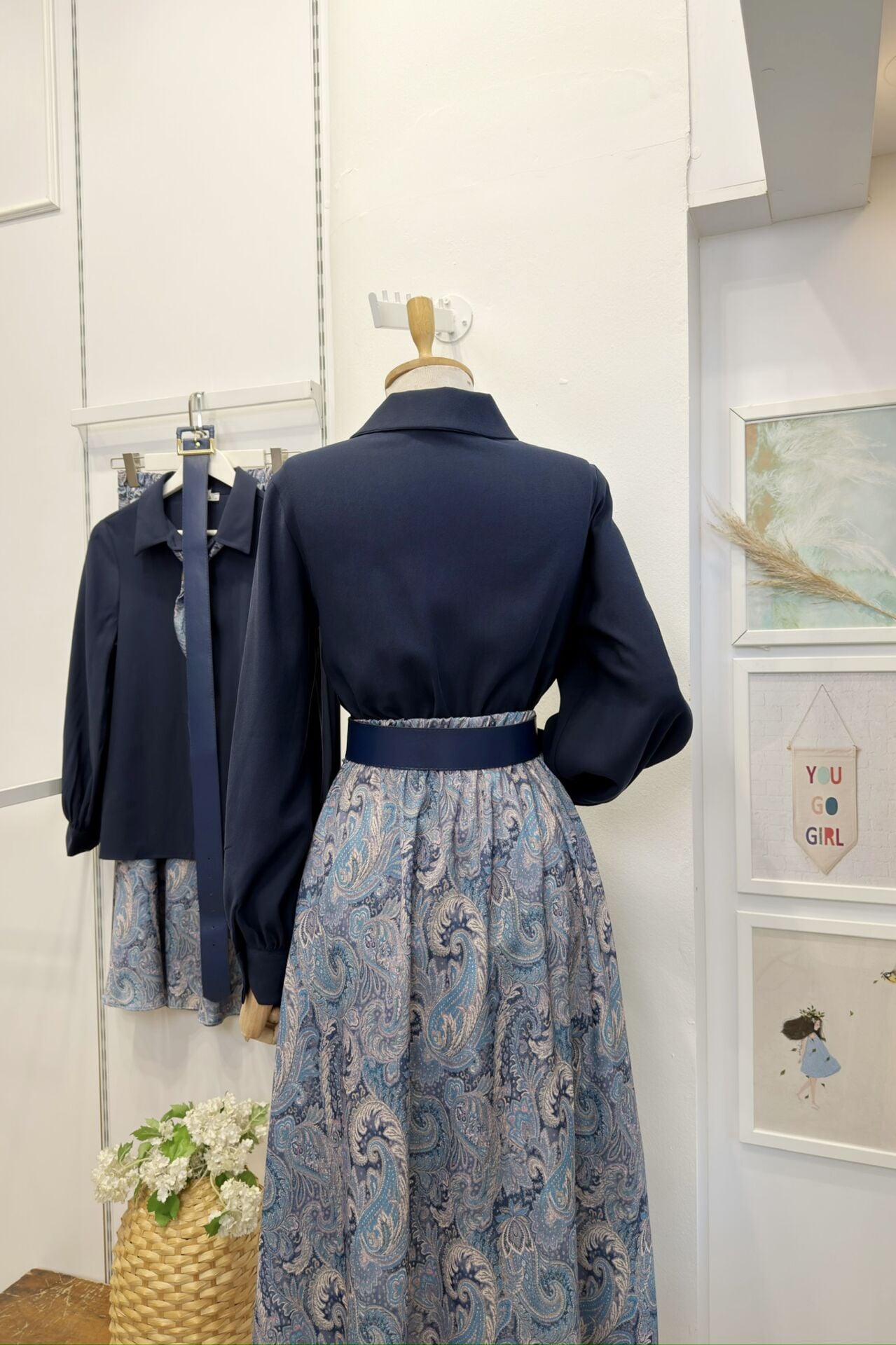 Lacivert Saten Desenli Etekli Clemence Takım