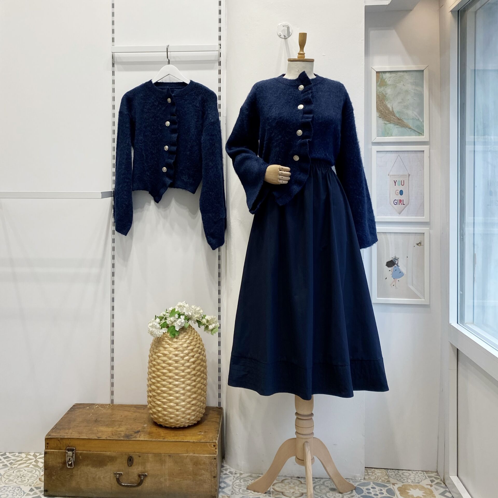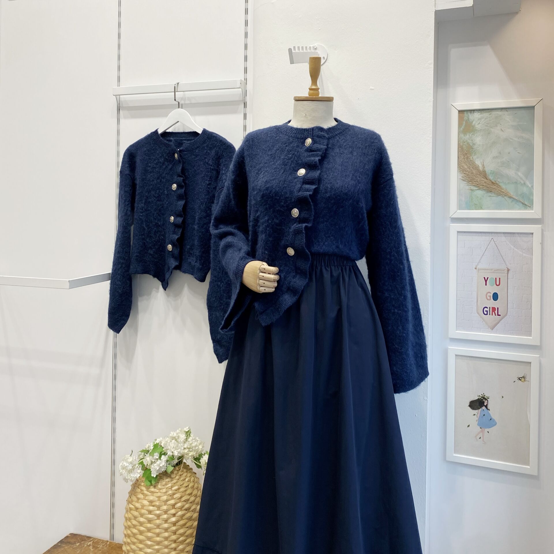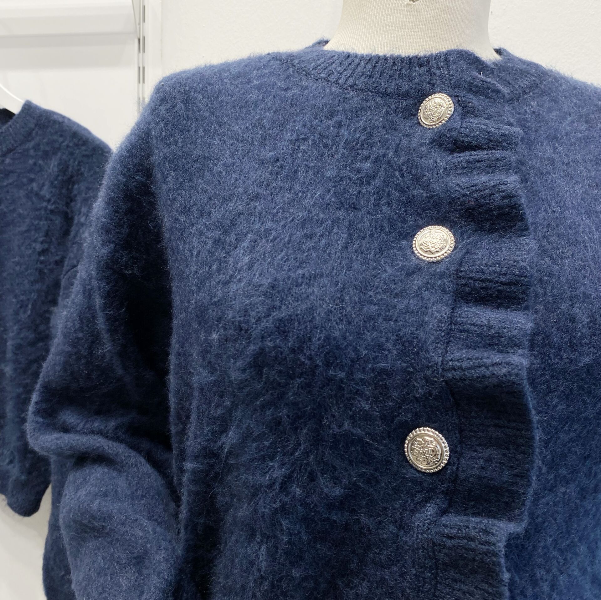 Lacivert Silver Düğmeli Asimetrik Hırka