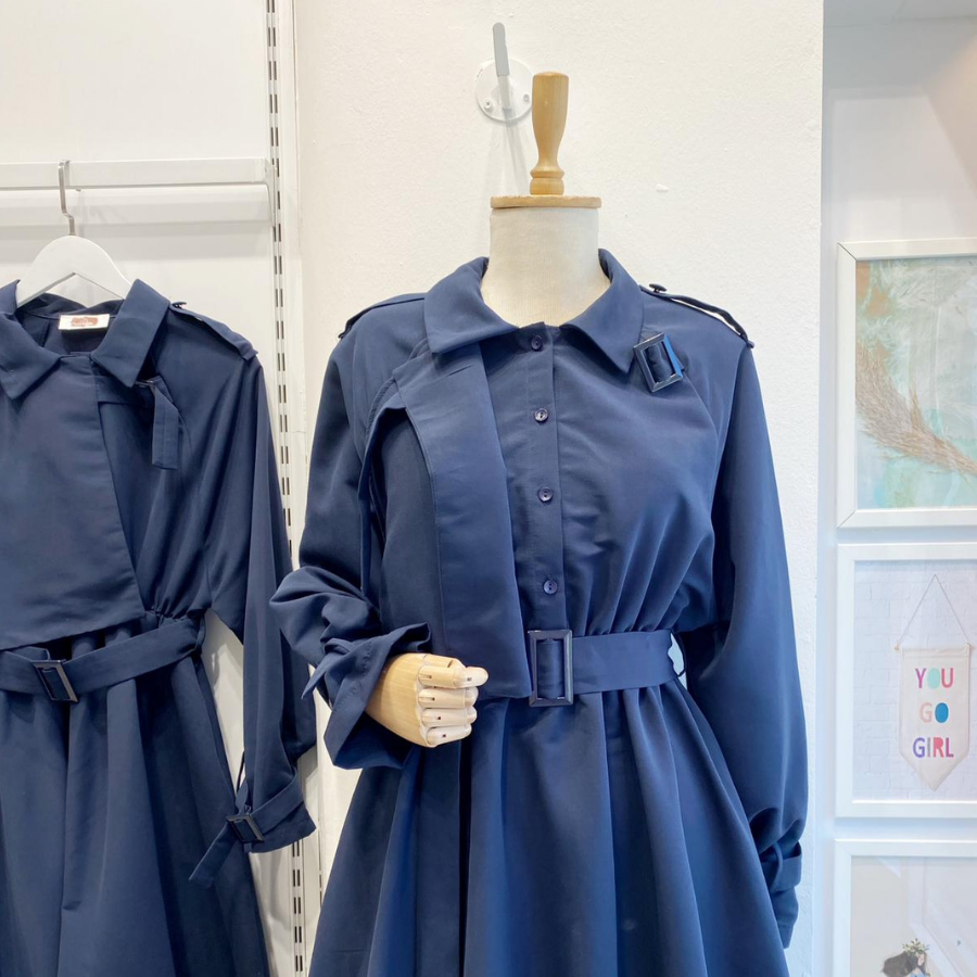 Lacivert Trenç Model Elbise