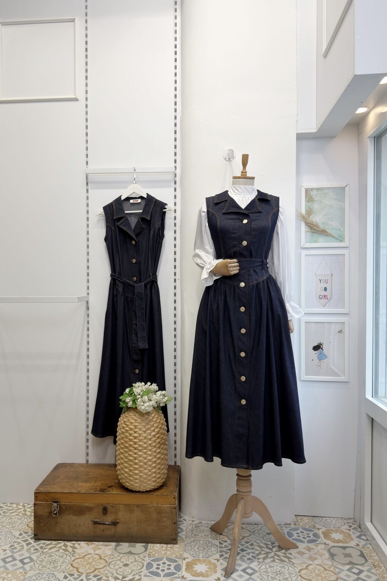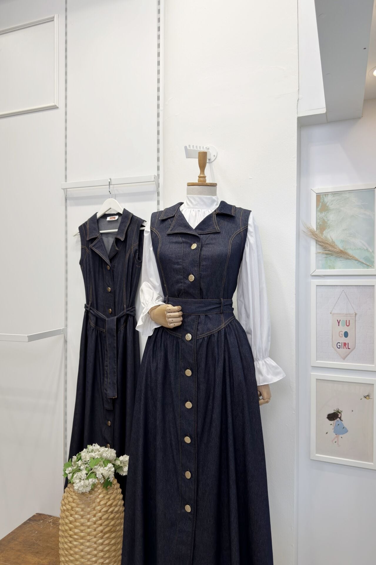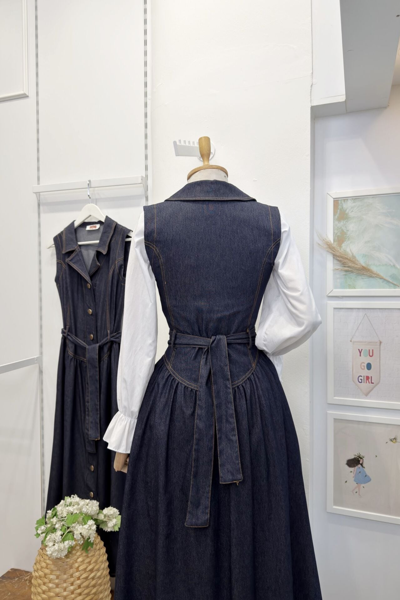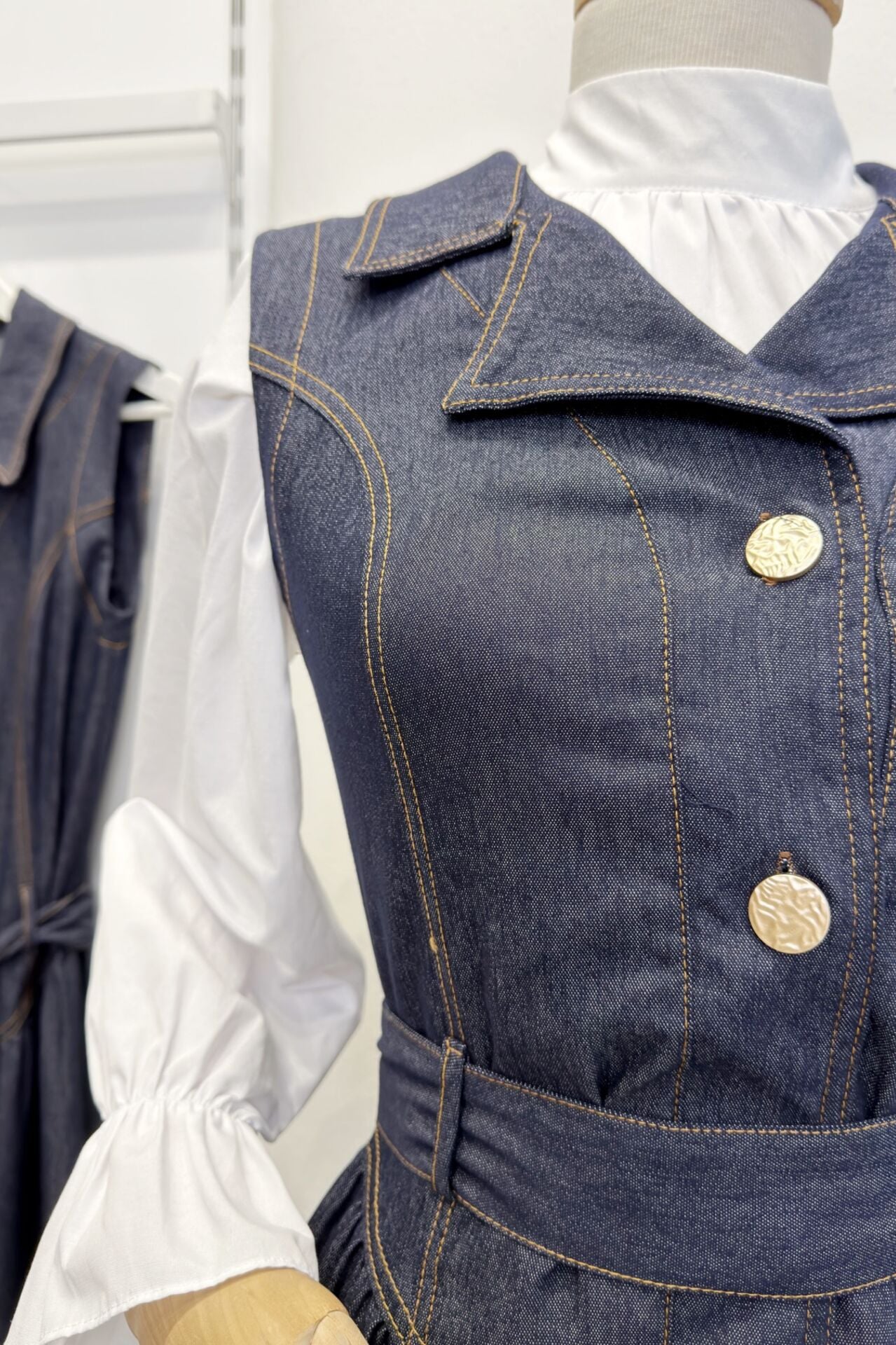 Lacivert Bel Detaylı Gömlek Yaka Kot Jile
