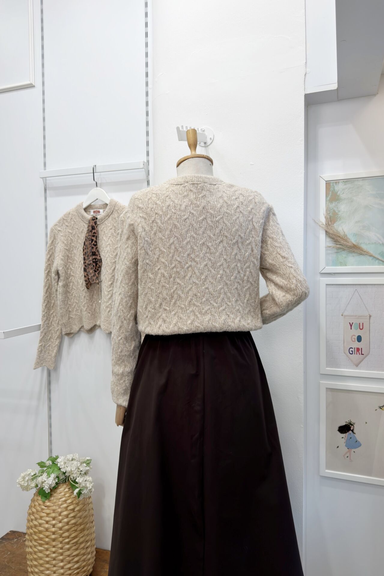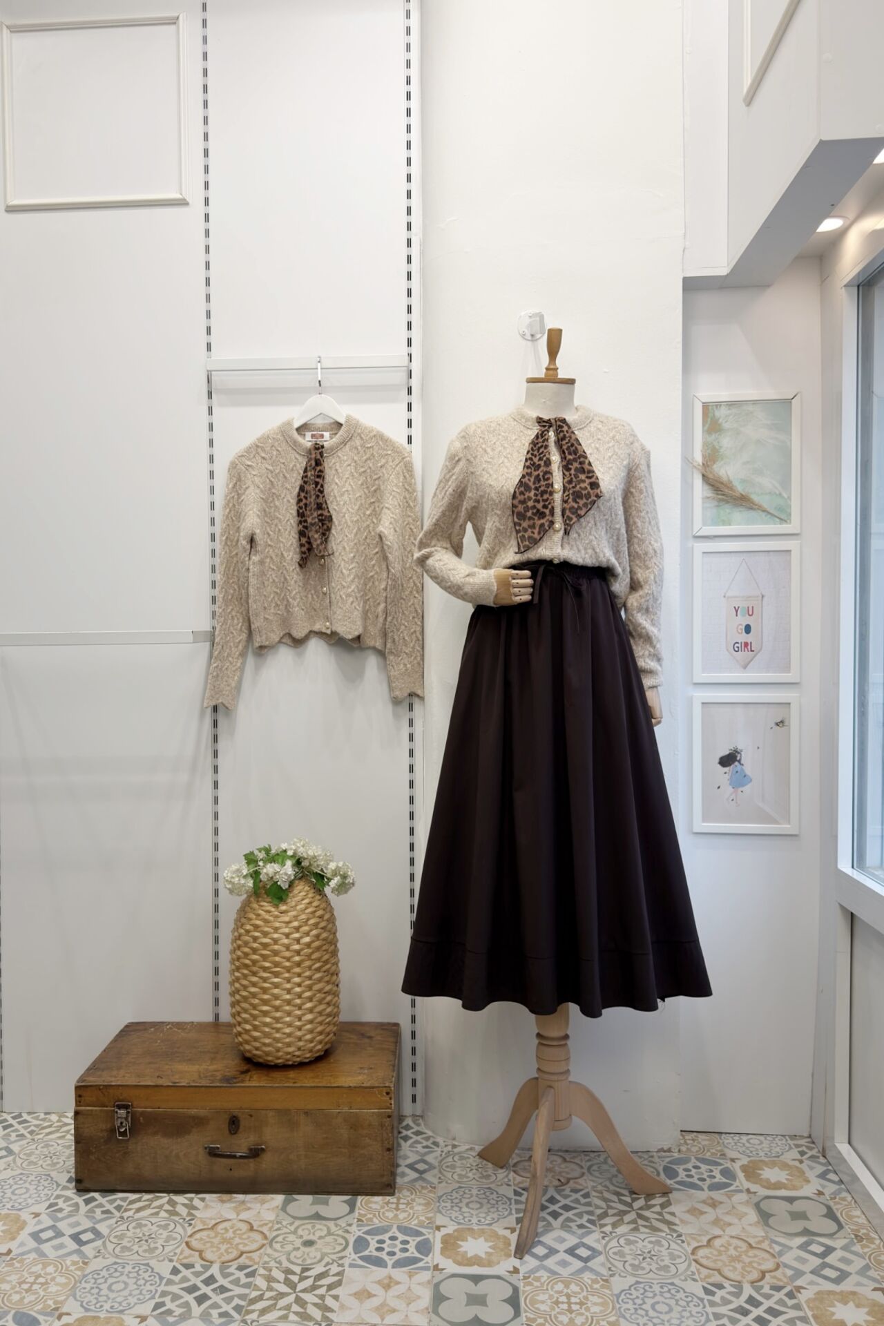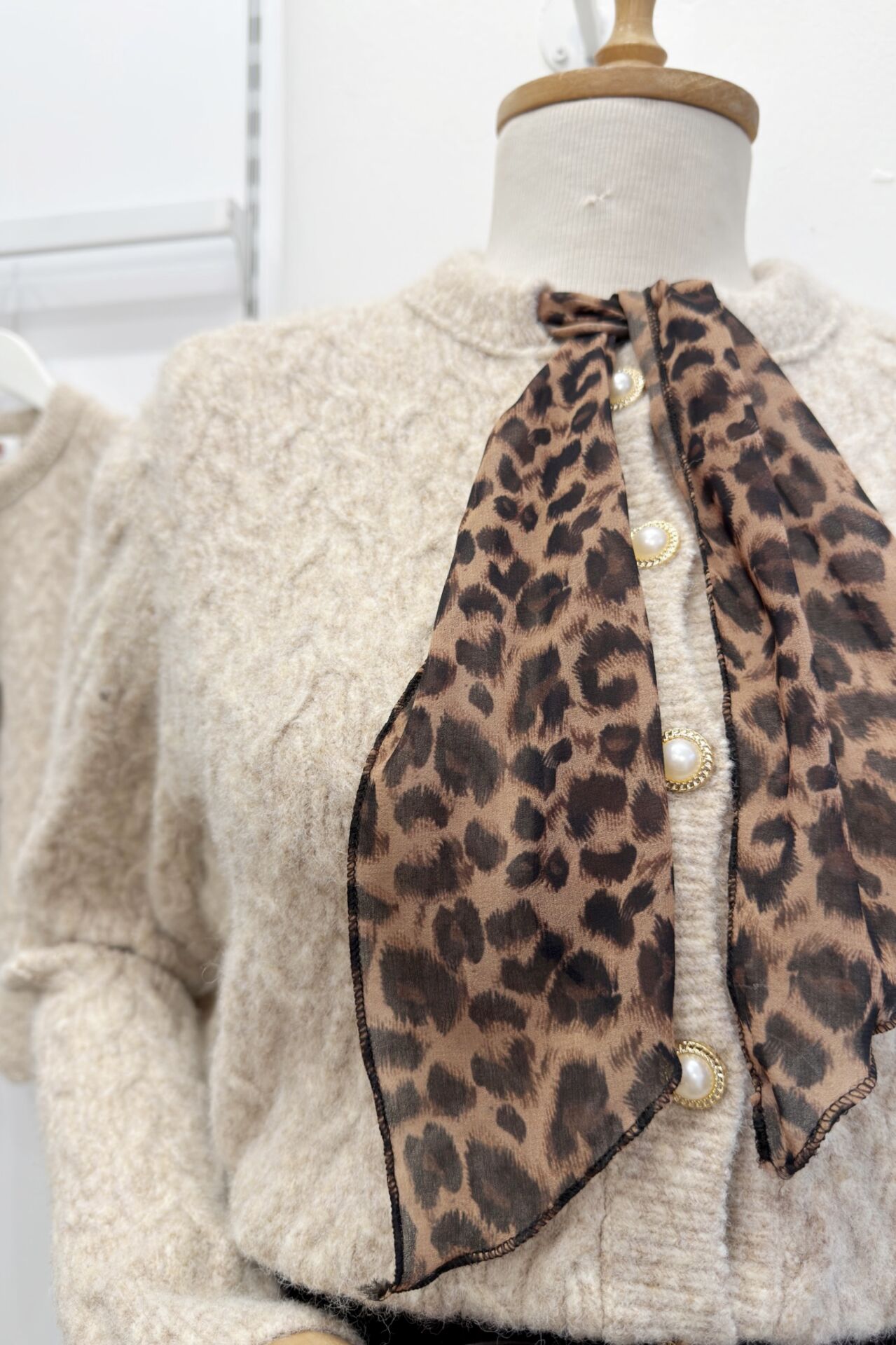 Leopar Fularlı İnci Düğmeli Krem Hırka