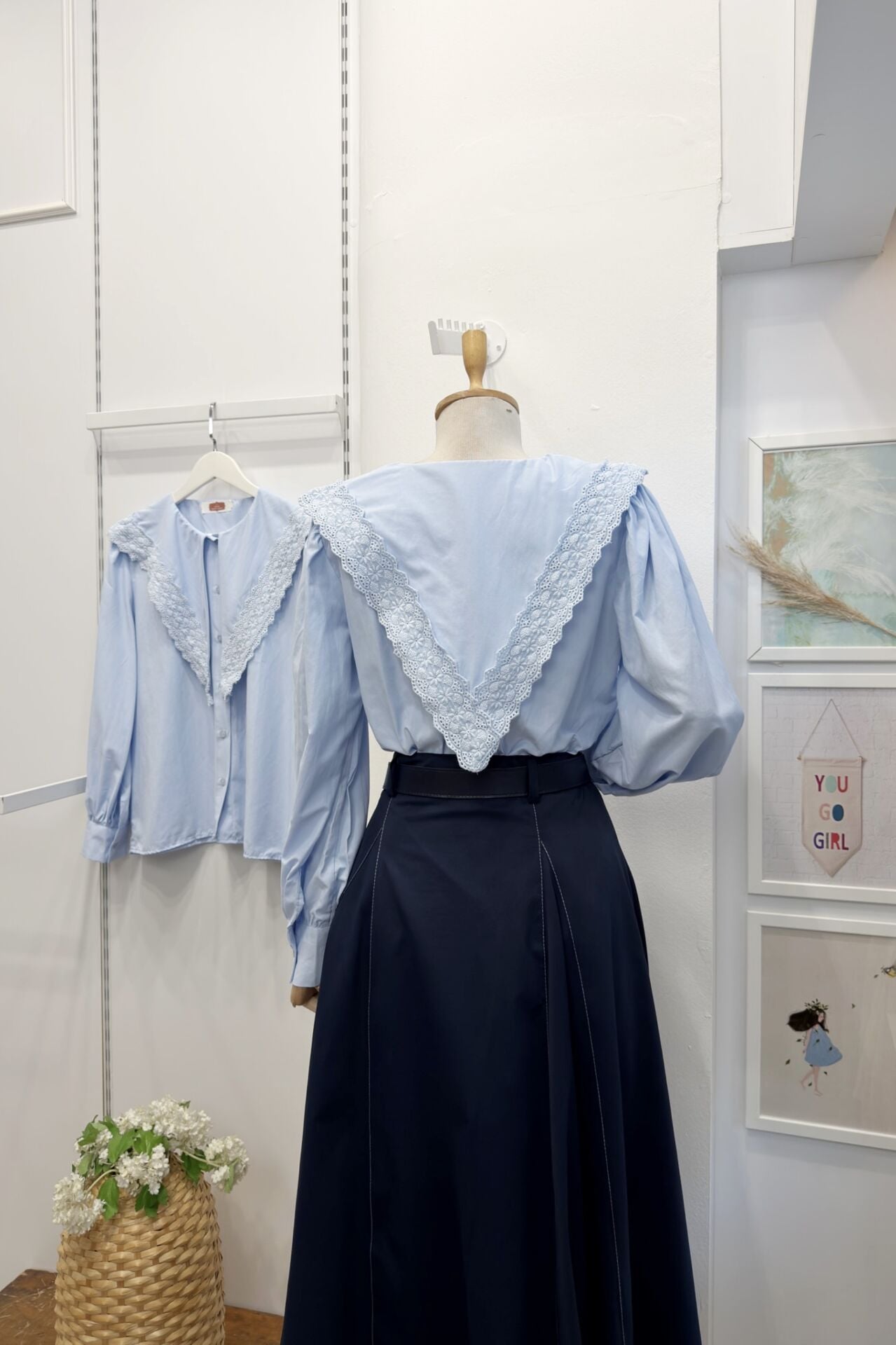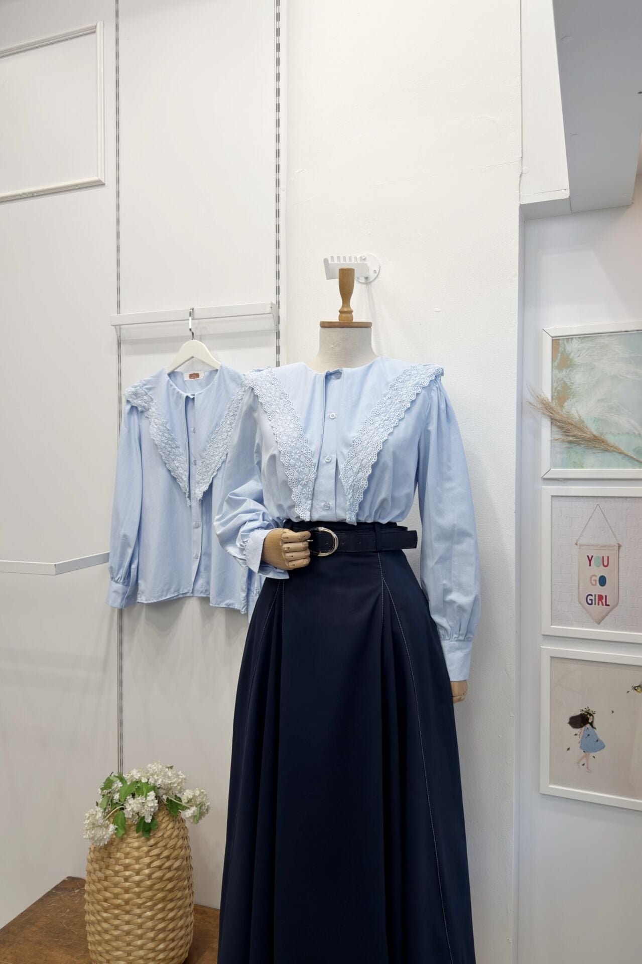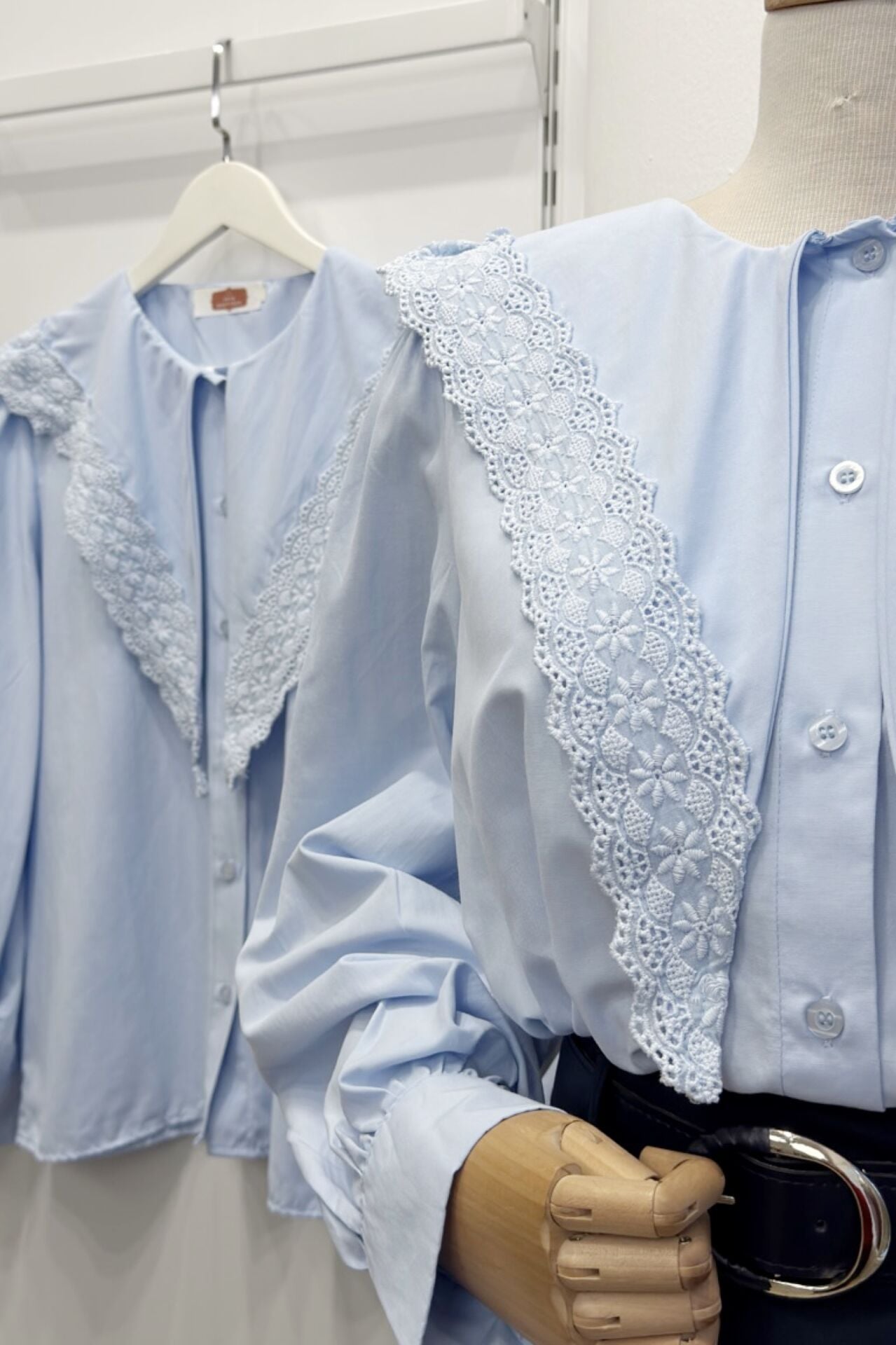 Mavi Fisto Detaylı Şal Yaka Gömlek