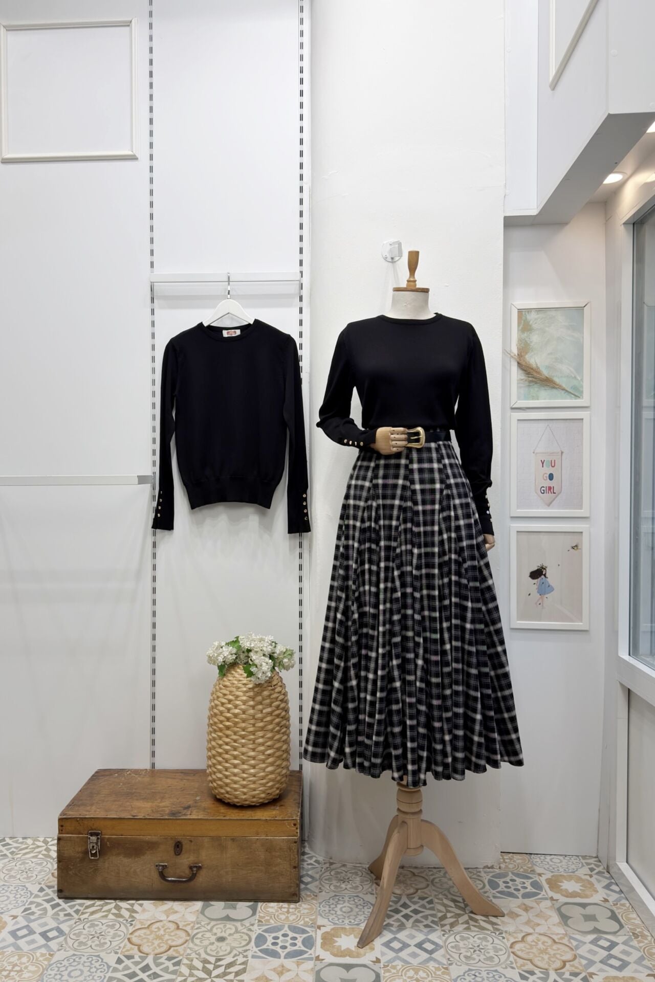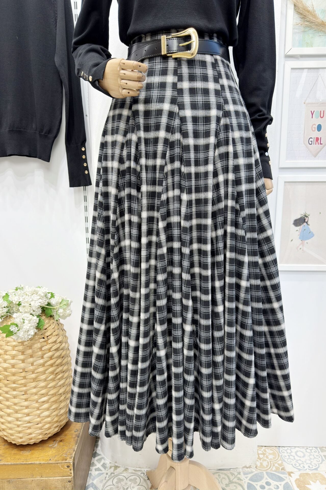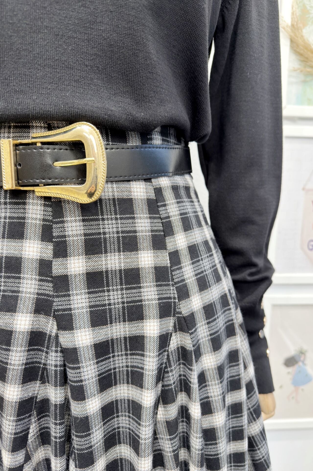 Minik Ekoseli Siyah Deri Kemerli Ekoseli Grazia Etek No 77