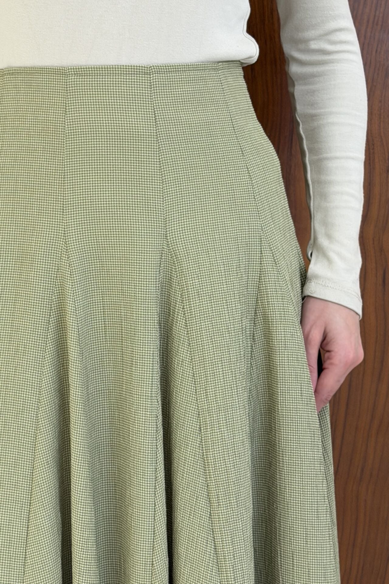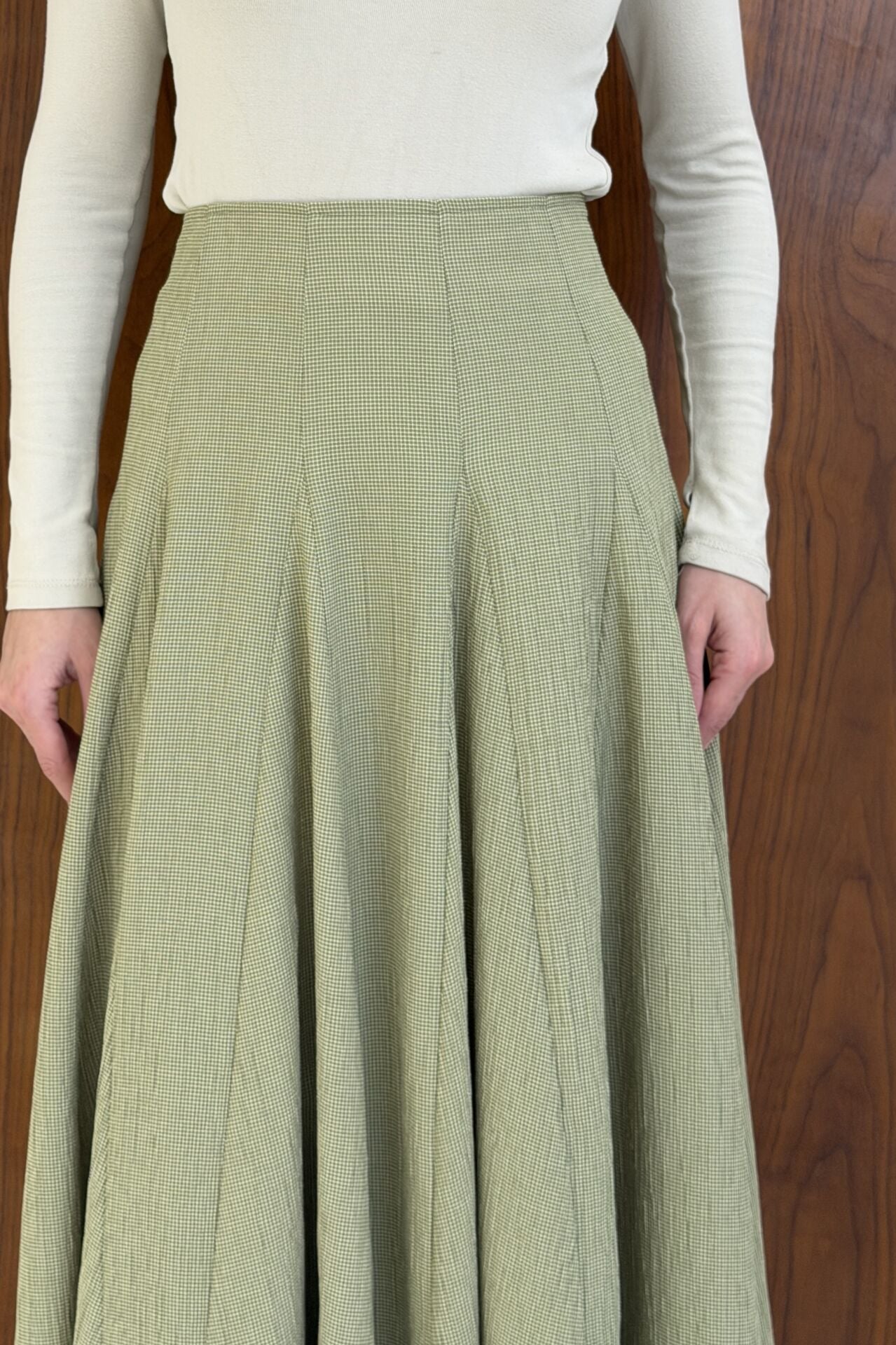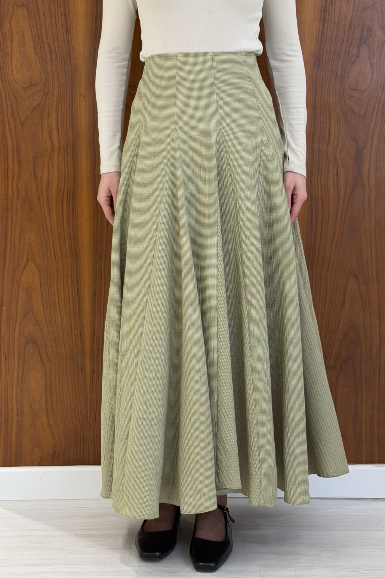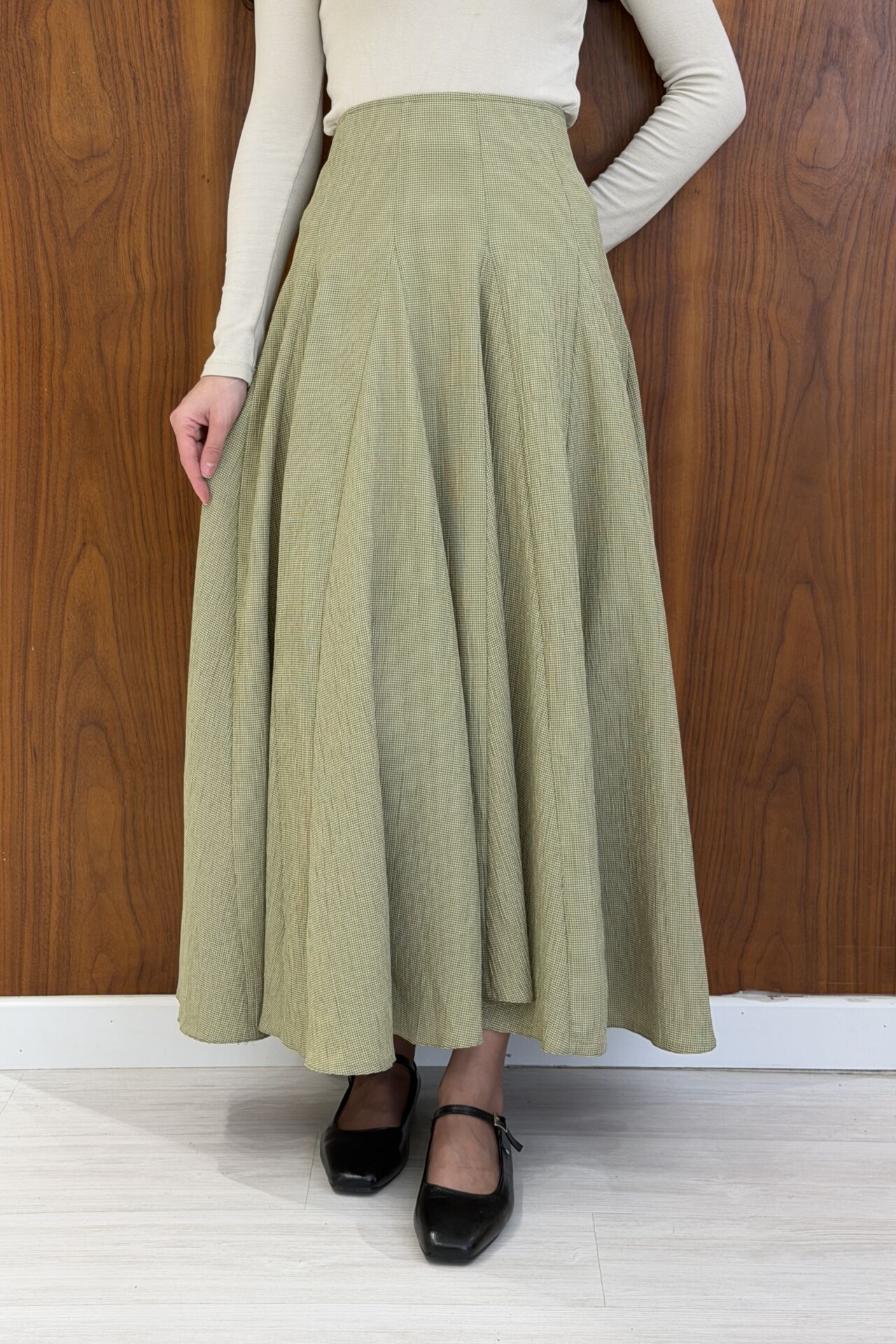 Minik Ekoseli Yeşil Vual Keten Etek