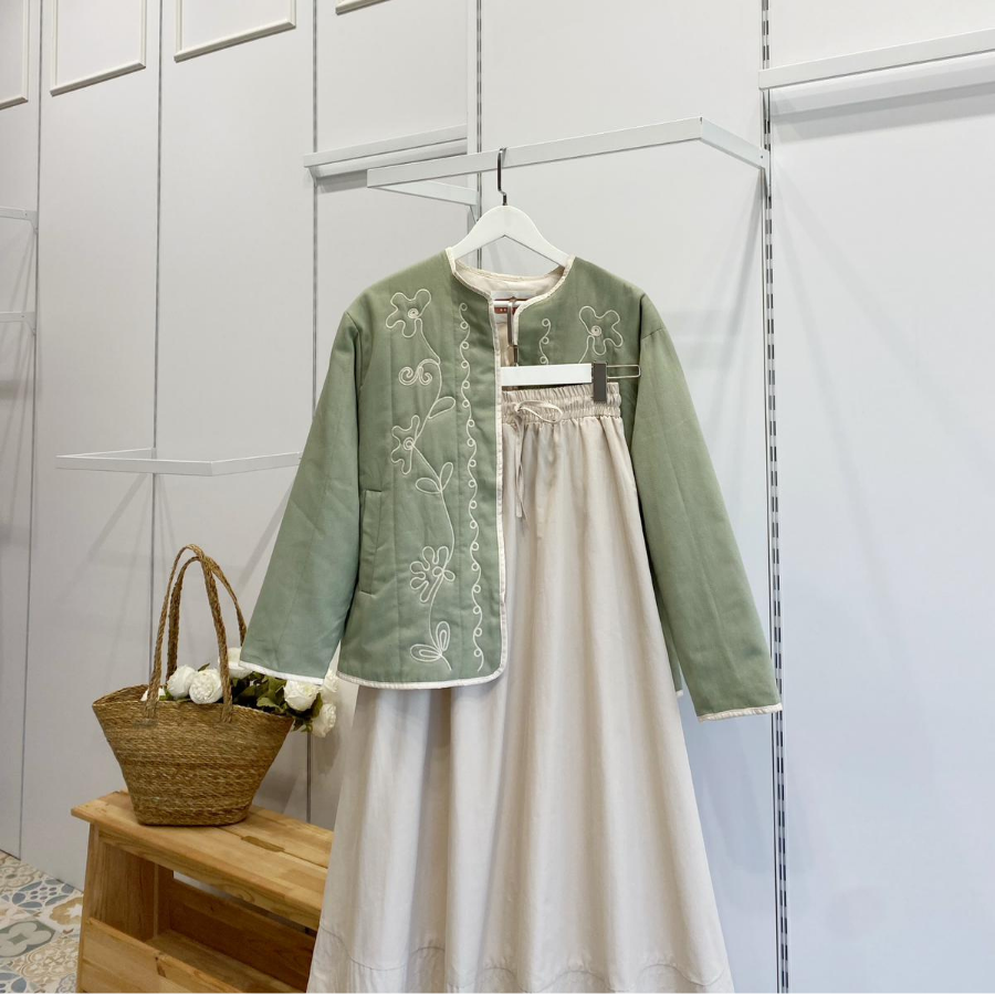 Mint Yeşili Nakışlı Florina Ceket
