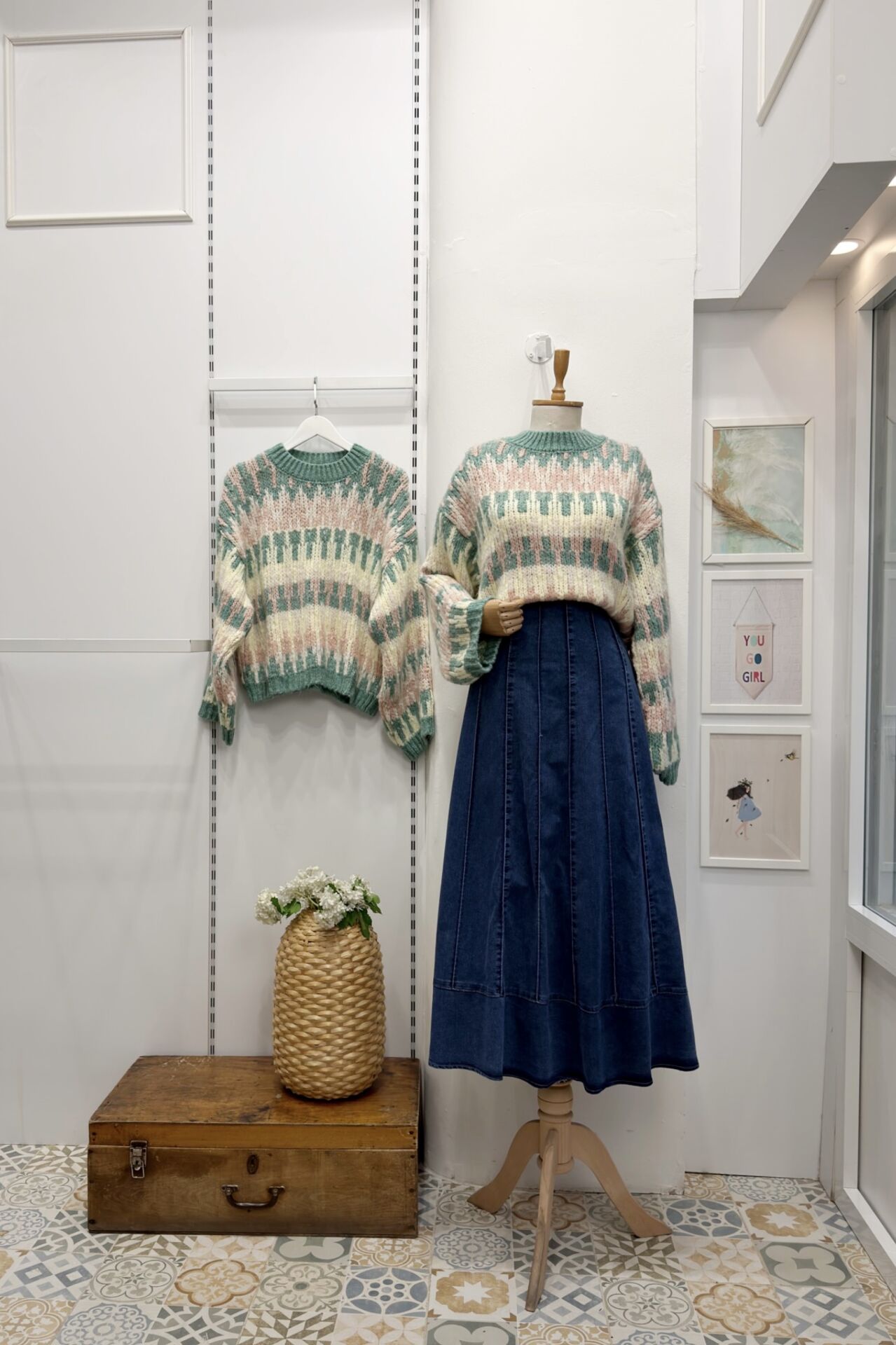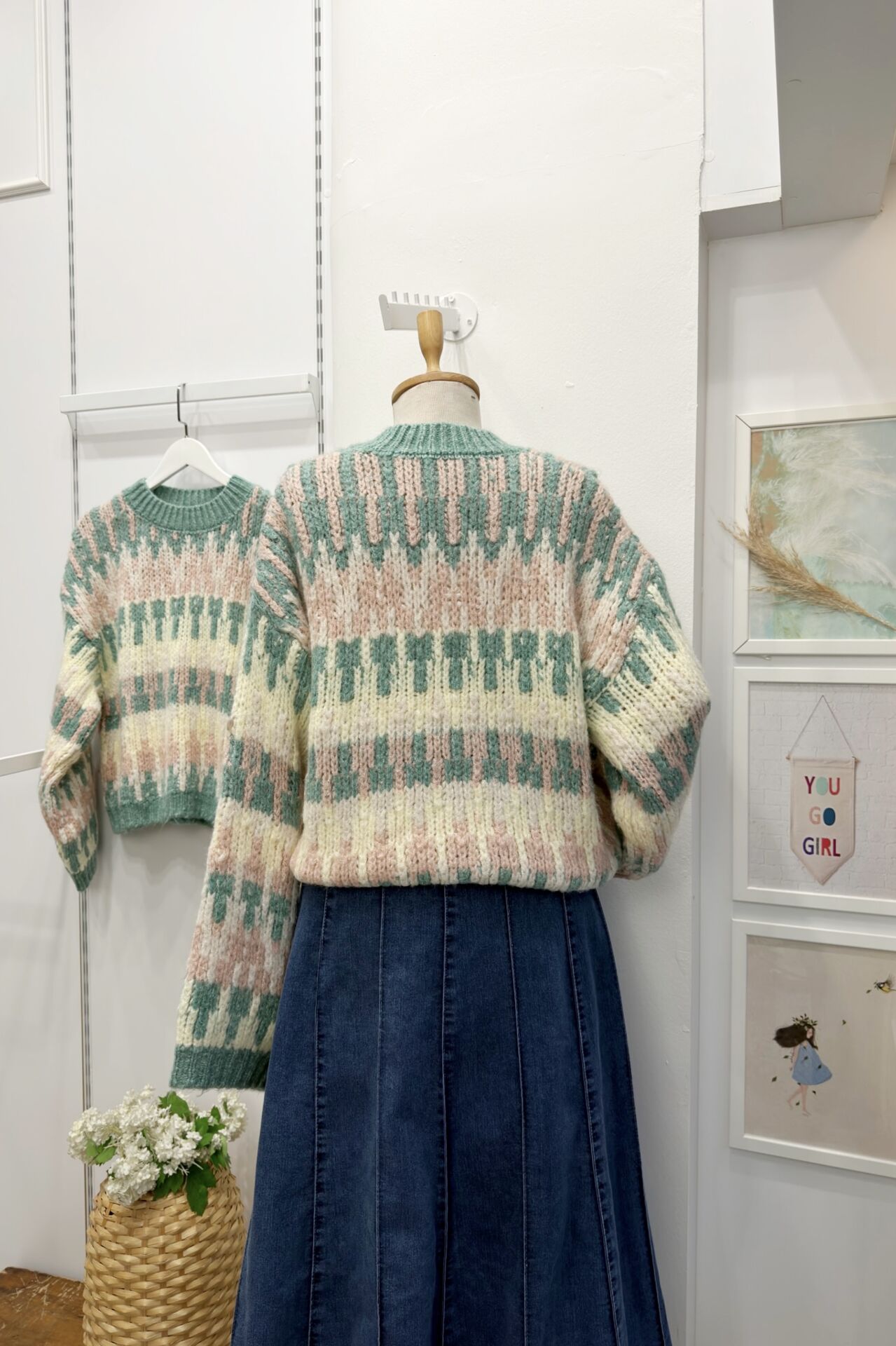 Mint Yeşili Pembe Alaca Desenli Sable Kazak