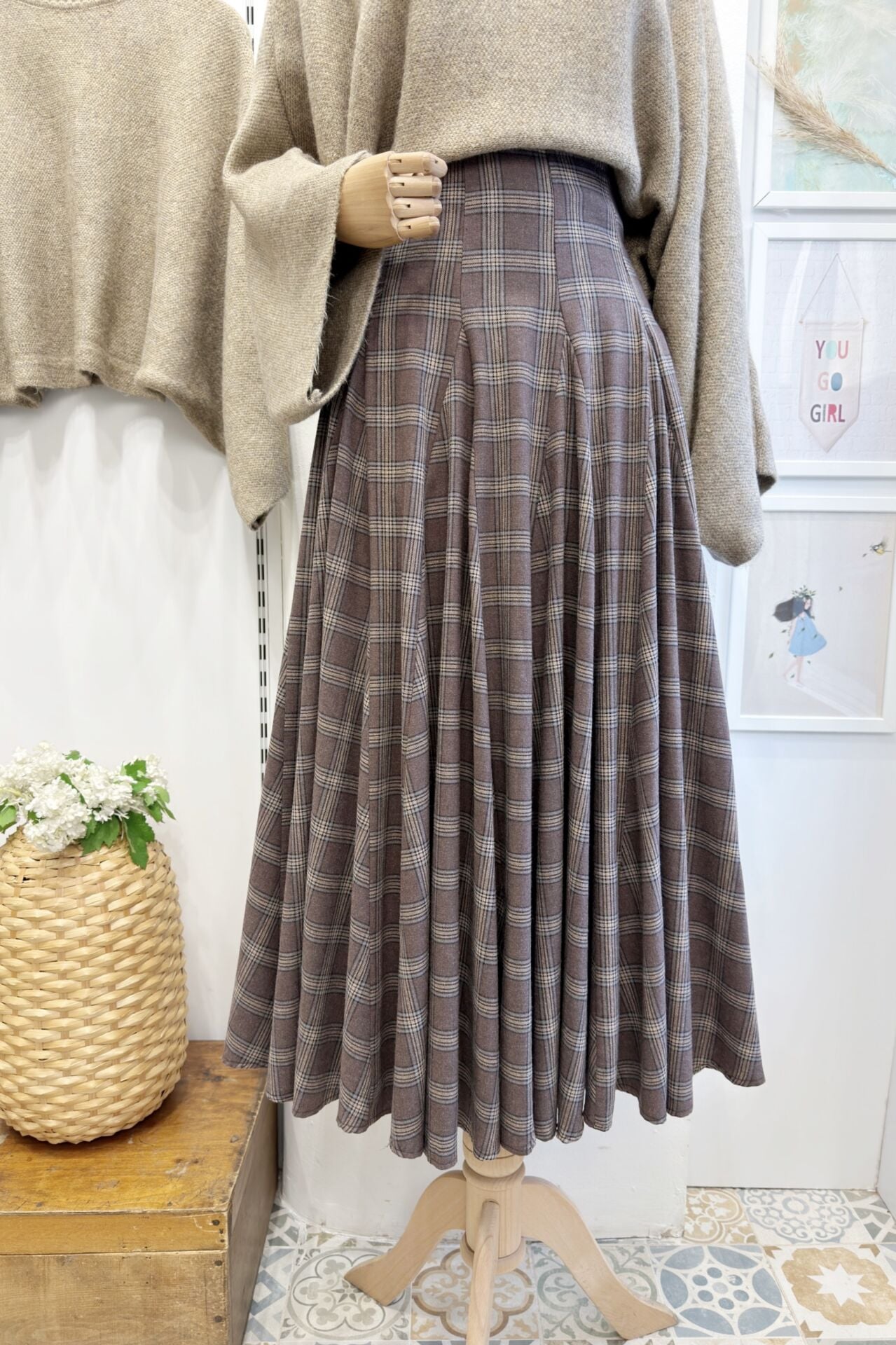 Moka Kahverengi Ekoseli Melodie Etek
