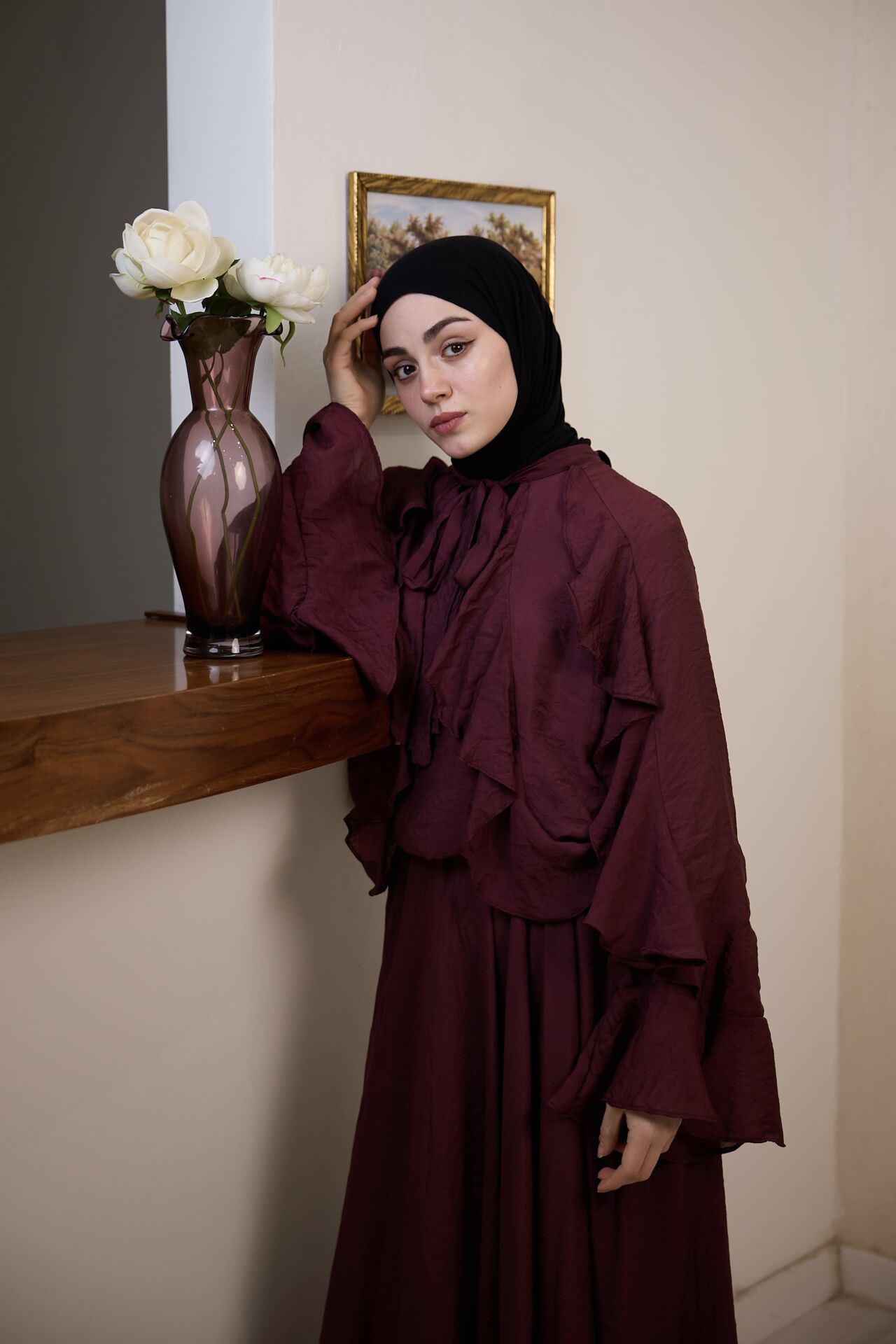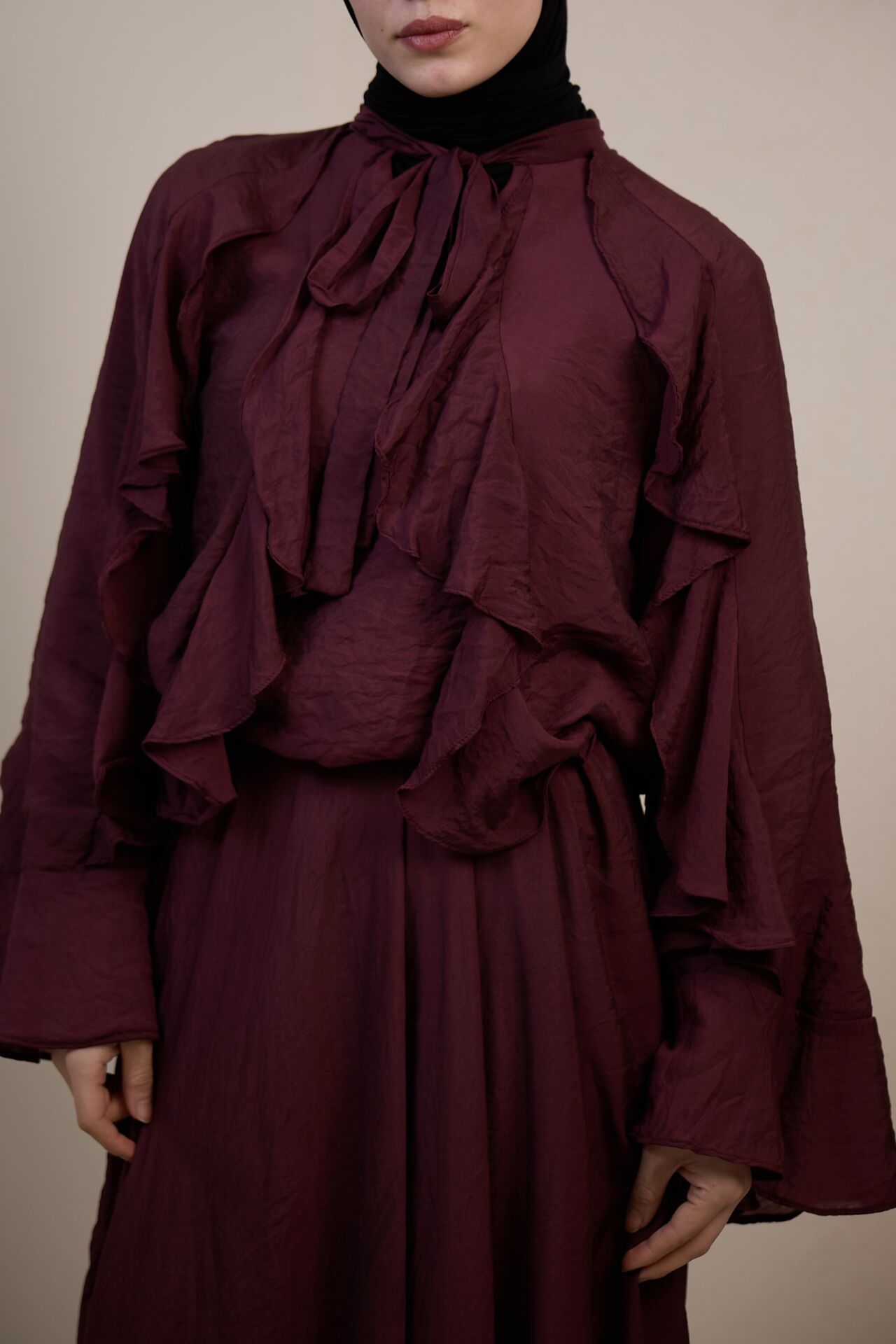 Mürdüm İspanyol Kol Mimosa Şifon Takım