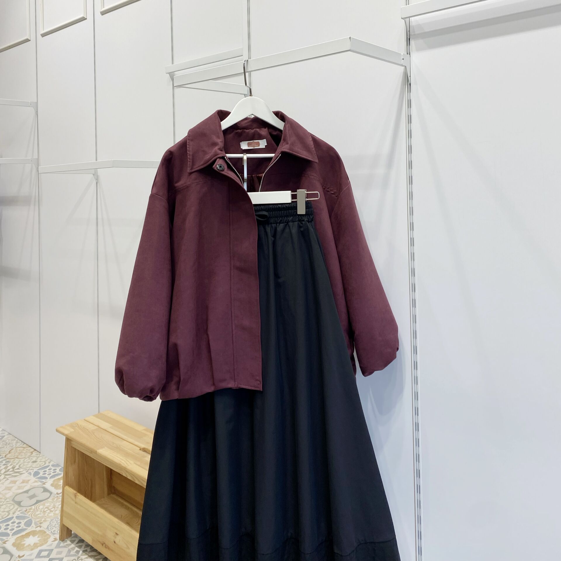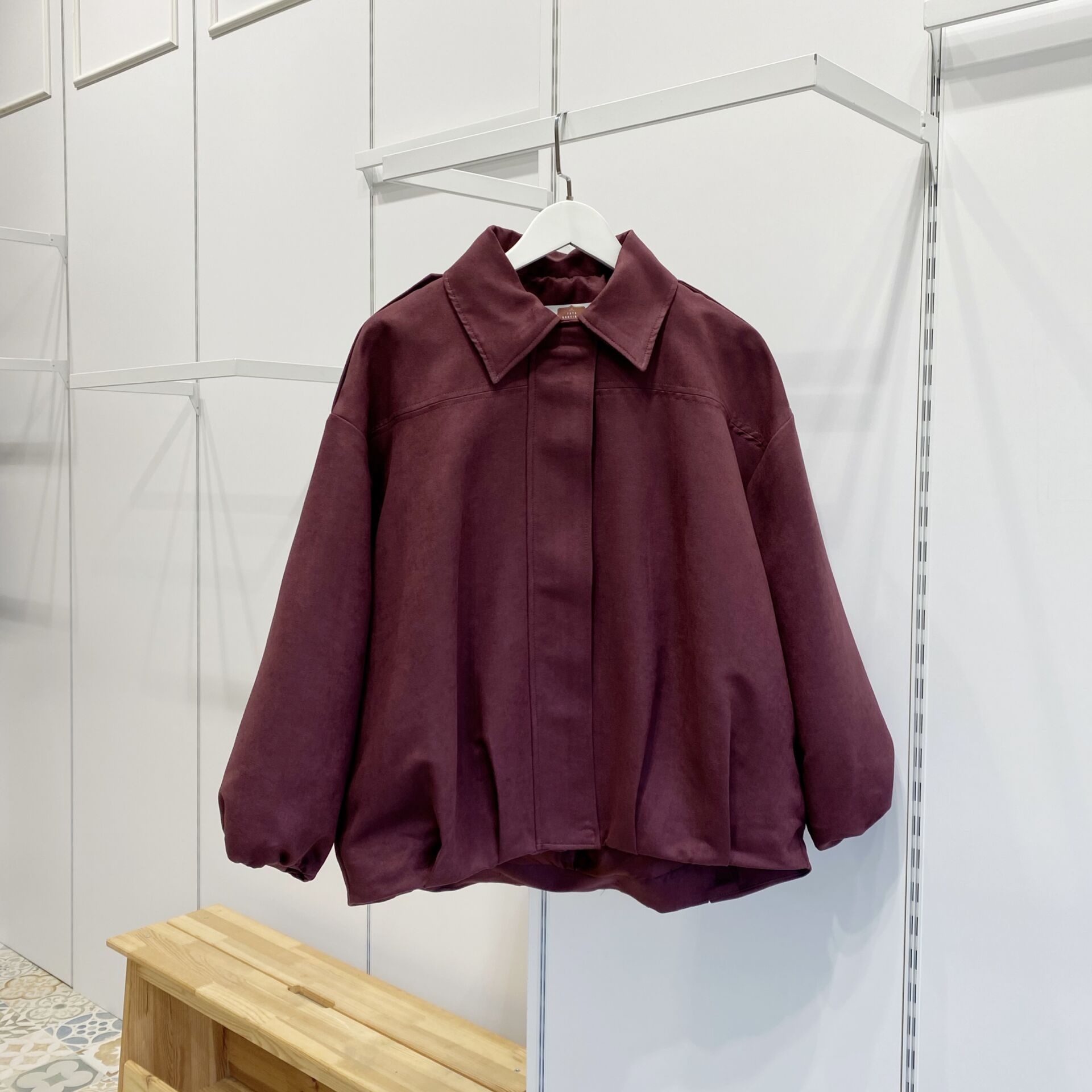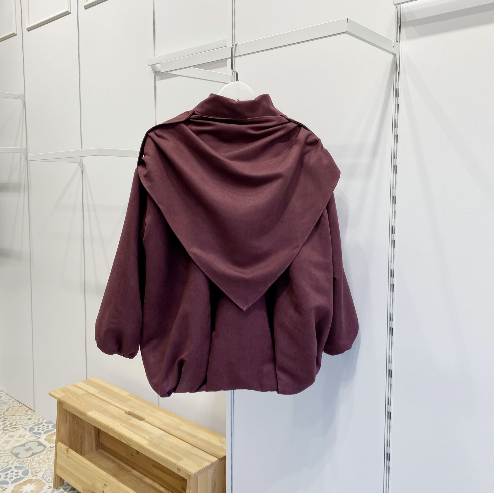 Mürdüm Fular Detaylı Süet Bomber Ceket