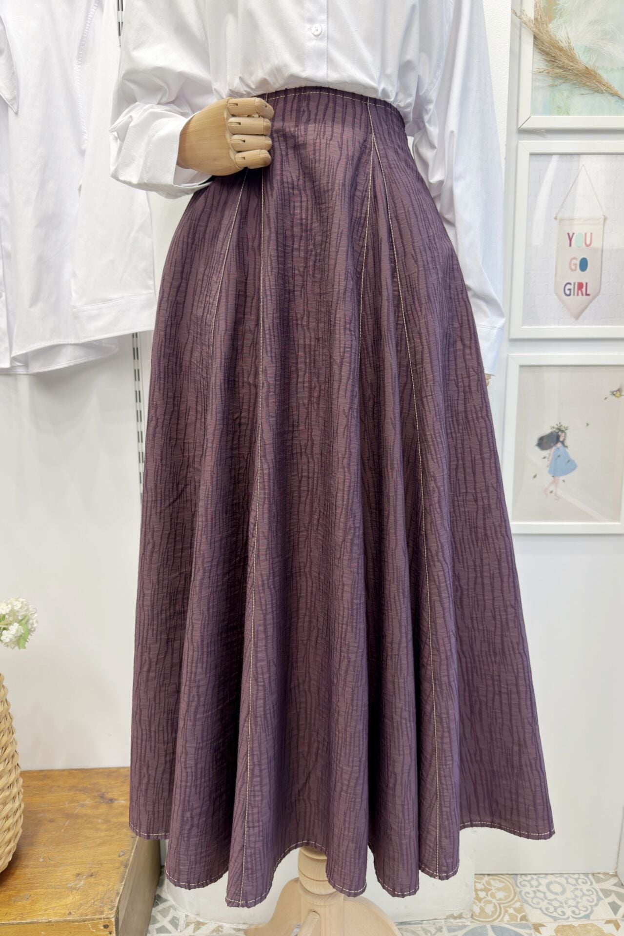 Mürdüm Yağmur Desenli Viskon Etek