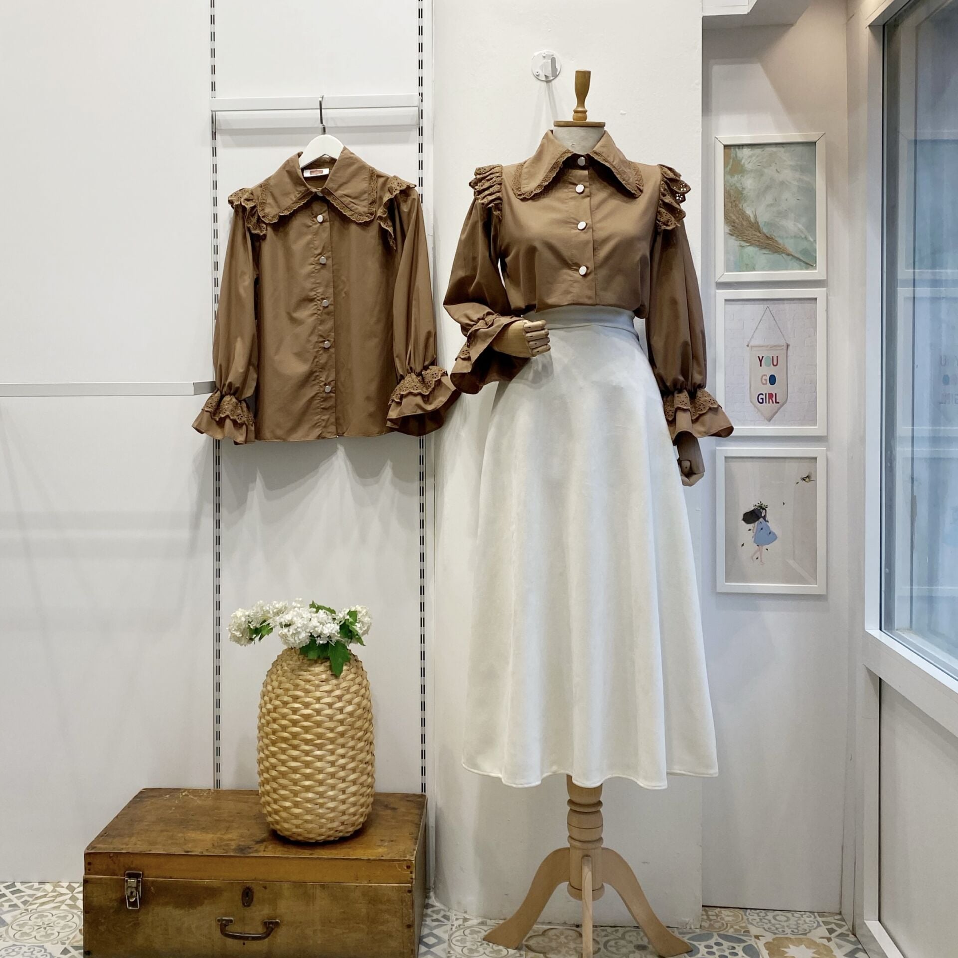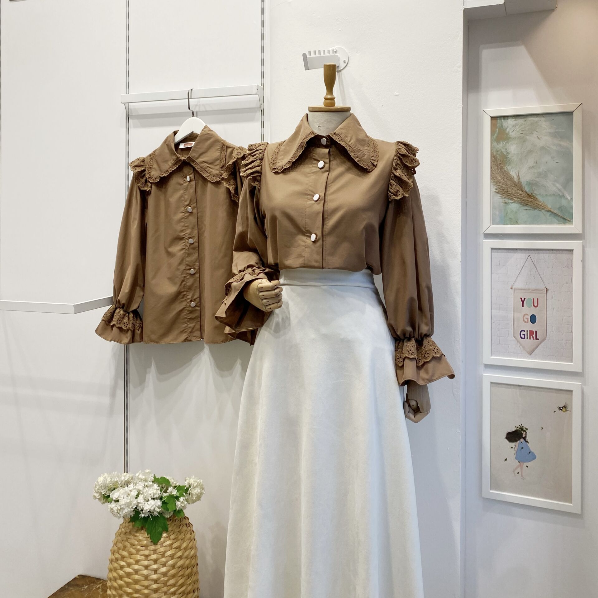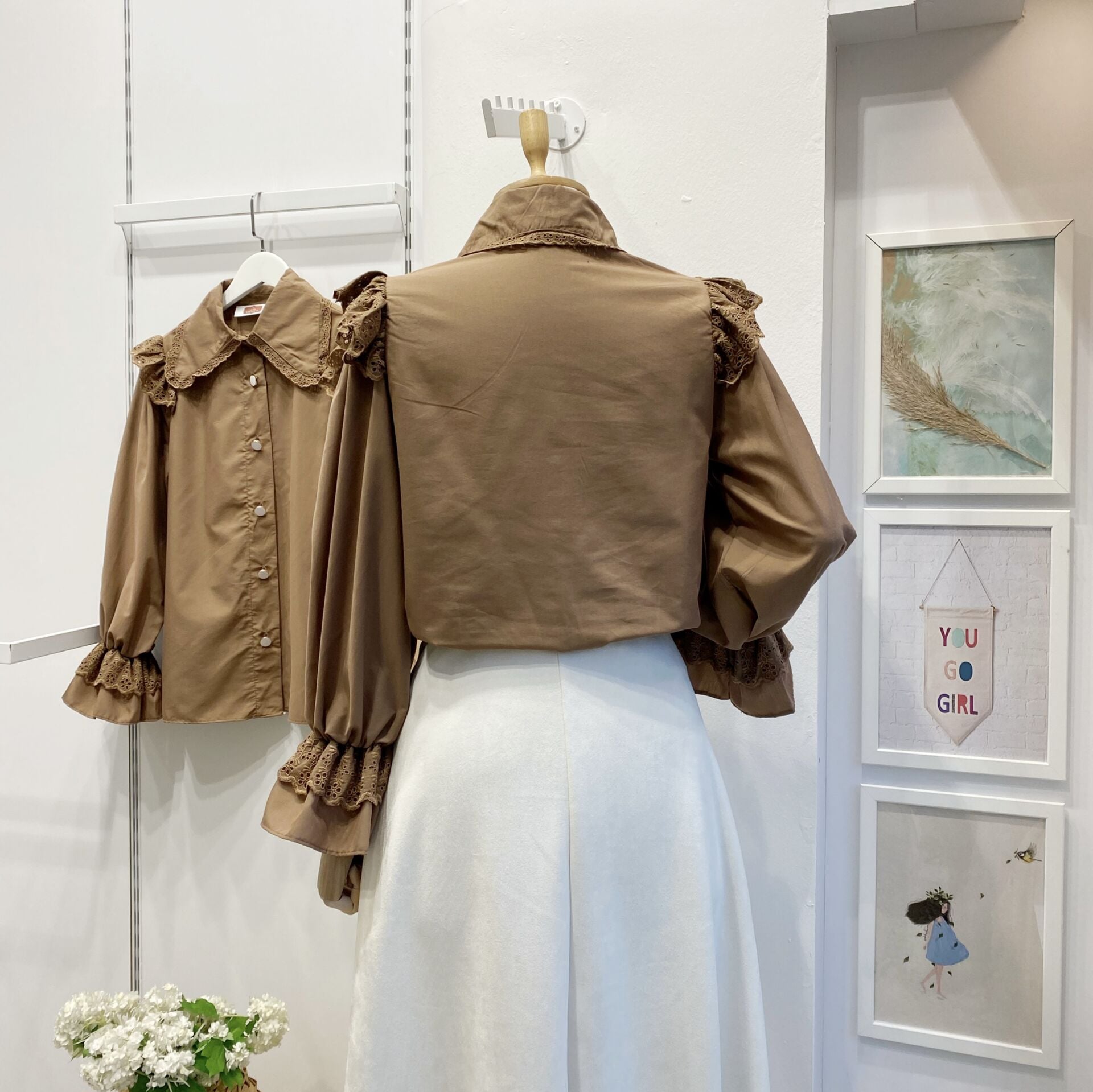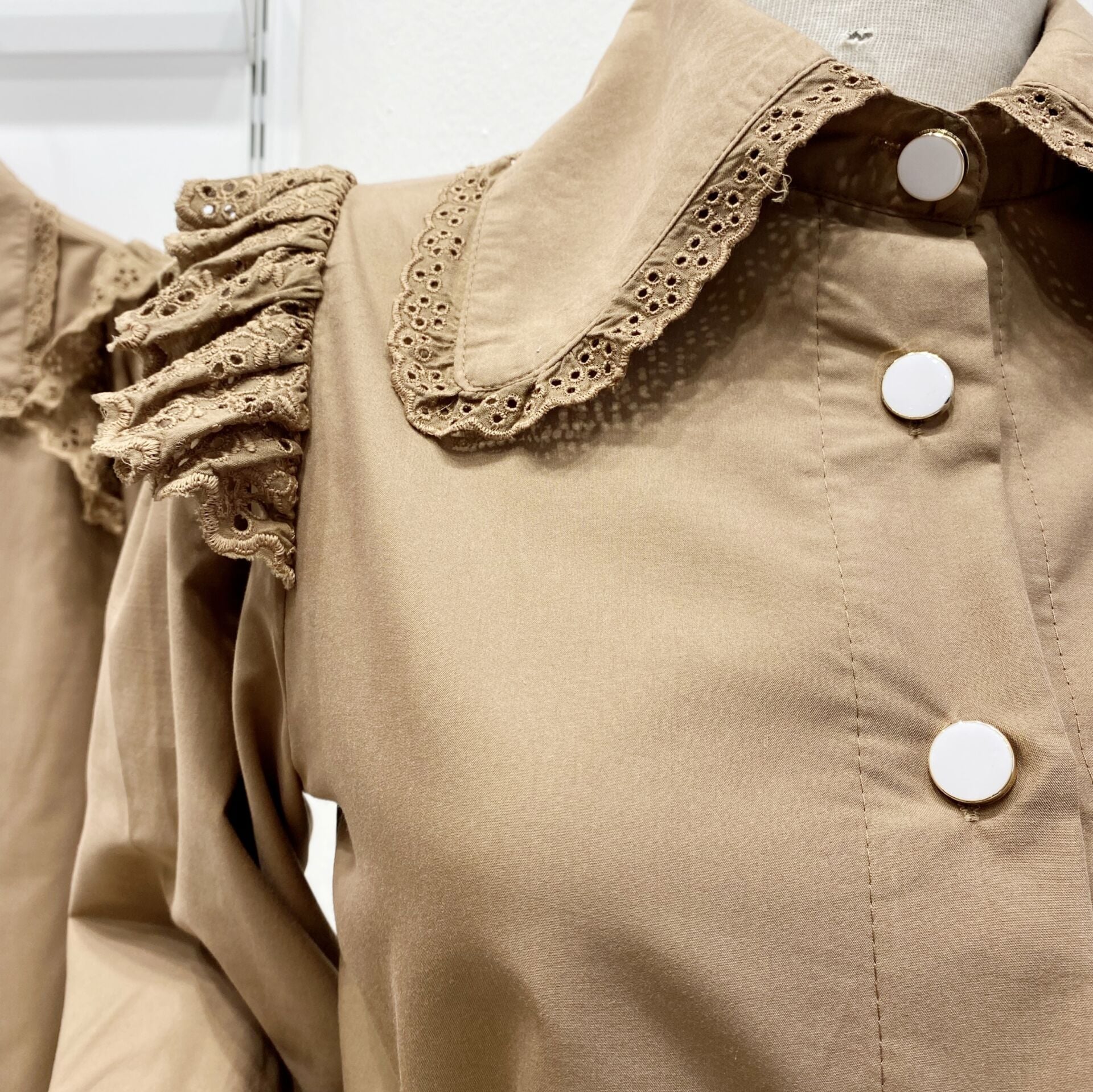 Omzu Fisto Volanlı Kahverengi Gömlek