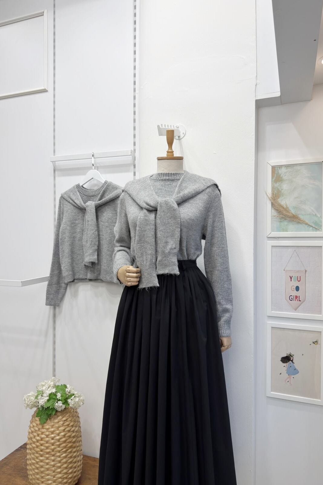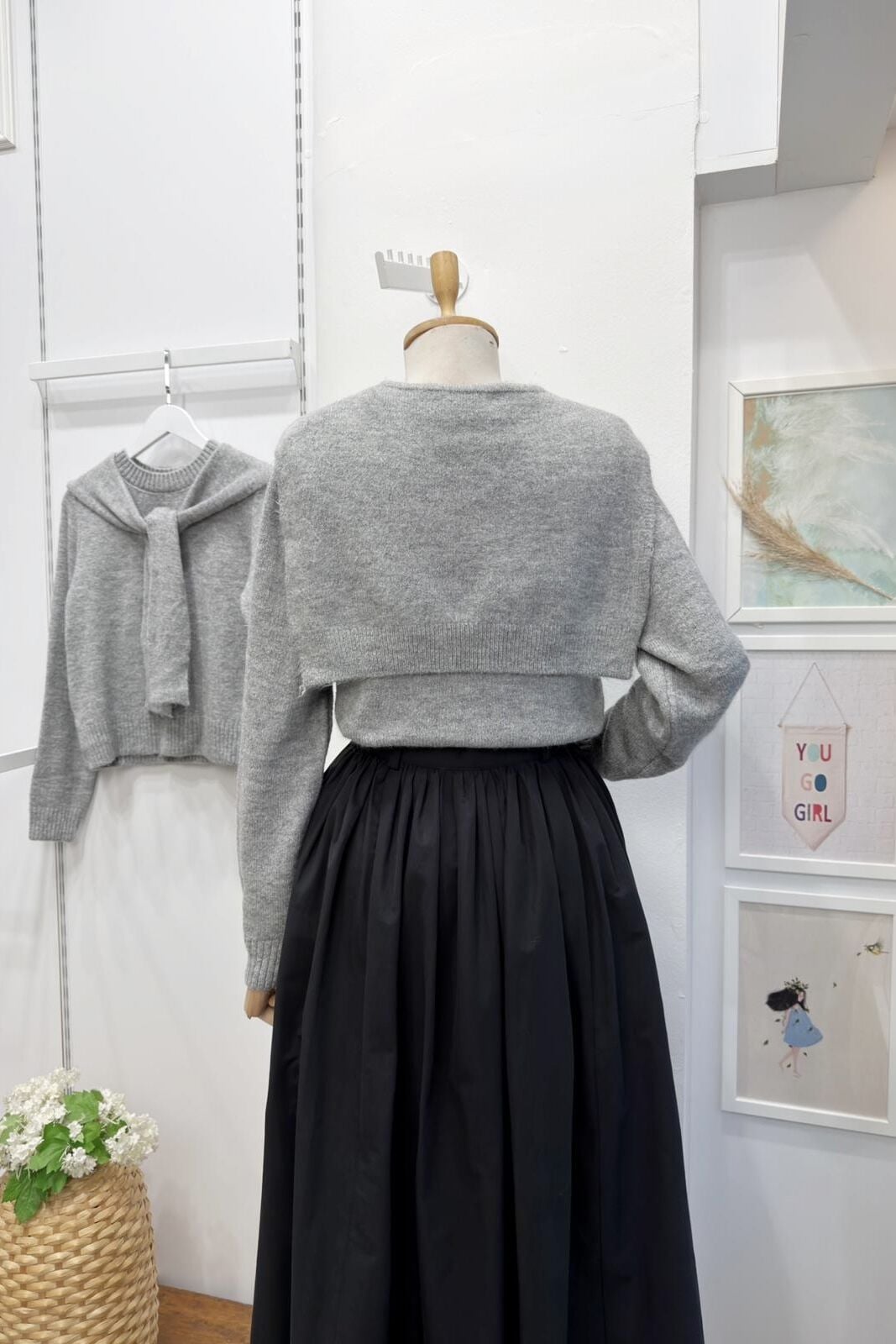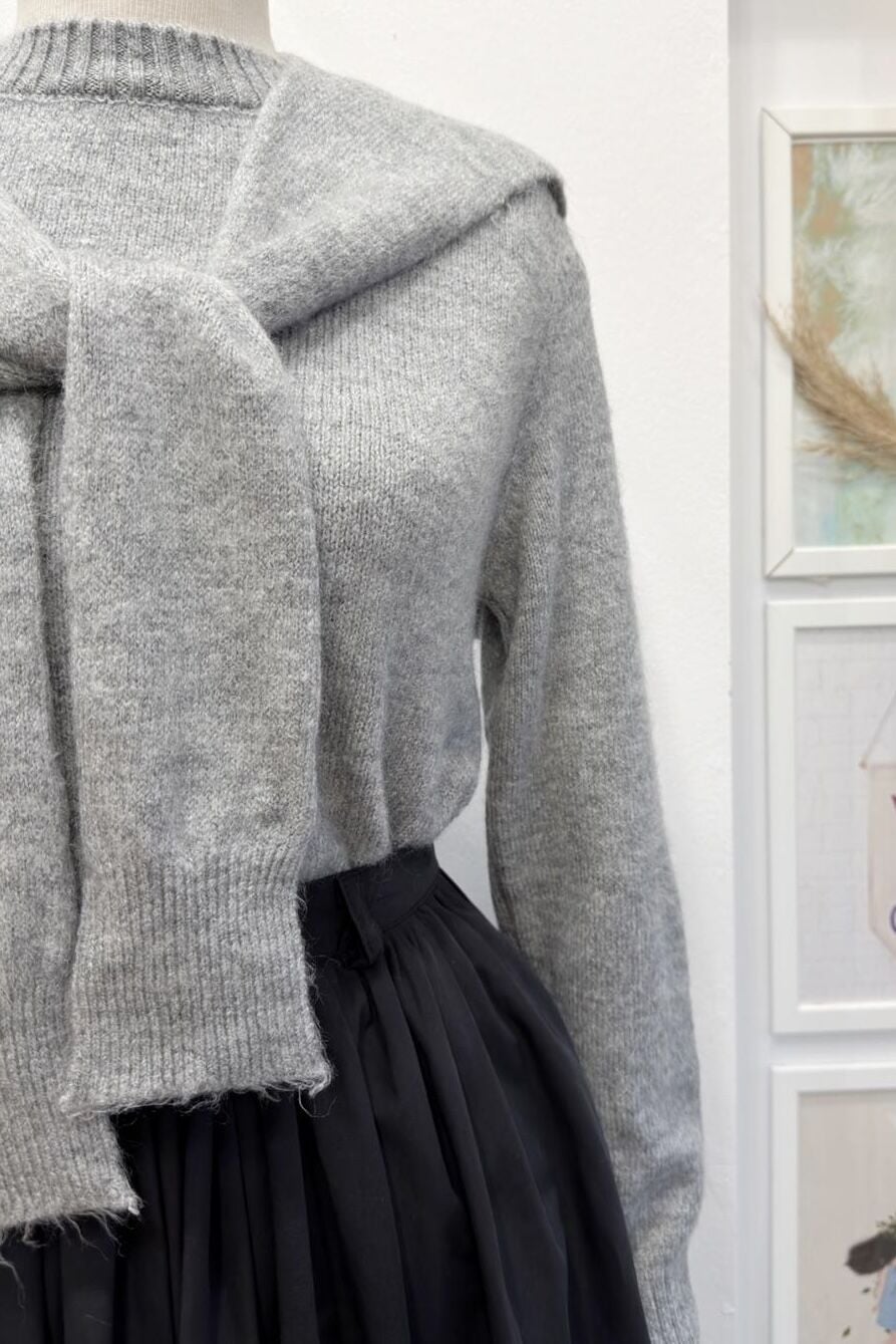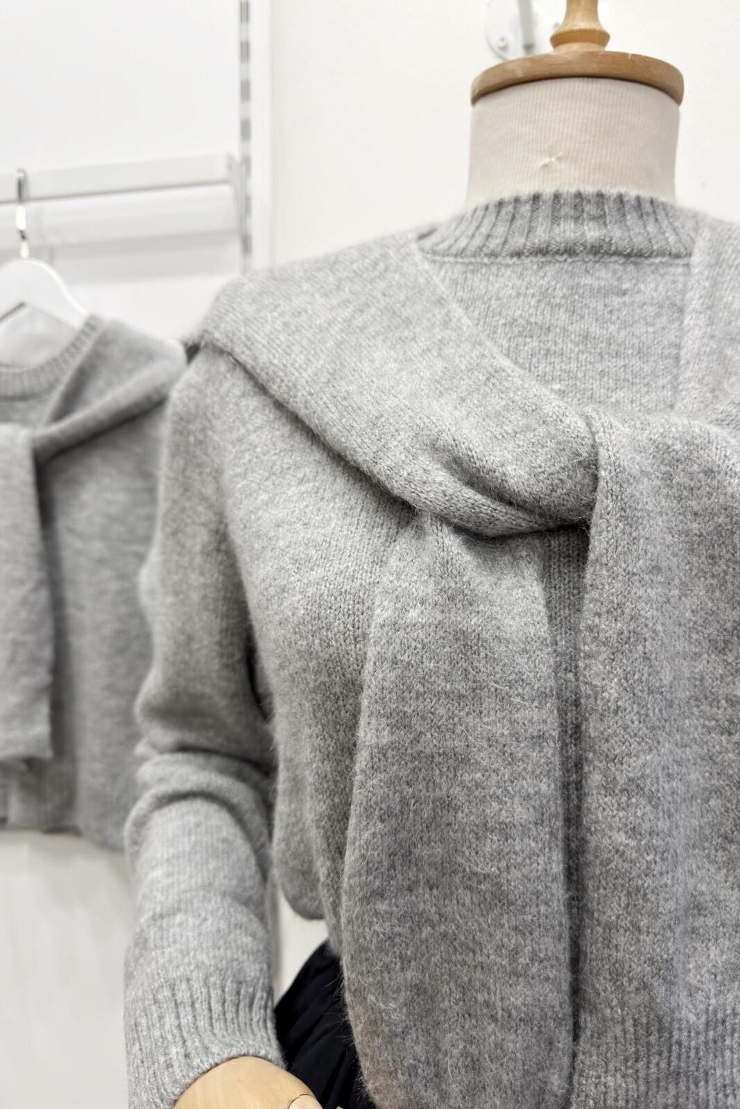 Omzu Şal Detaylı Gri Yumuşak Dokulu Kazak