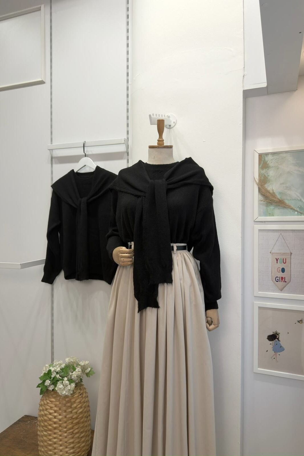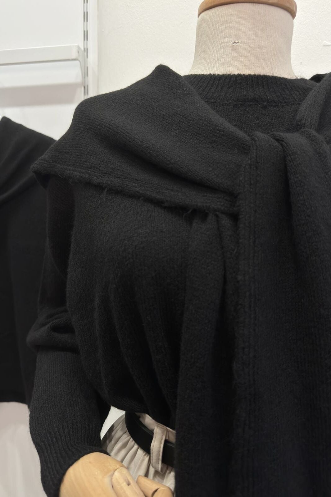Omzu Şal Detaylı Siyah Yumuşak Dokulu Kazak