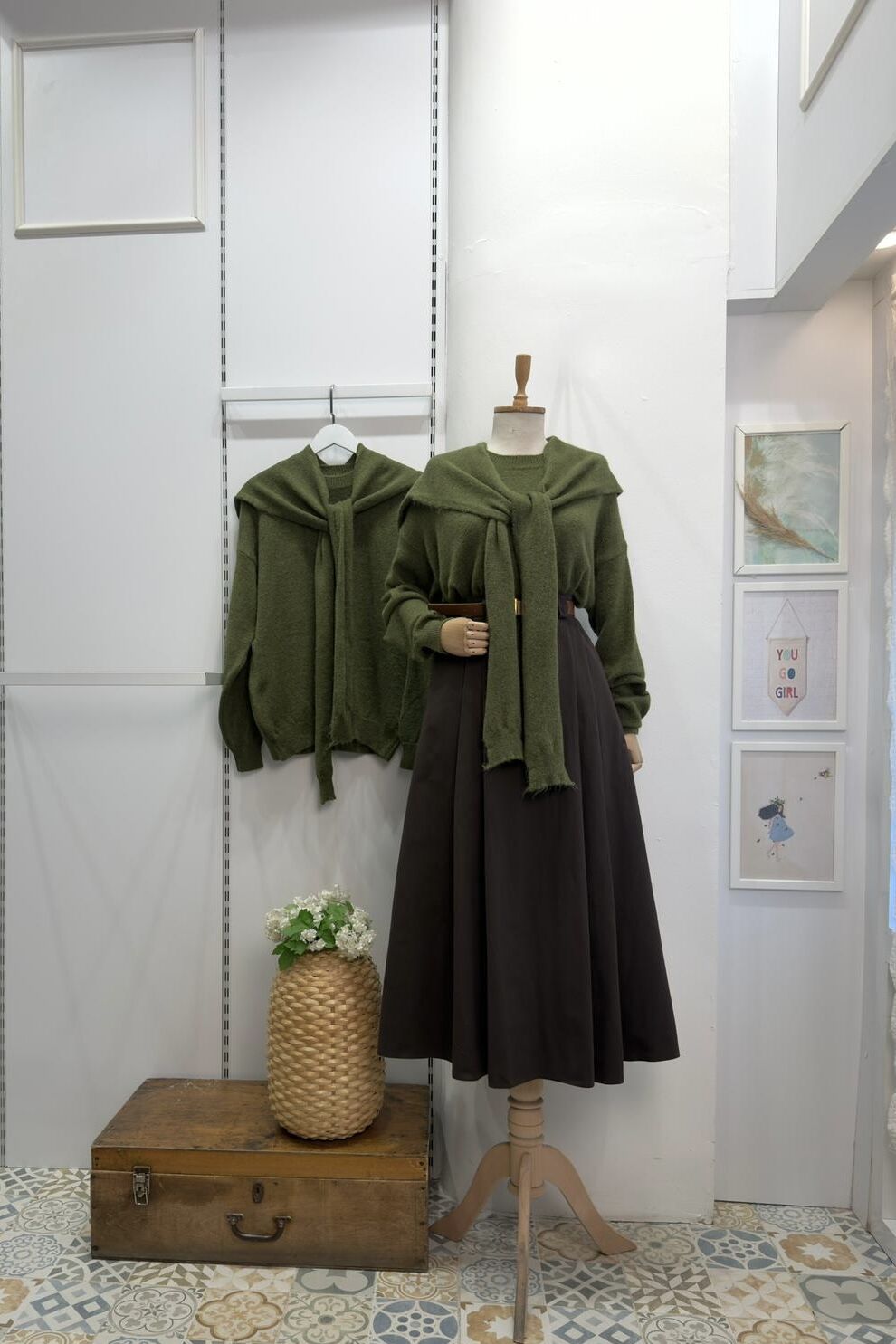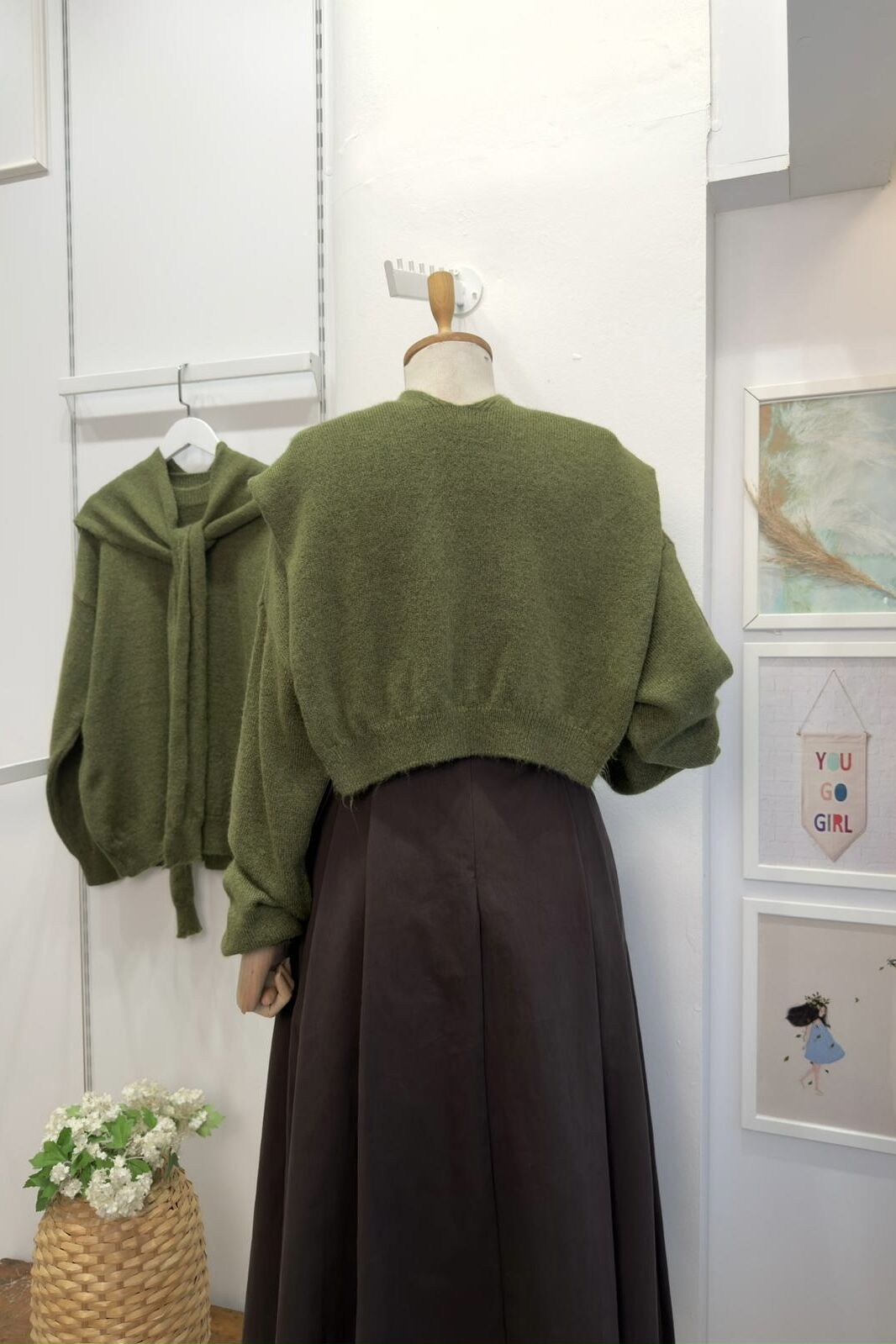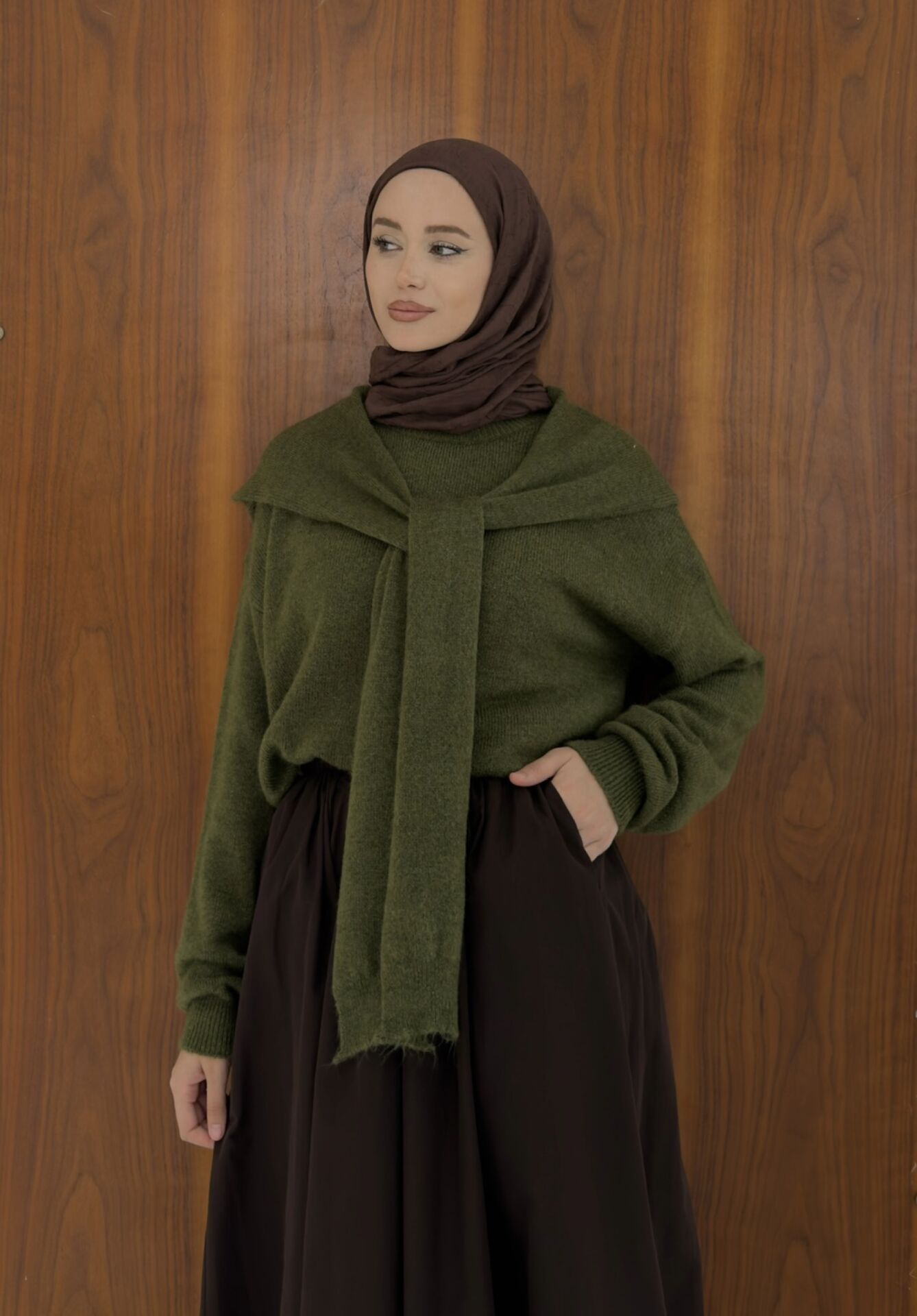 Omzu Şal Detaylı Yeşil Yumuşak Dokulu Kazak