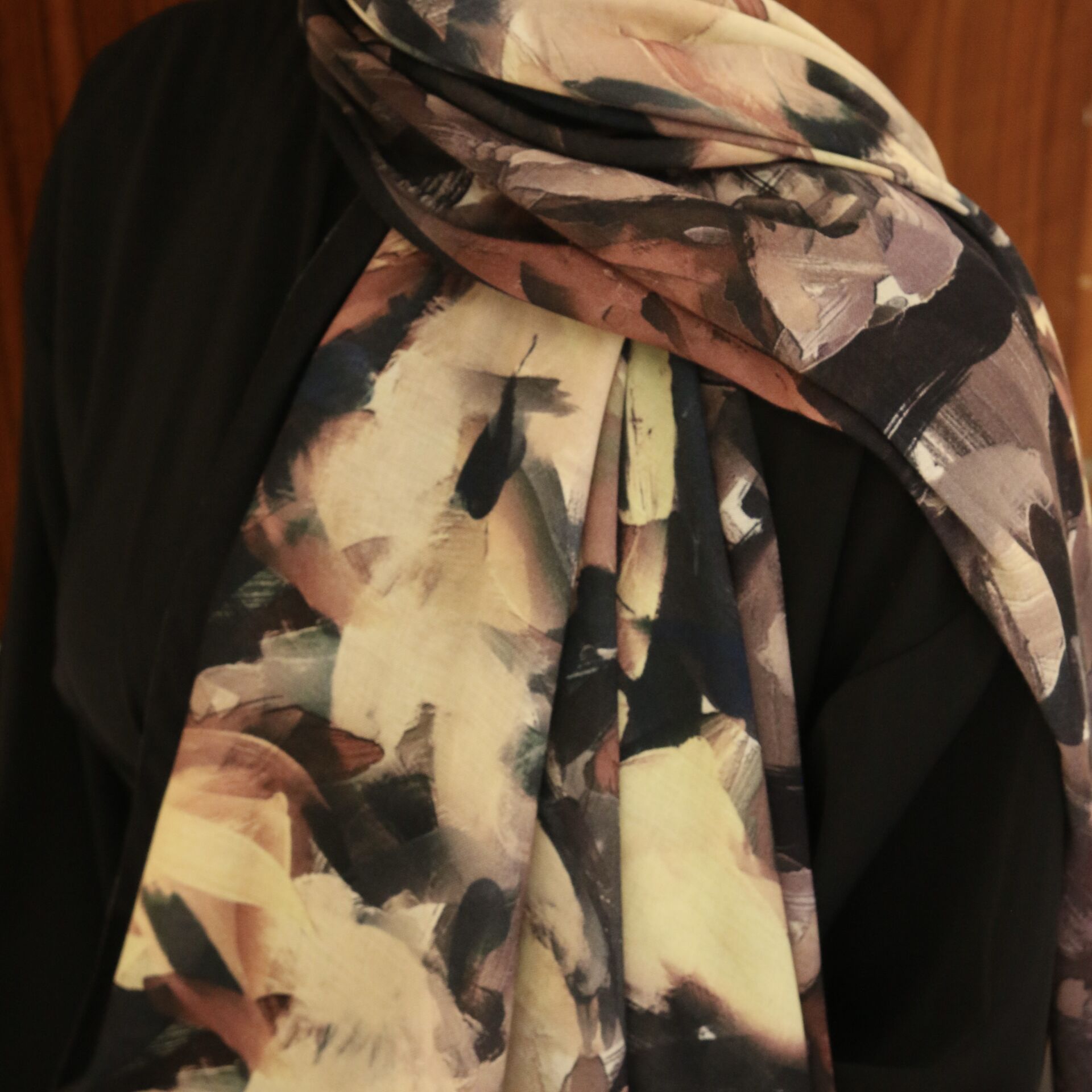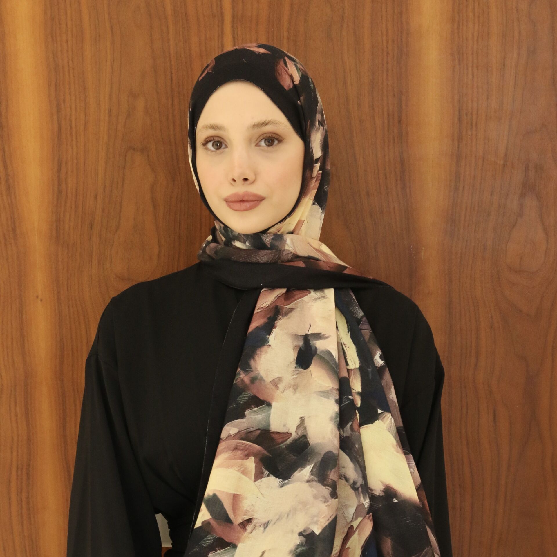 Pastelle Renkli Siyah Desenli Şal