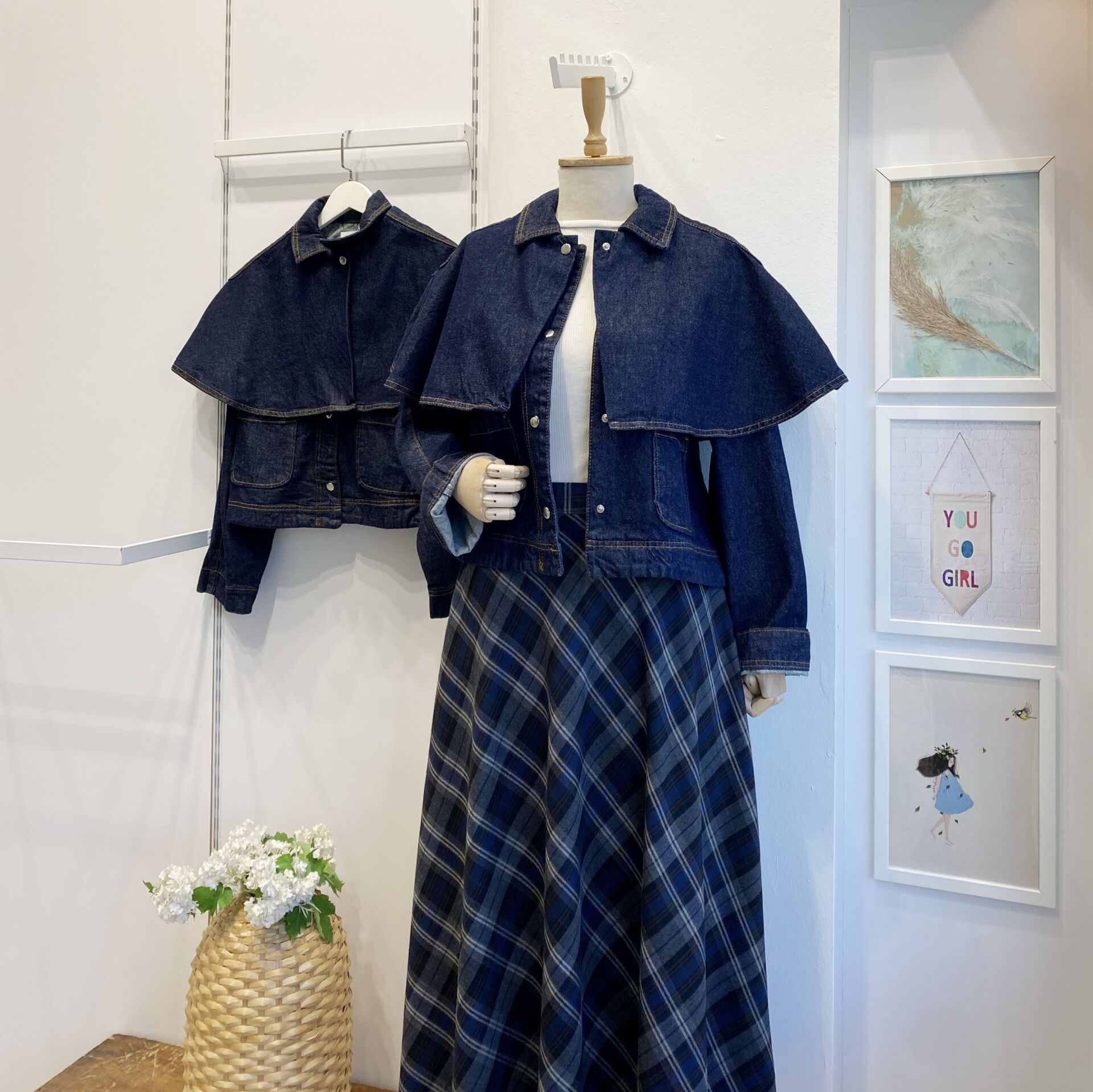 Pelerin Detaylı Kot Ceket