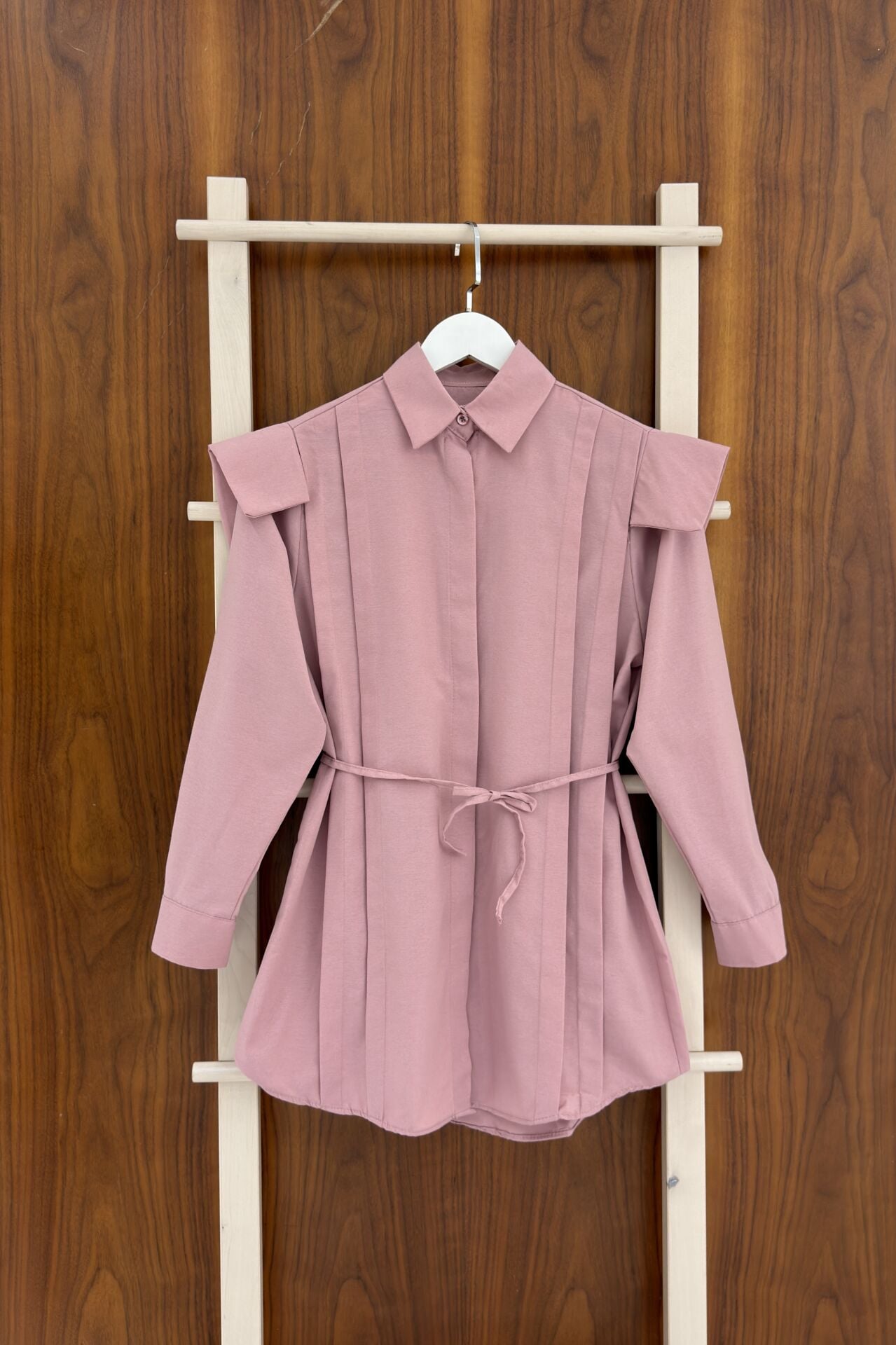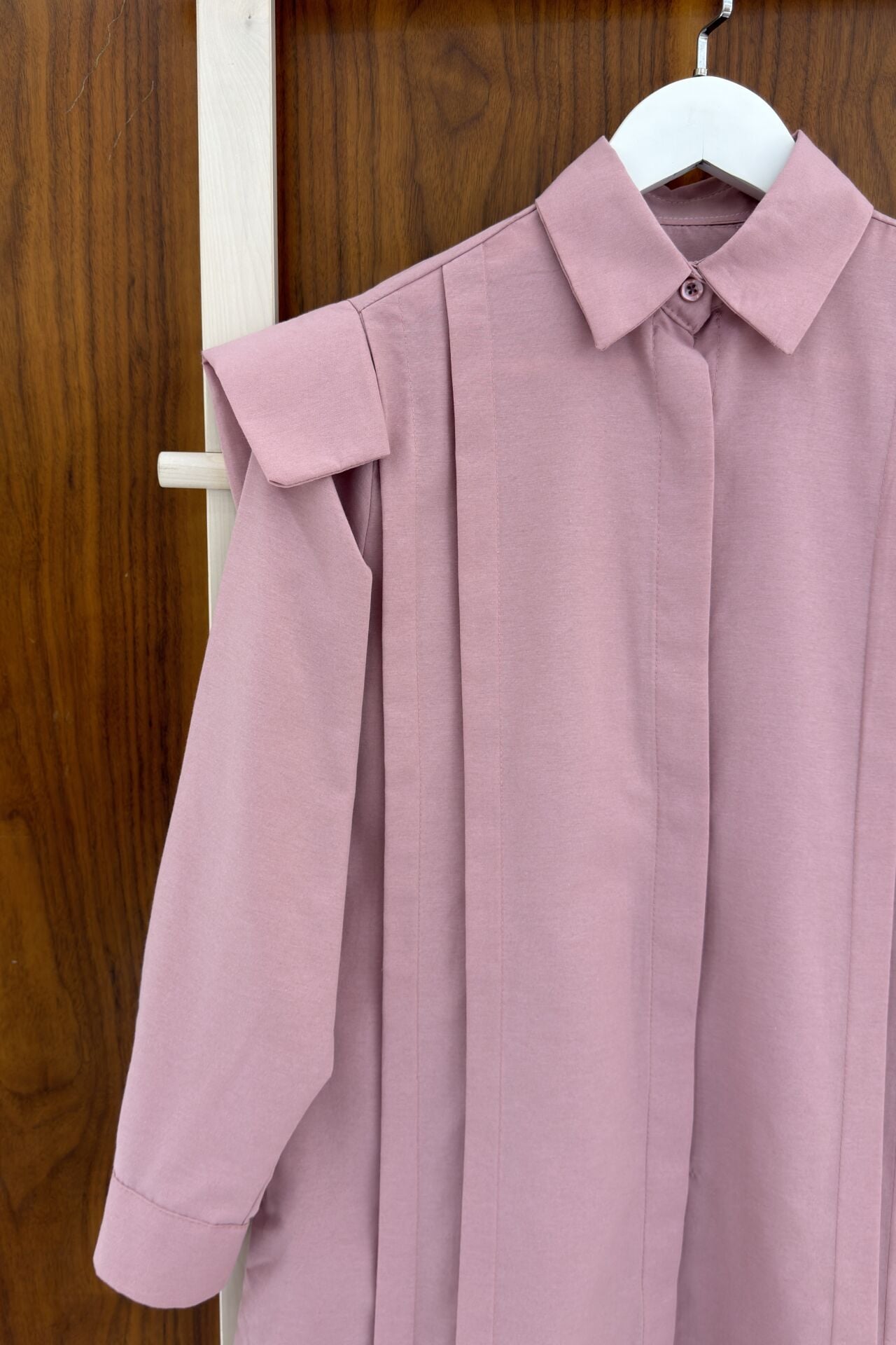 Pembe Vatka Görünümlü Poplin Gömlek