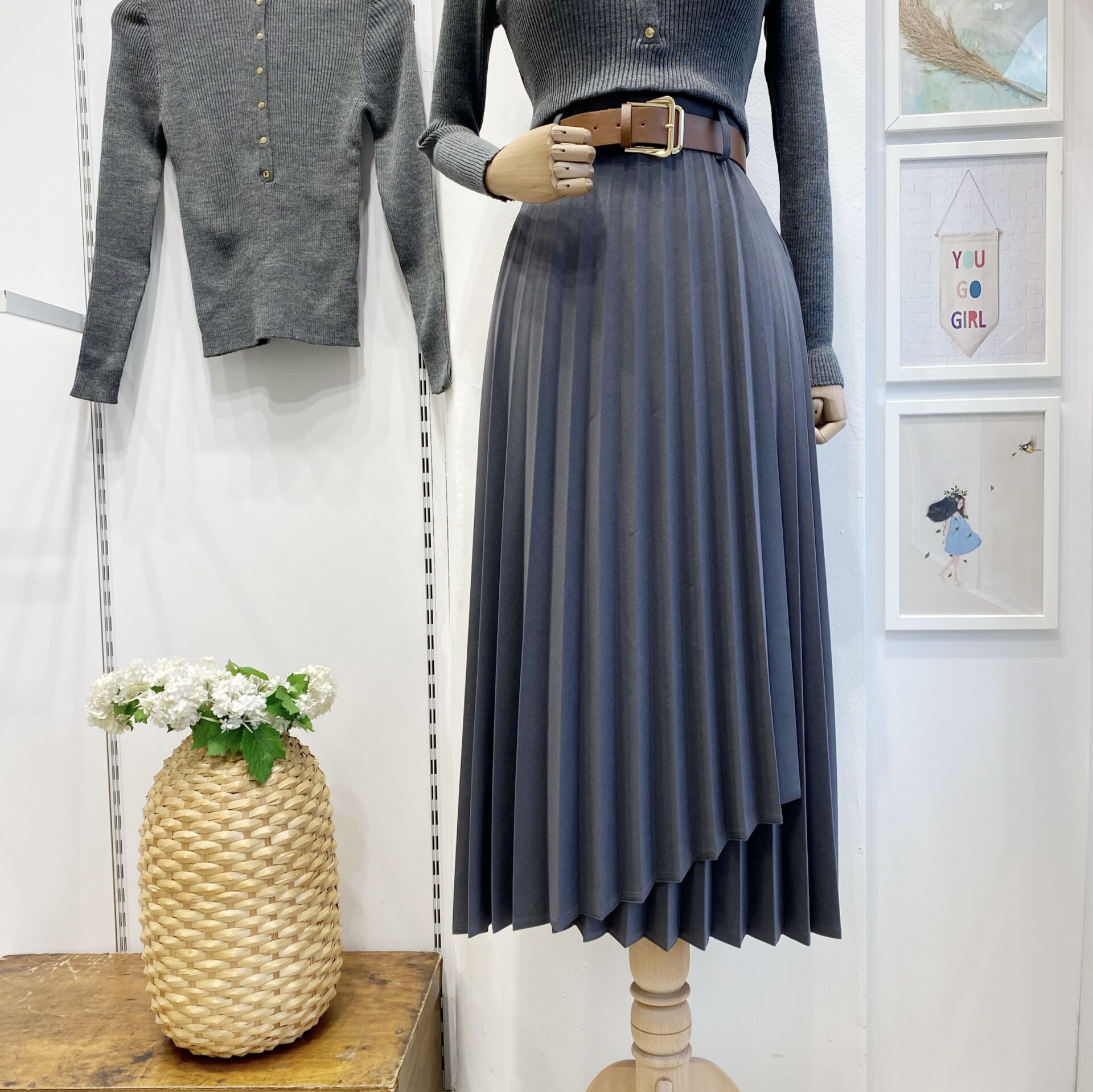 Piliseli Gri Odette Crep Etek