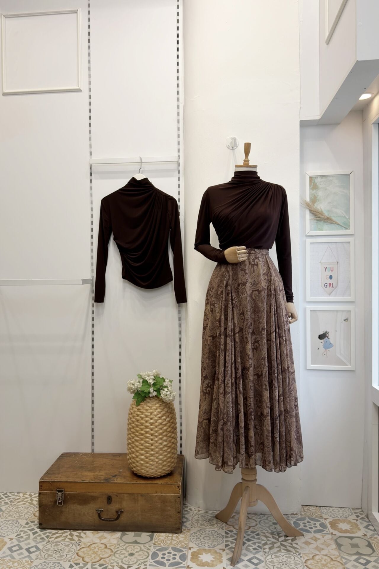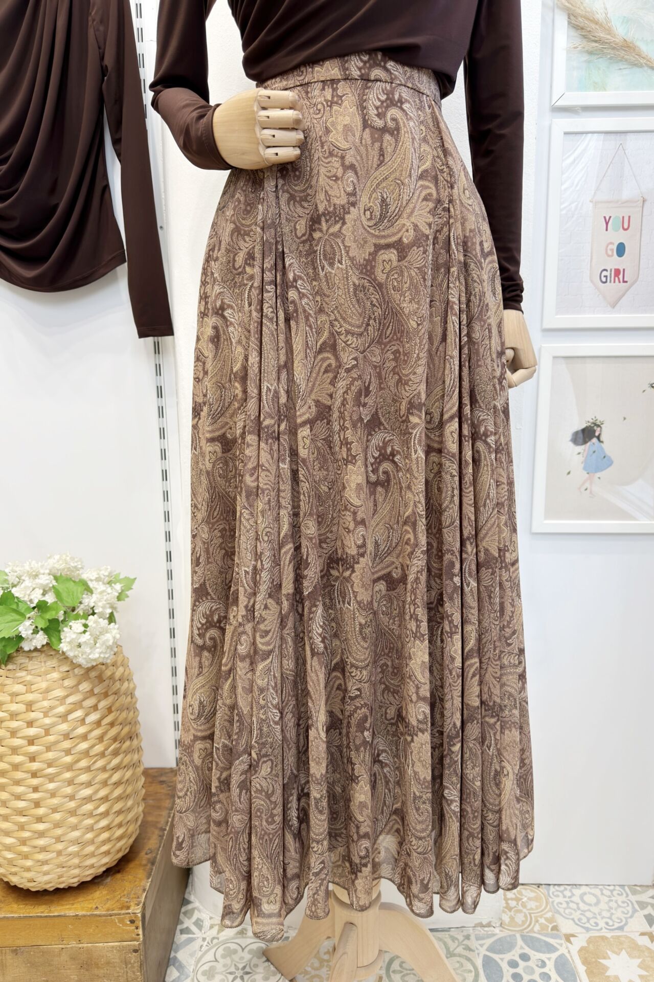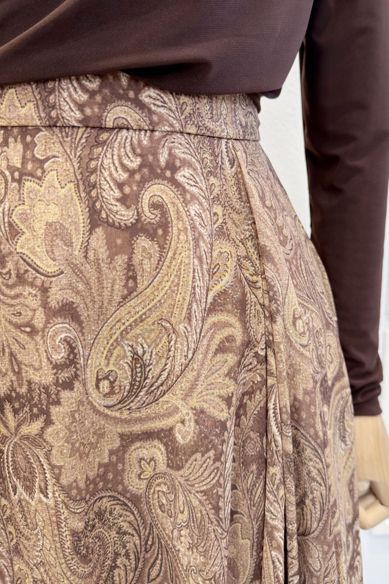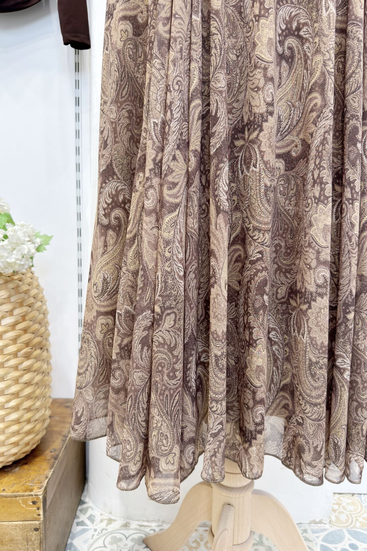 Şal Desenli Acı Kahve Şifon Etek