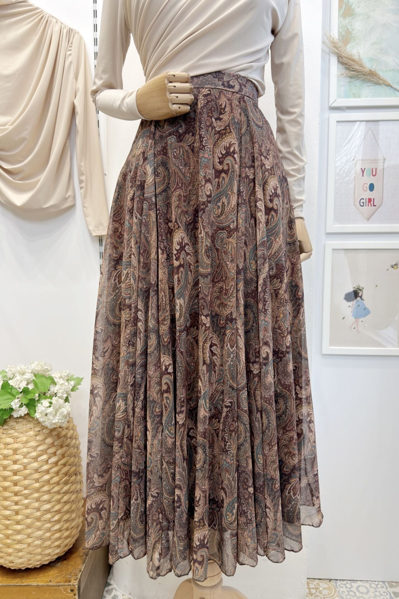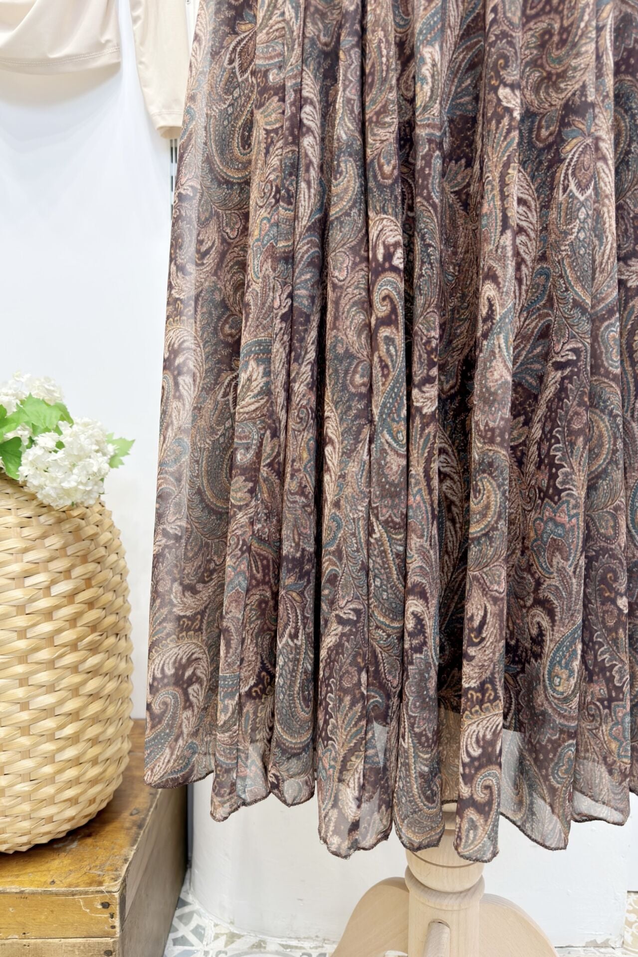 Şal Desenli Kahverengi Şifon Etek