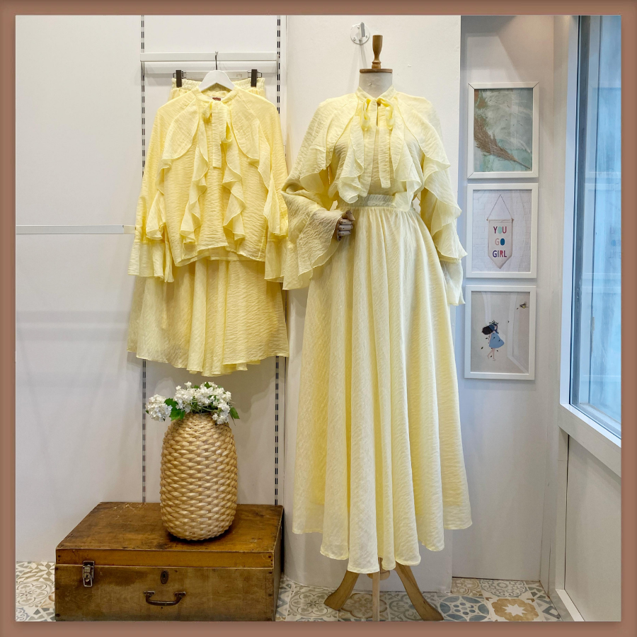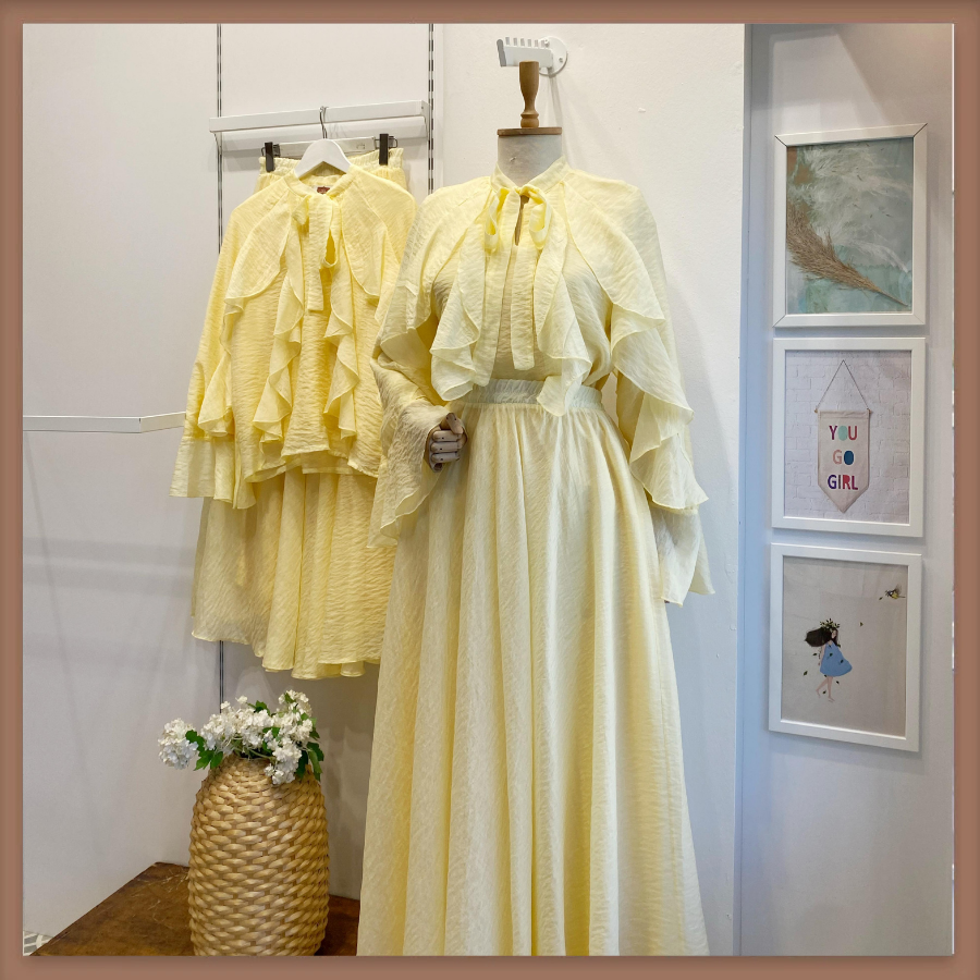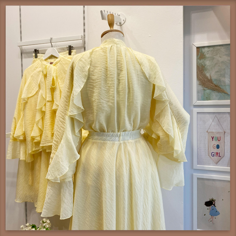 Sarı İspanyol Kol Mimosa Şifon Takım