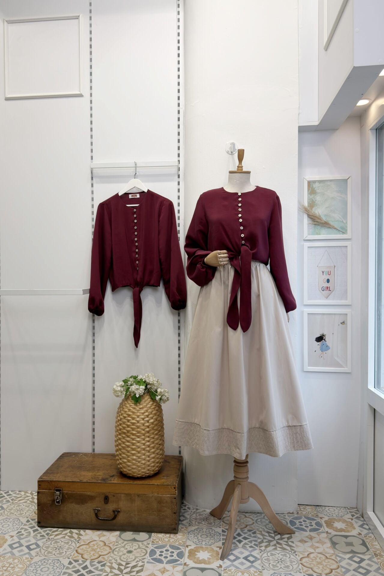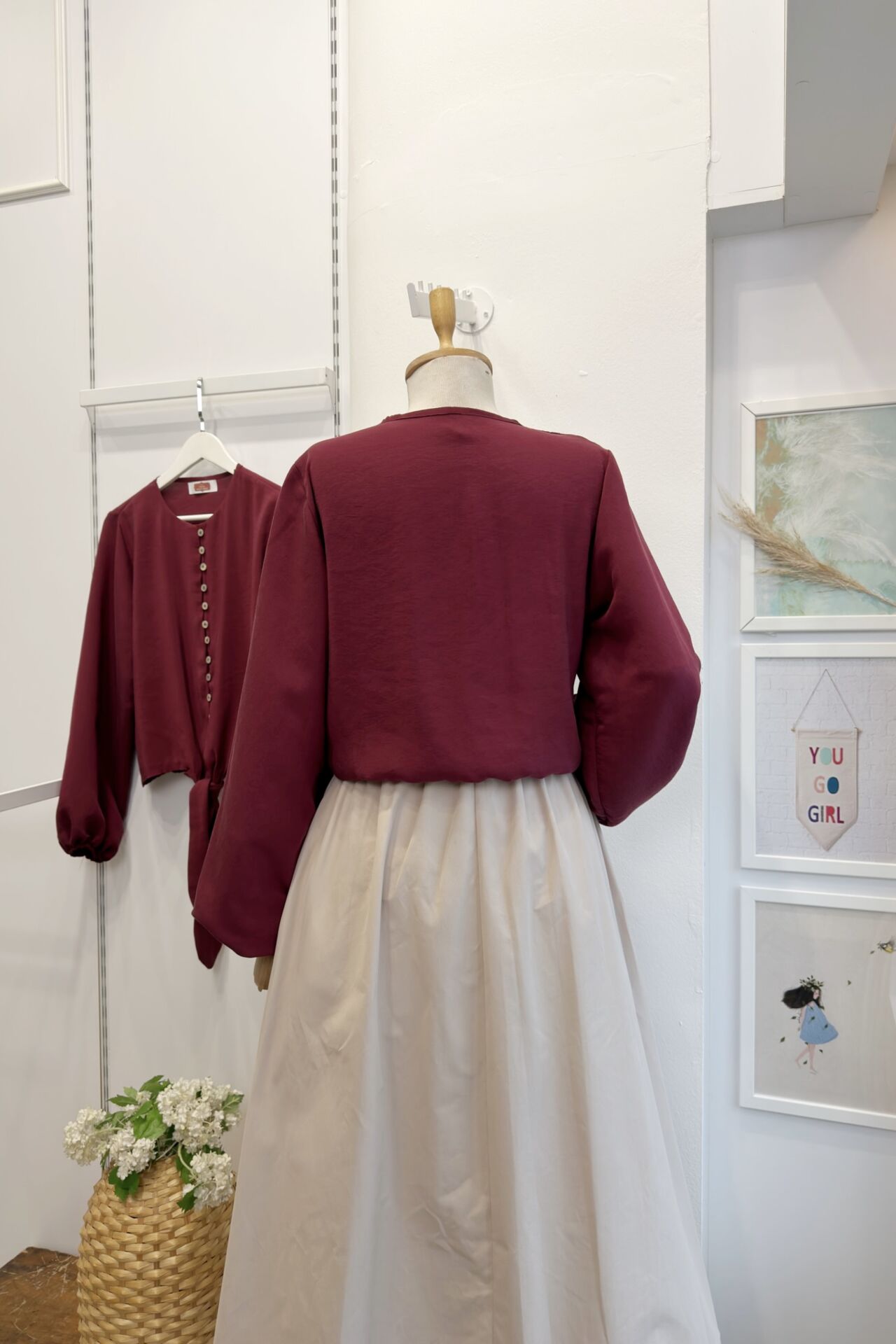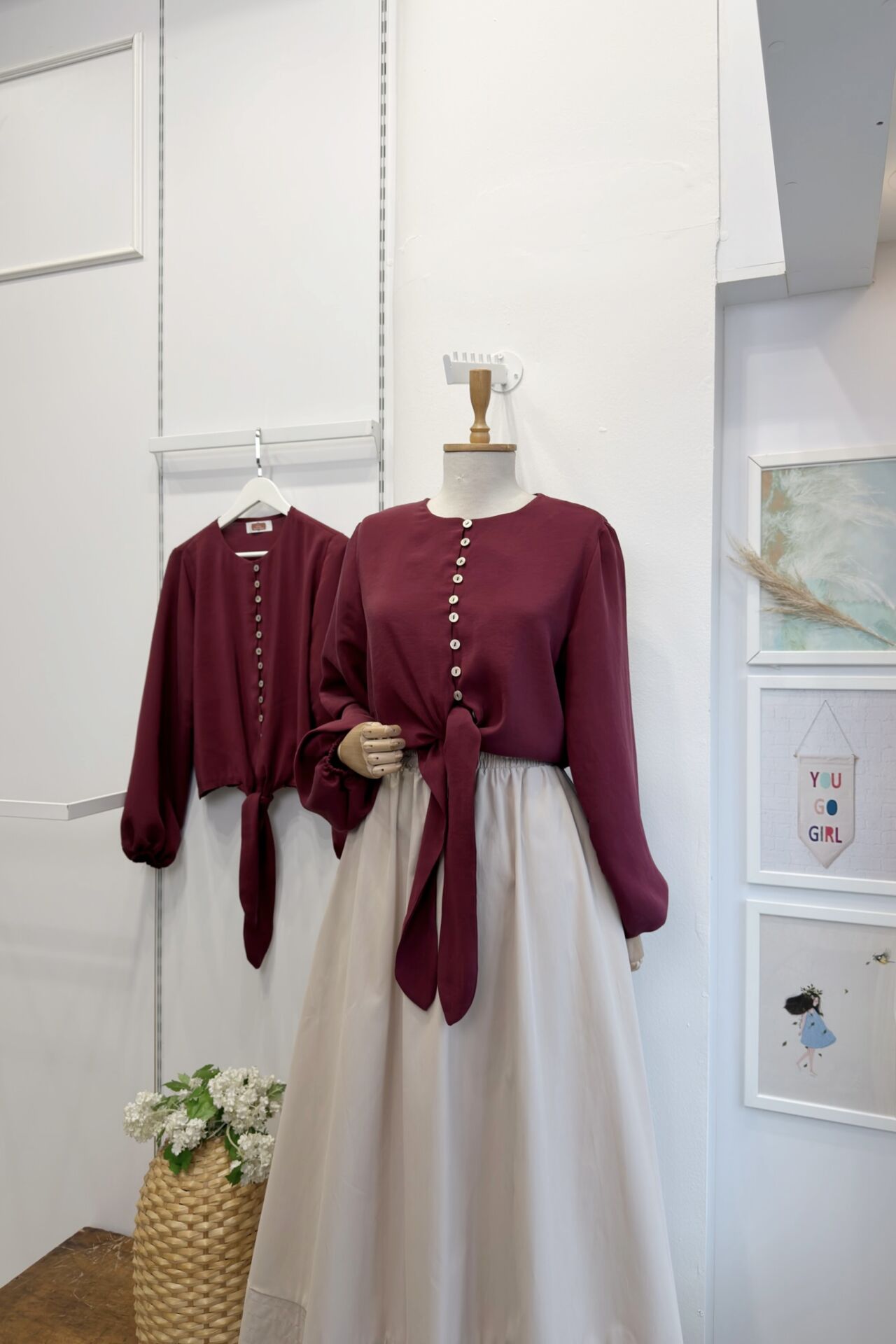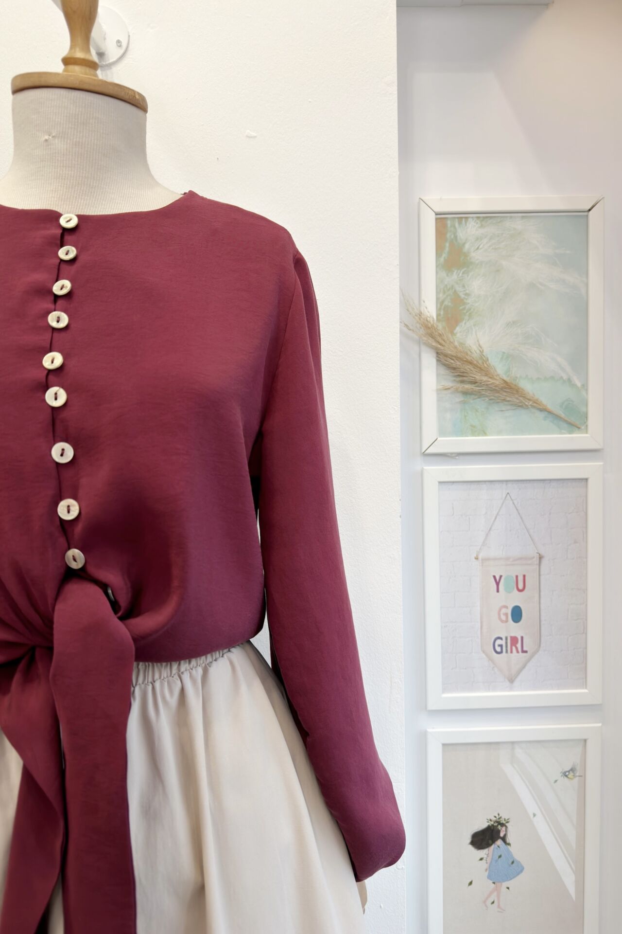 Sedef Düğme Detaylı Bağlamalı Bordo Gömlek