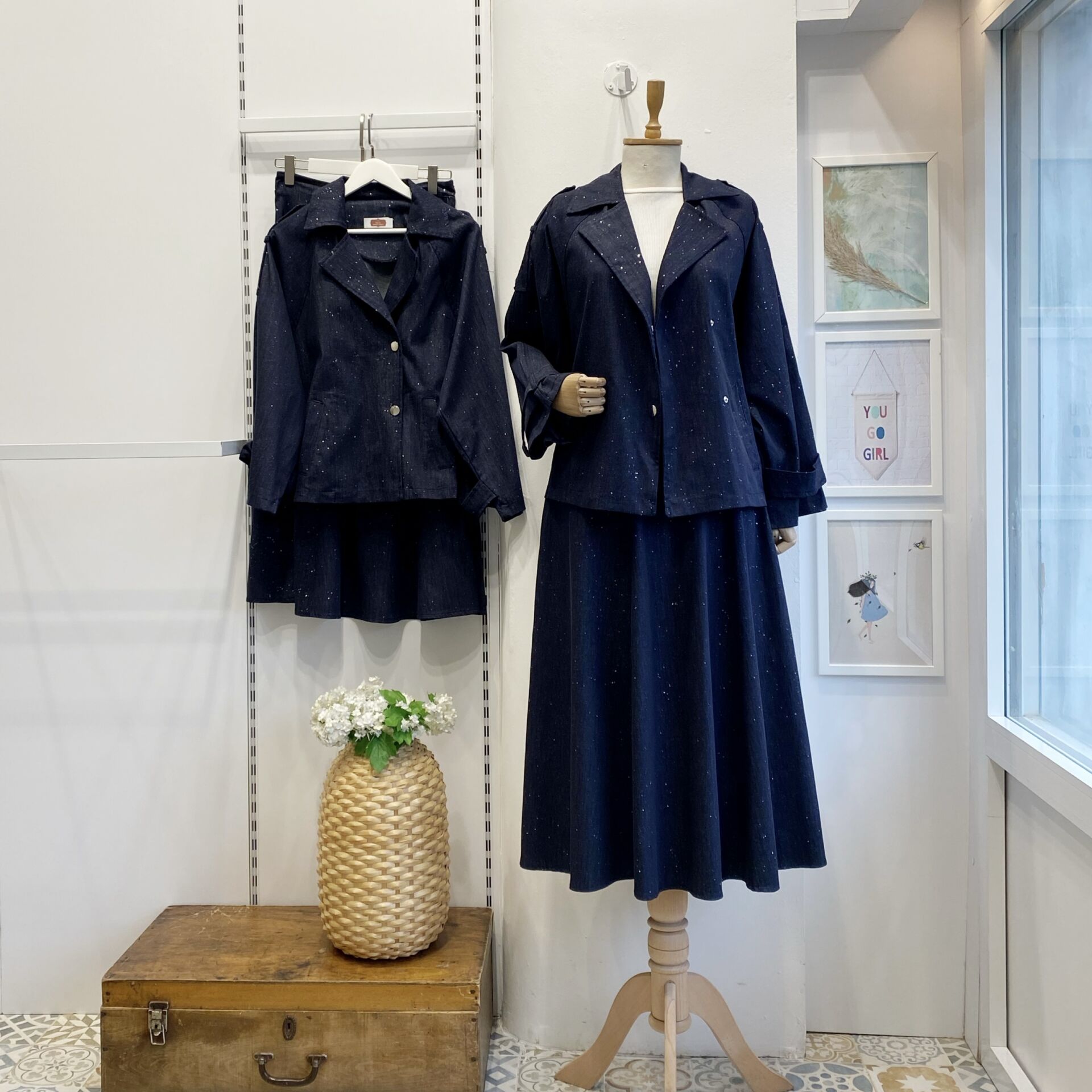 Sim Detaylı Ceketli Kot Takım