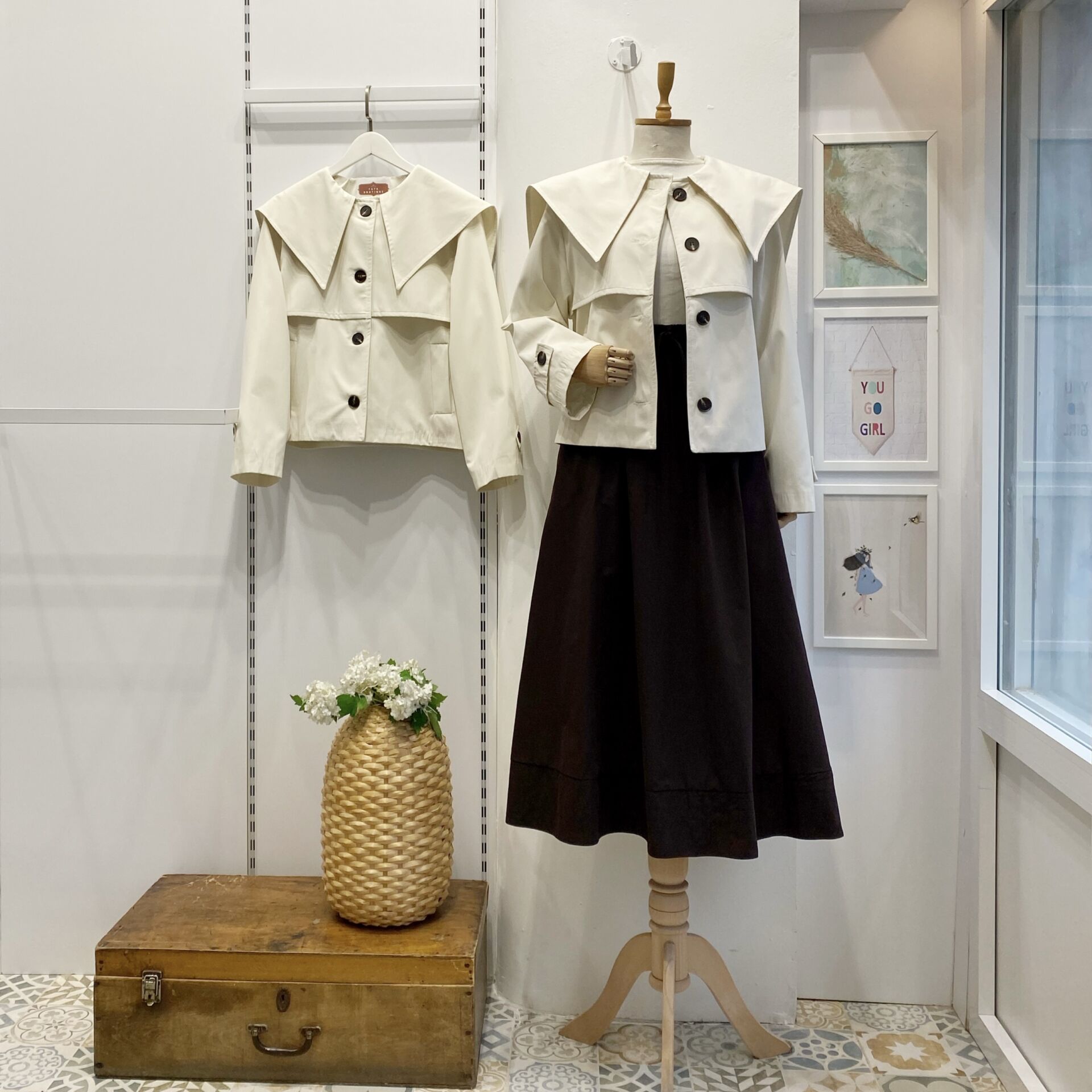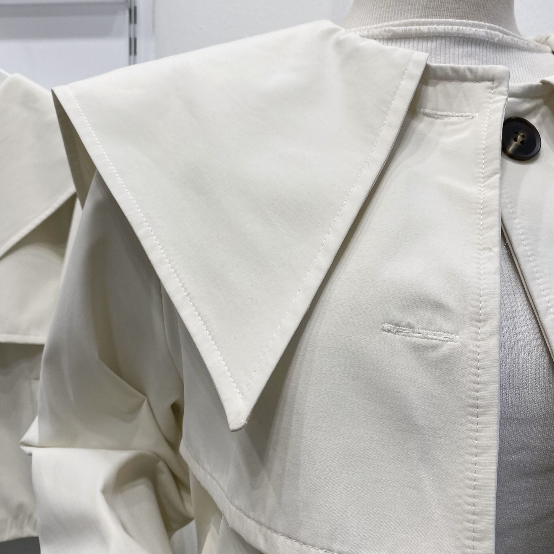 Sivri Yakalı Ekru Kısa Trençkot