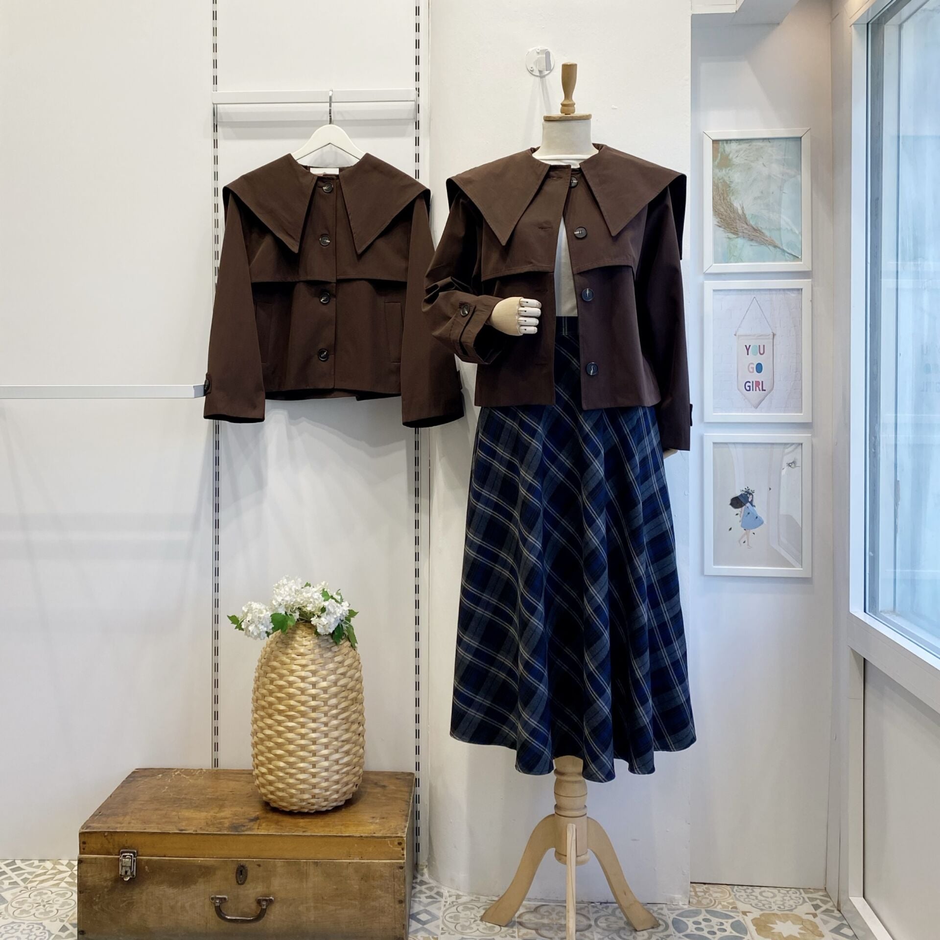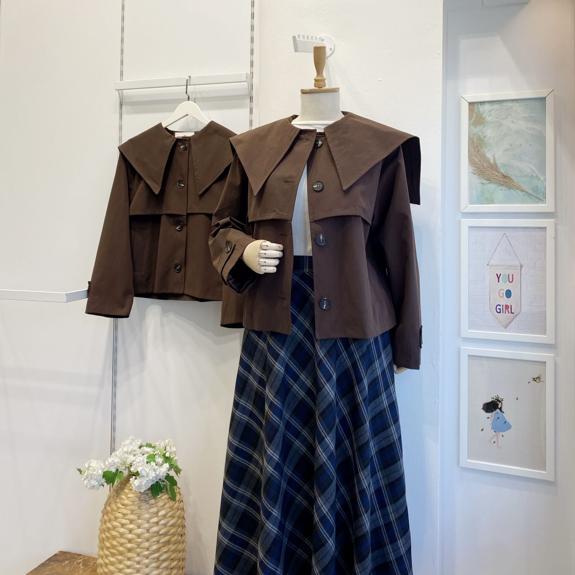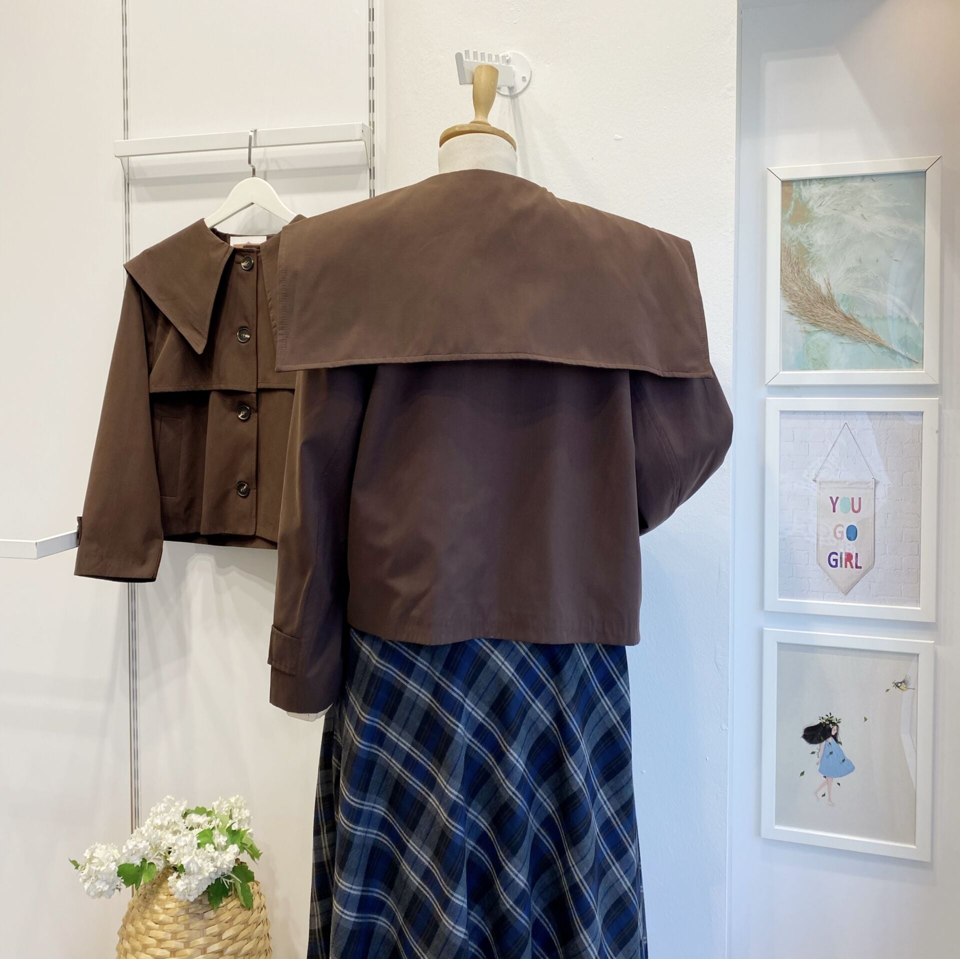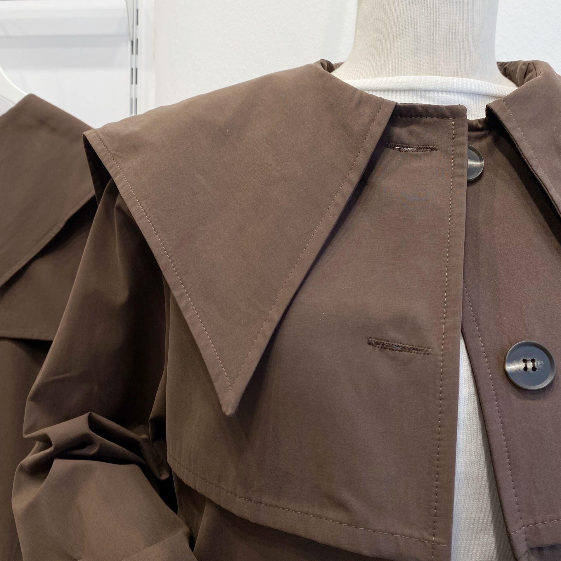 Sivri Yakalı Kahverengi Kısa Trençkot
