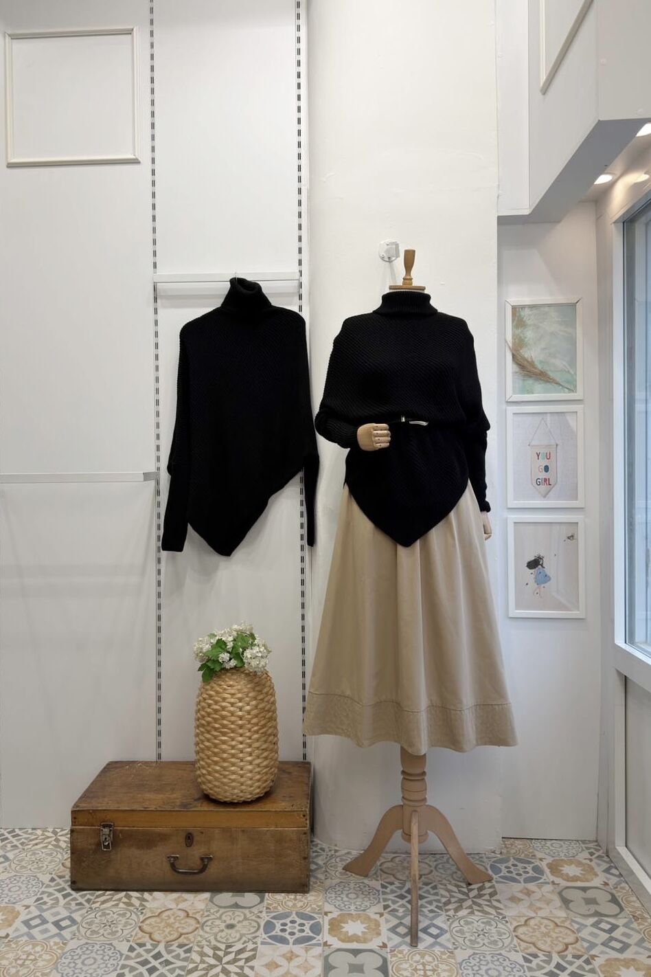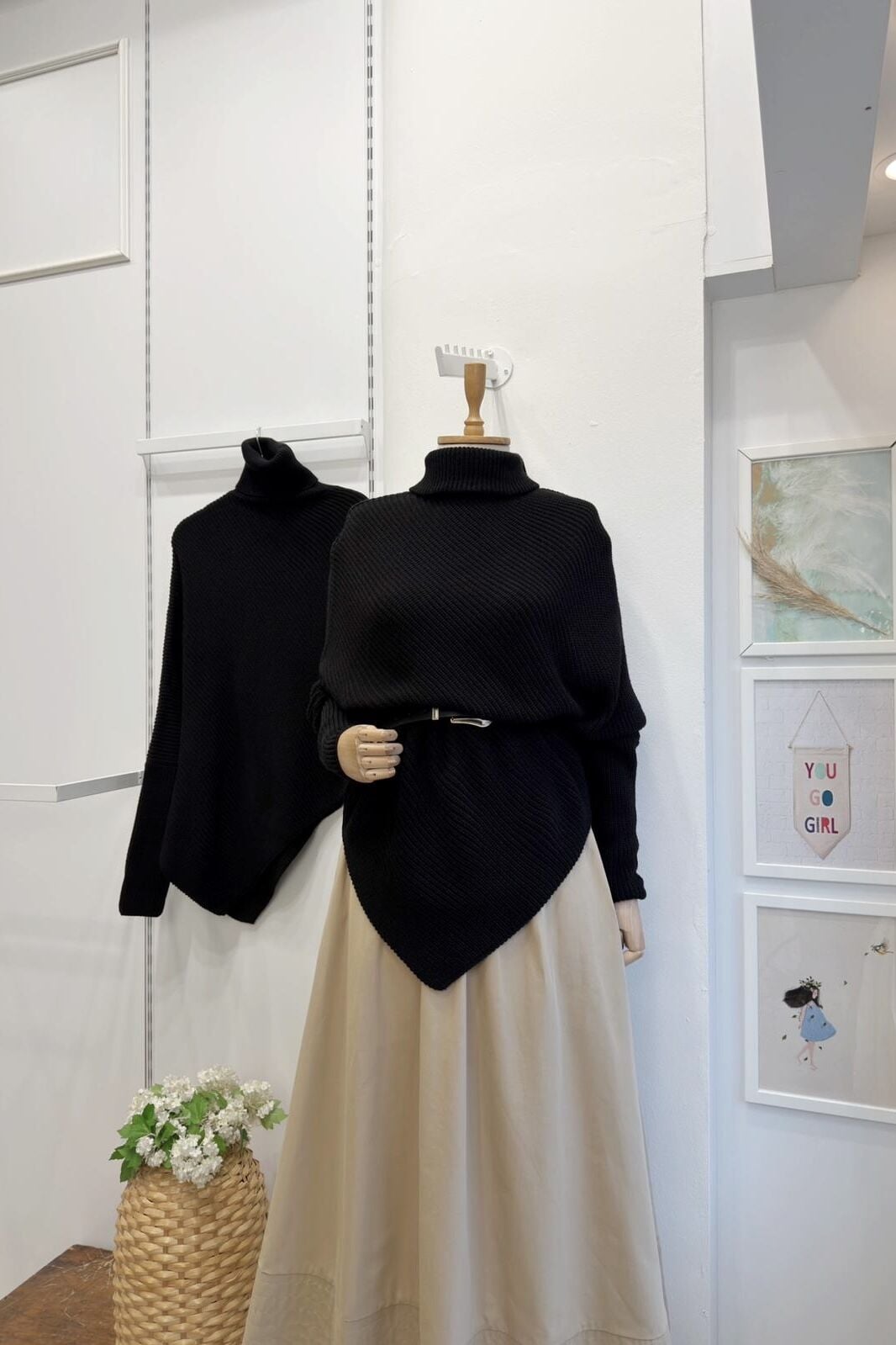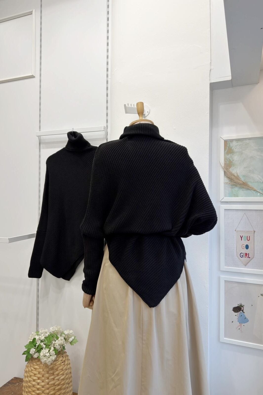 Siyah Asimetrik Kesim Triko Kazak