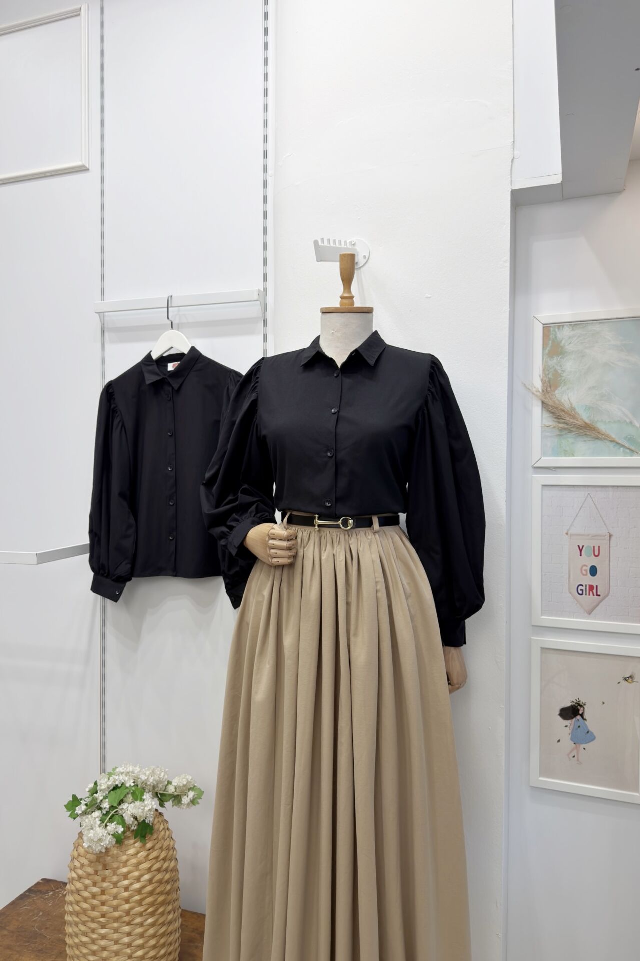 Siyah Balon Kol Basic Poplin Gömlek