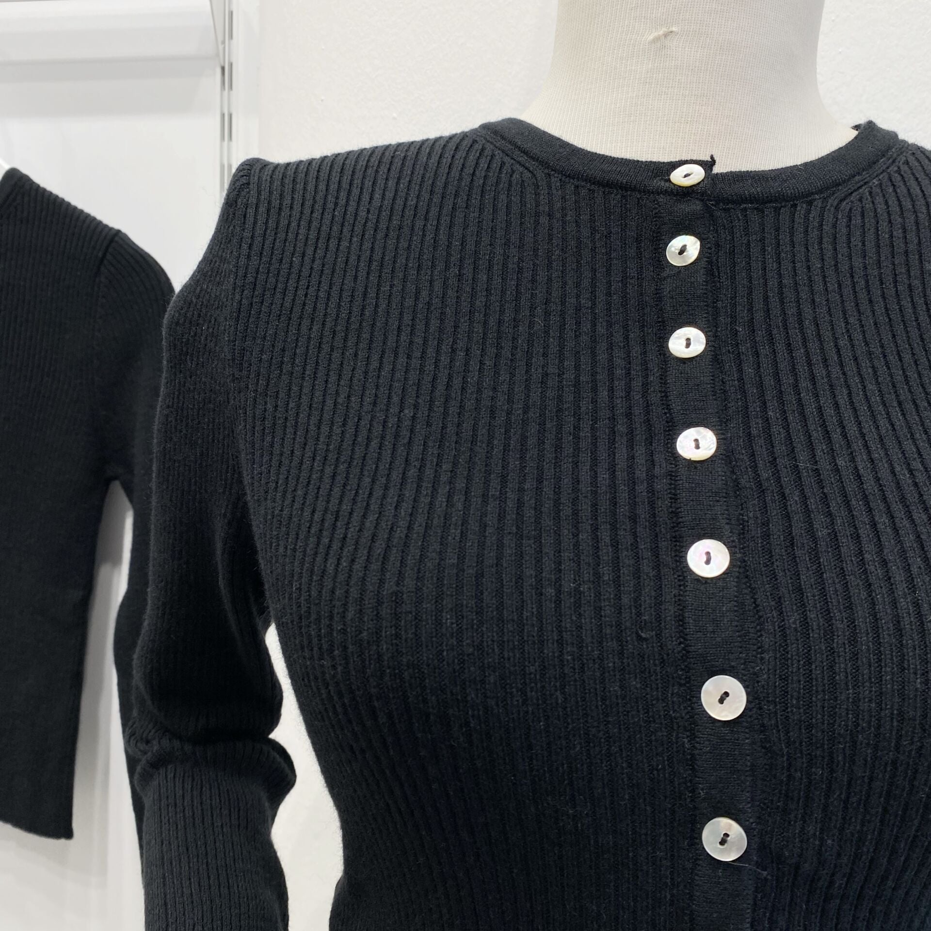 Siyah Bisiklet Yaka Yünlü Düğmeli Triko Bluz