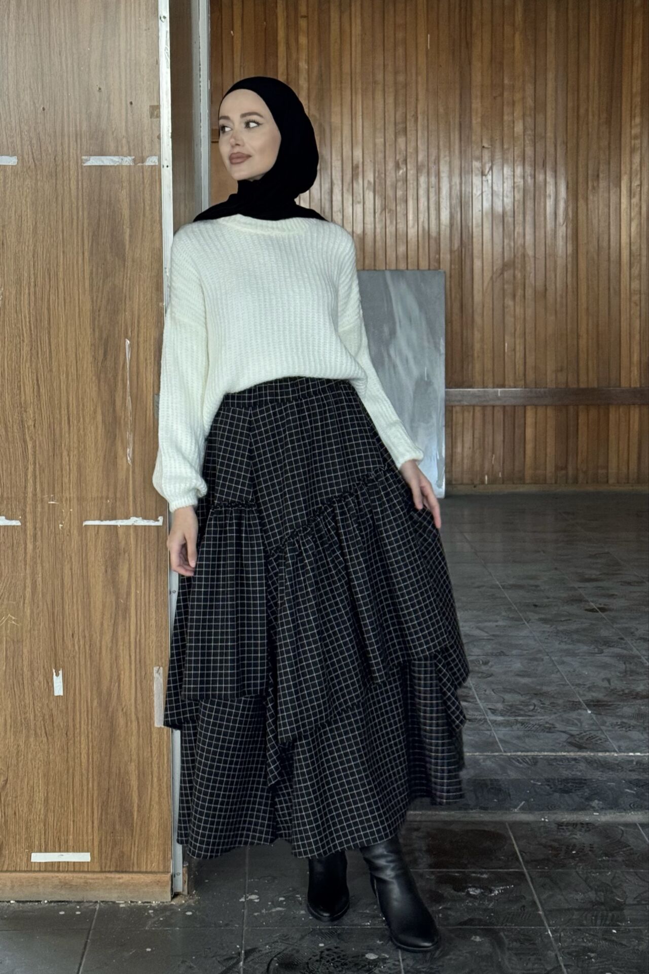 Siyah Kare Çizgili Ajouter Etek