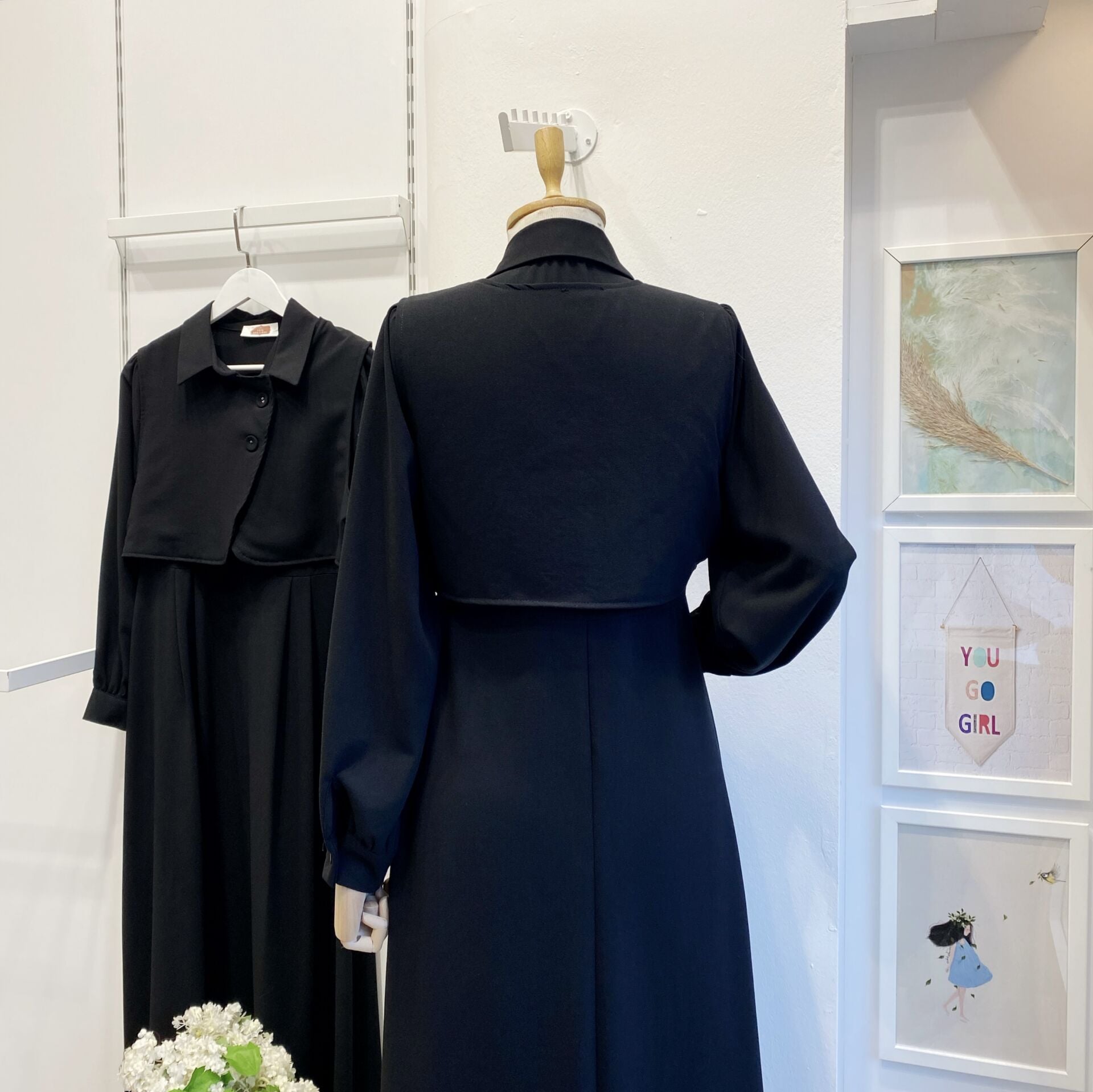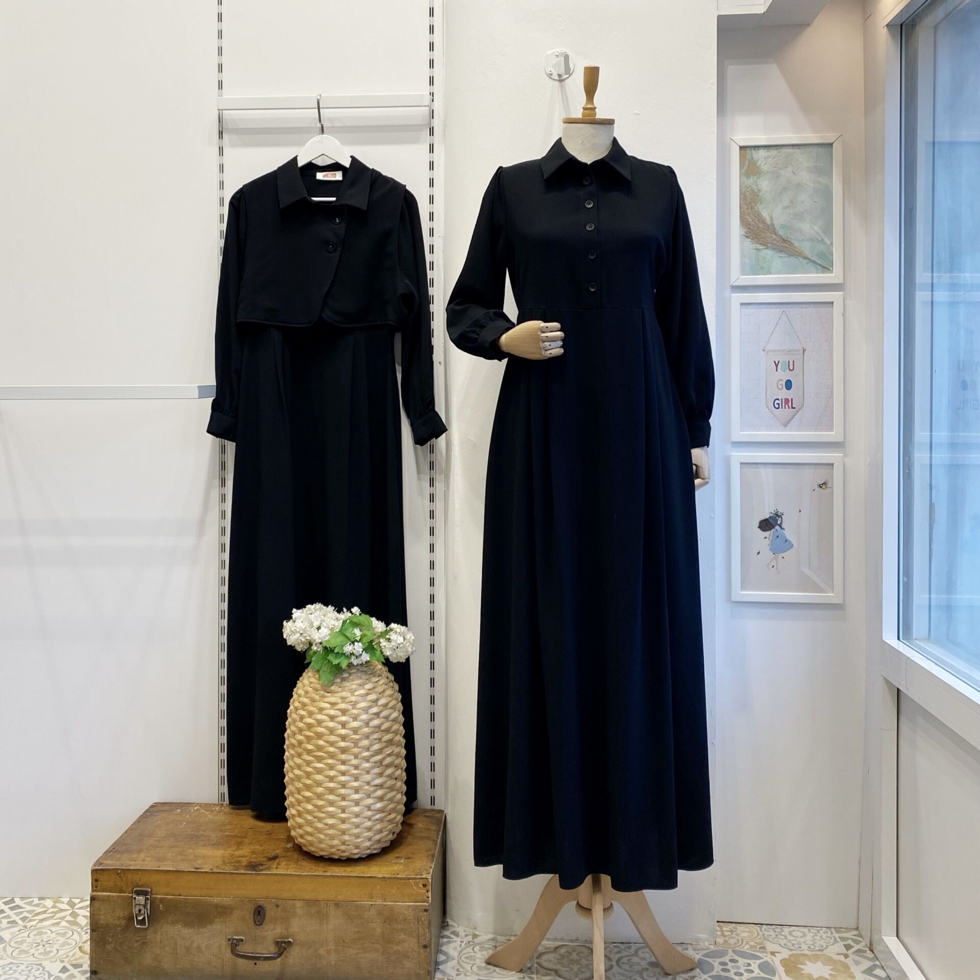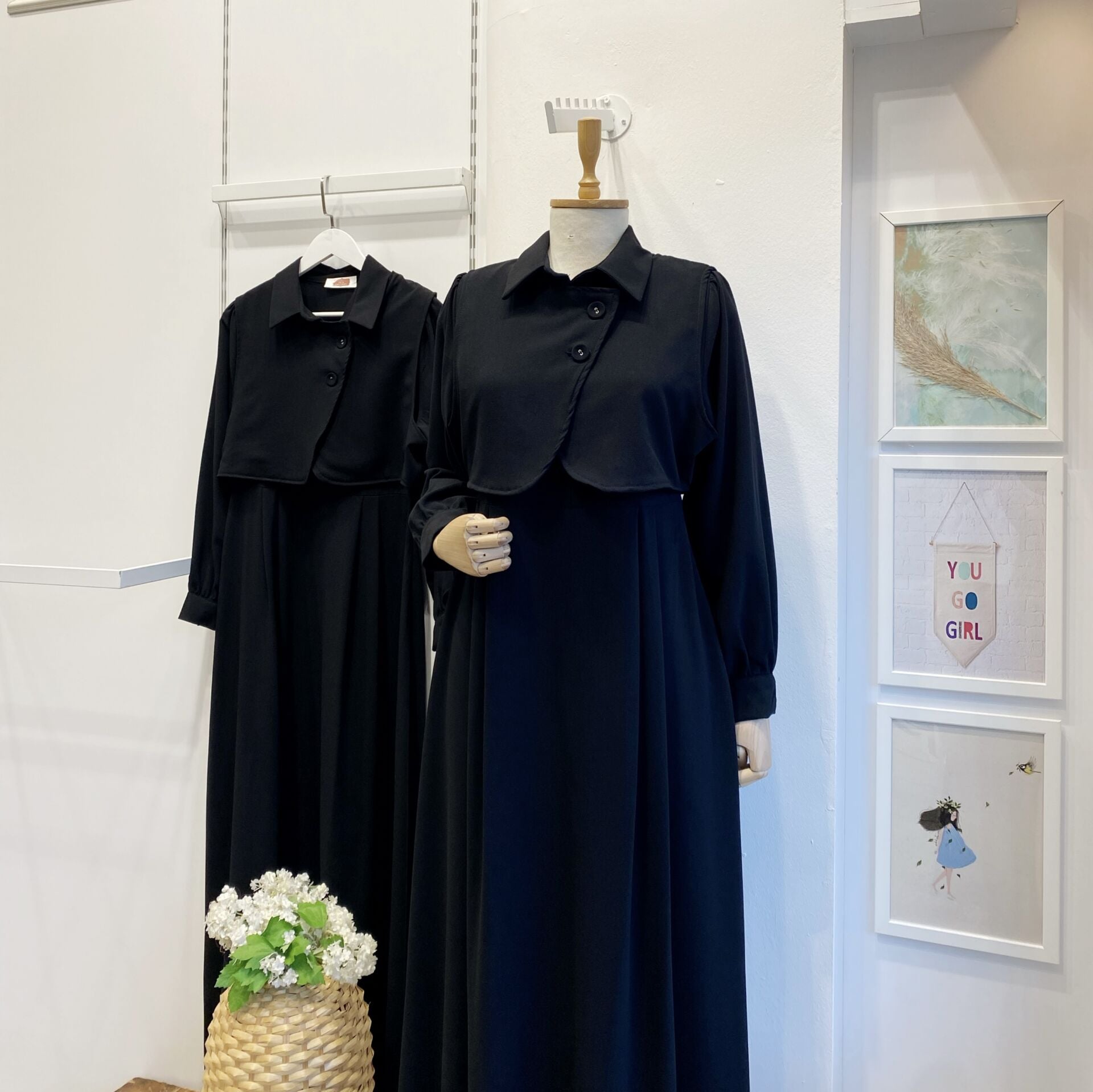 Siyah Crep Kumaş Yelekli Elbise