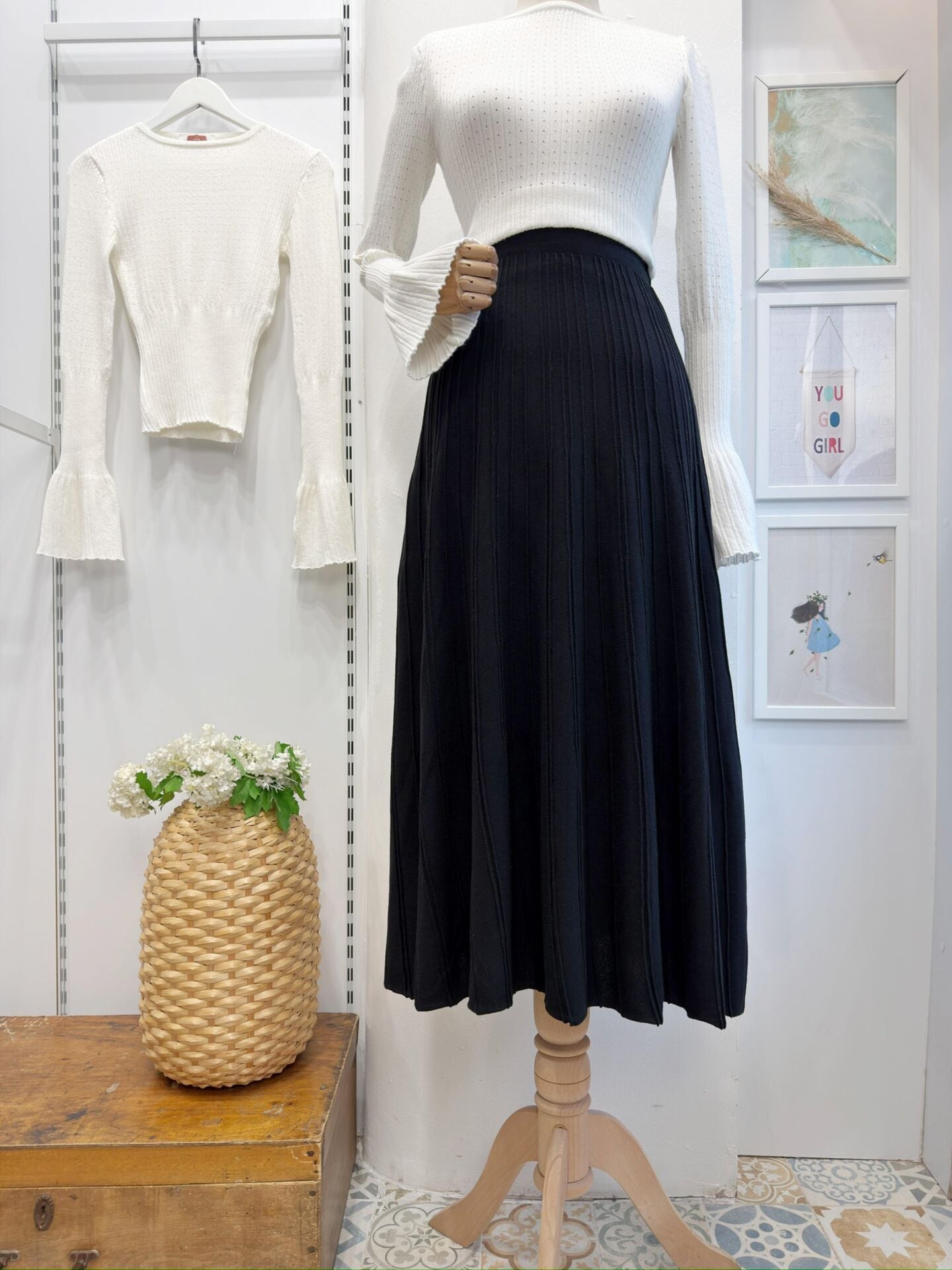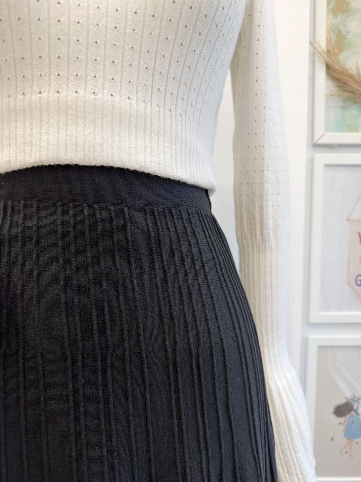 Siyah Dikiş Detaylı Triko Etek